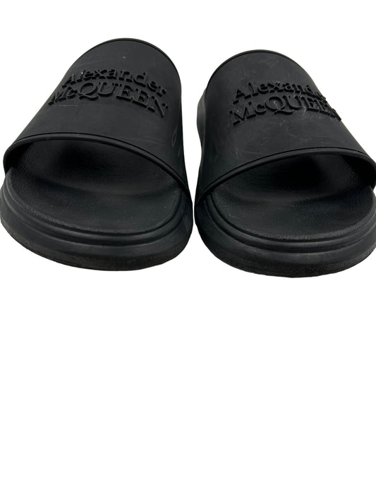 Alexander McQueen Size 40 Black Logo Pool Slides