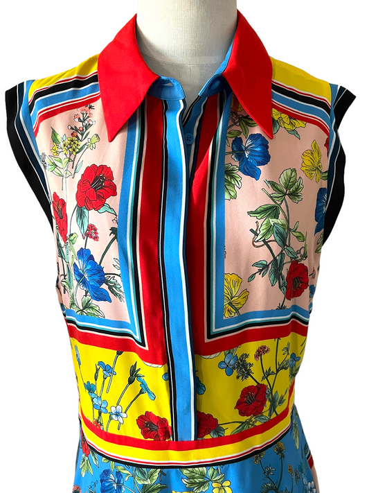 Alice + Olivia Blue Farrah Floral Scarf Dress Size 10