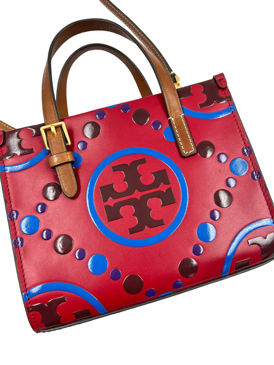 Tory Burch Mini T Leather Monogram Contrast Embossed Square Tote