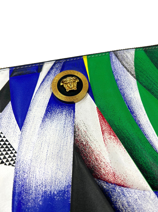 Versace Multicolor Leather Vitello Logo Print Pochette