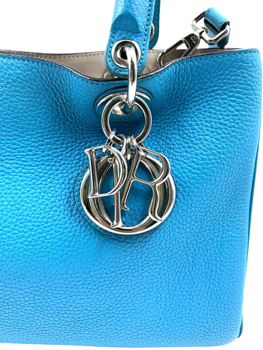 Christian Dior Aqua Blue Leather Medium Diorissimo Tote