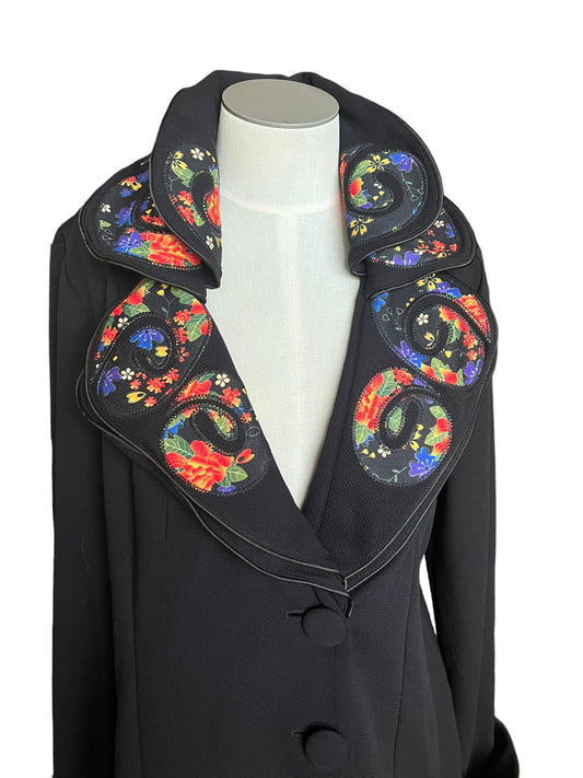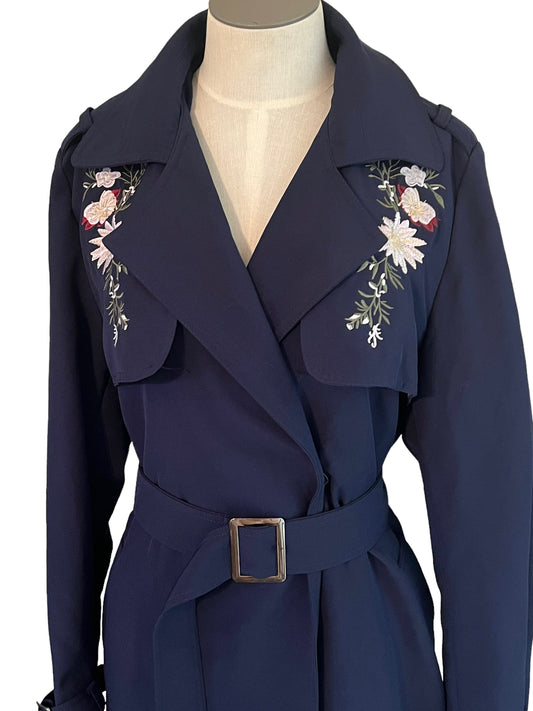 Vero Moda Classic Size M/L Navy Candy Embroidered Floral Trench Coat