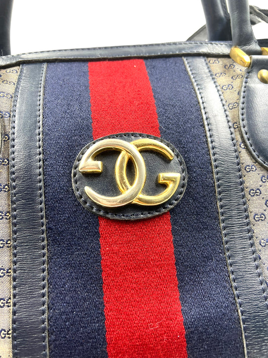 Gucci Vintage 1966 Navy Micro GG 2-Way Large Boston Carryall Duffle