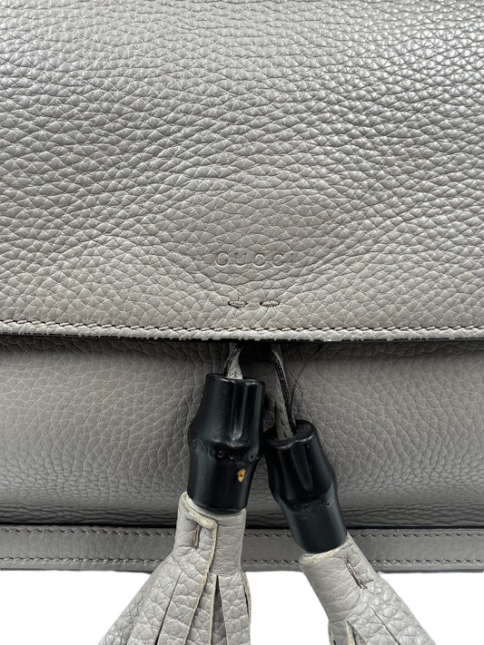 Gucci Gray Leather Daily Medium Bamboo Daily Flap Bag