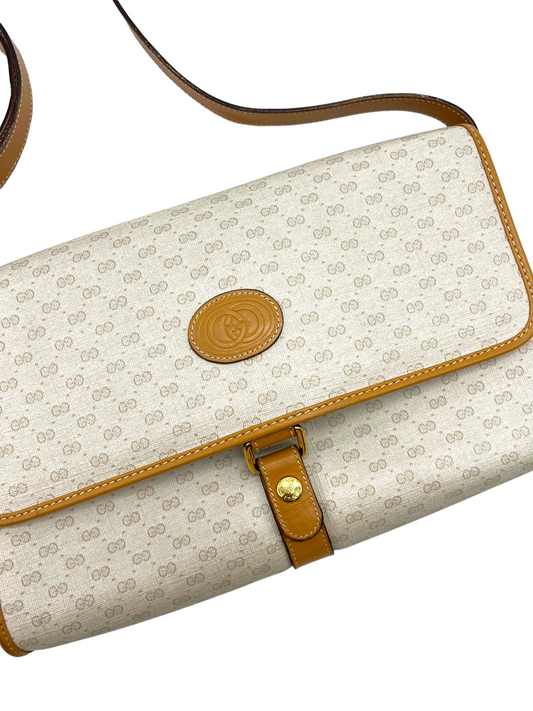 Gucci Cream Tan Vintage GG Crossbody Shoulder Bag