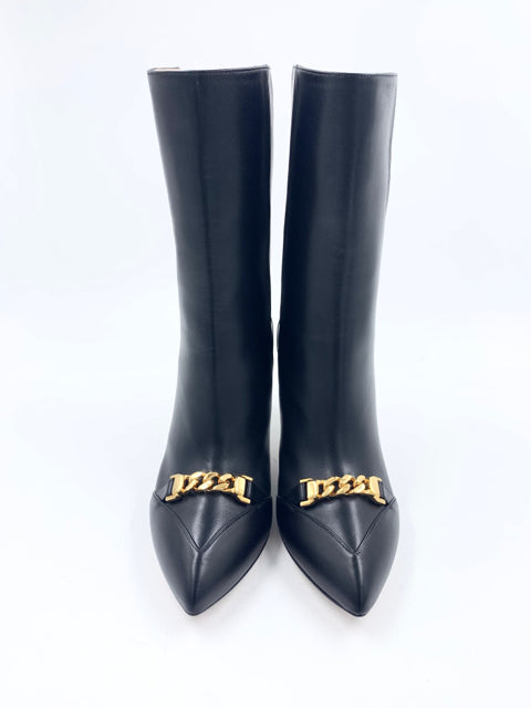 Gucci Black Calf Sylvie Chain Size 38 Boots