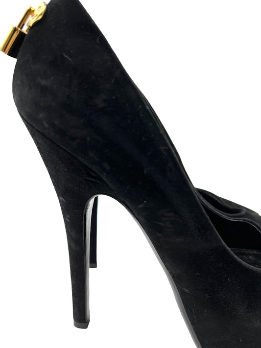 Louis Vuitton Black Suede 'Oh Really!' Size 39.5 Lock Heels