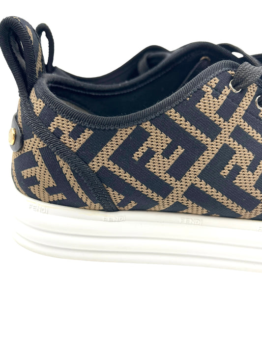 Fendi Size 41 Tobacco Black Perforated FF Logo Platform Sneakers