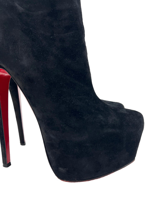 Christian Louboutin Size 40 Black Suede Daf Booty 160 Booties
