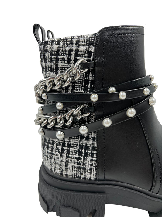 Nine West Size 8 Black Cearlz3 Embellished Tweed Ankle Boots