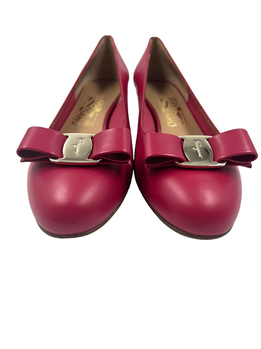 Ferragamo Size 7.5 Red Leather Vara Bow Flats