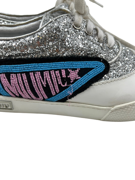 Miu Miu Silver Size 39 Low Top Glitter Sneakers