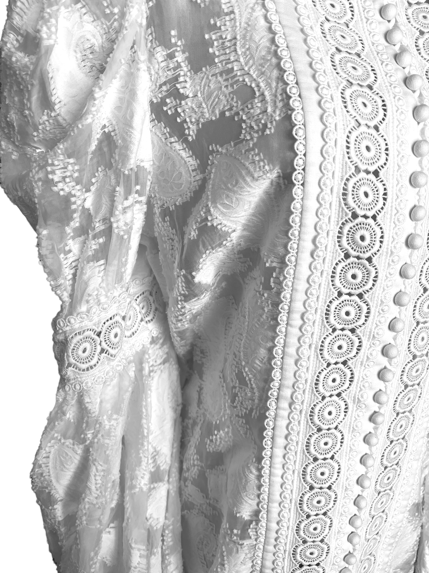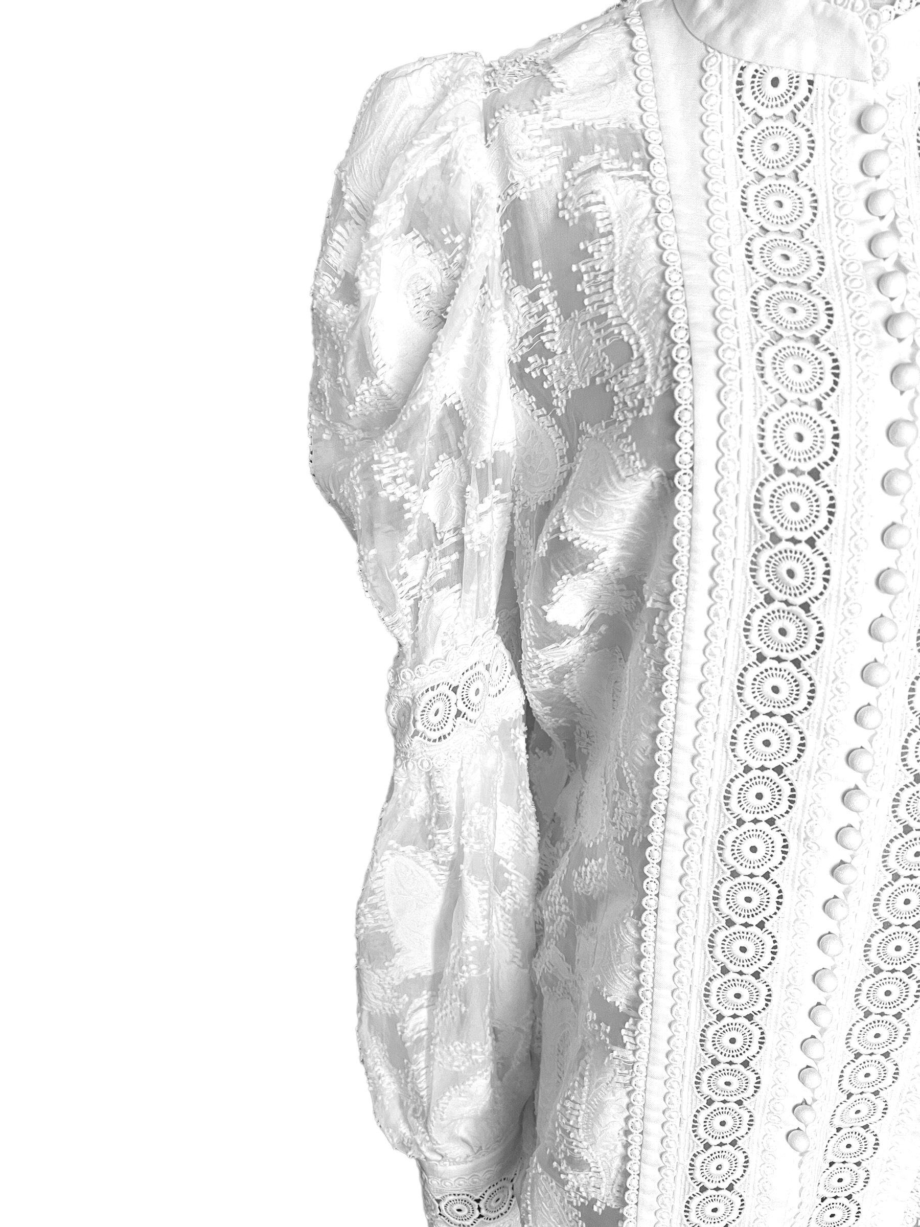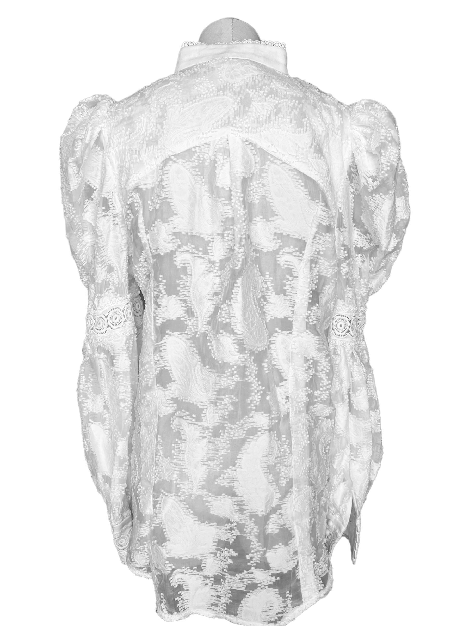 Cream embroidered sheer button down puff sleeve Suffield blouse. Comes with original tags
