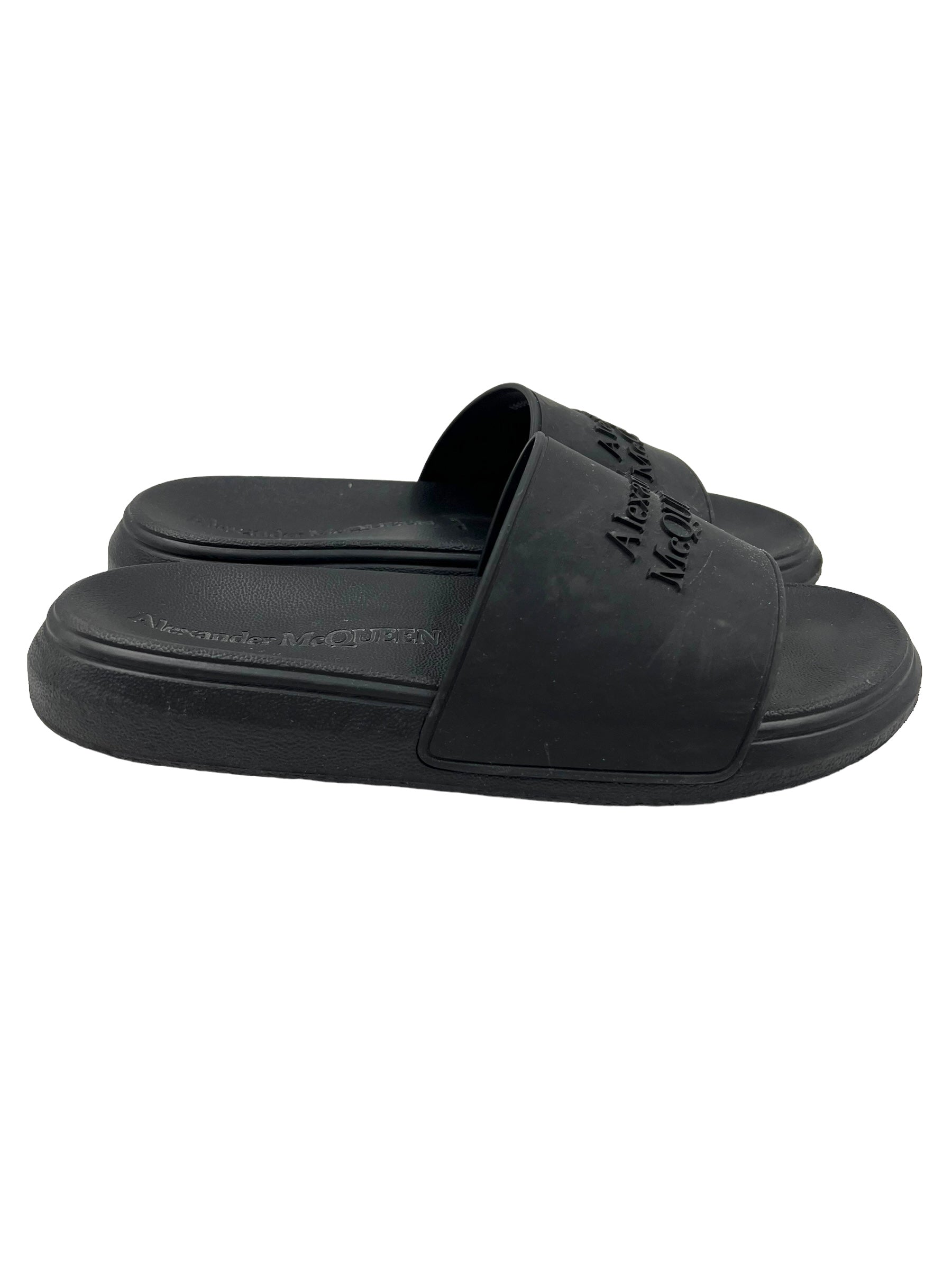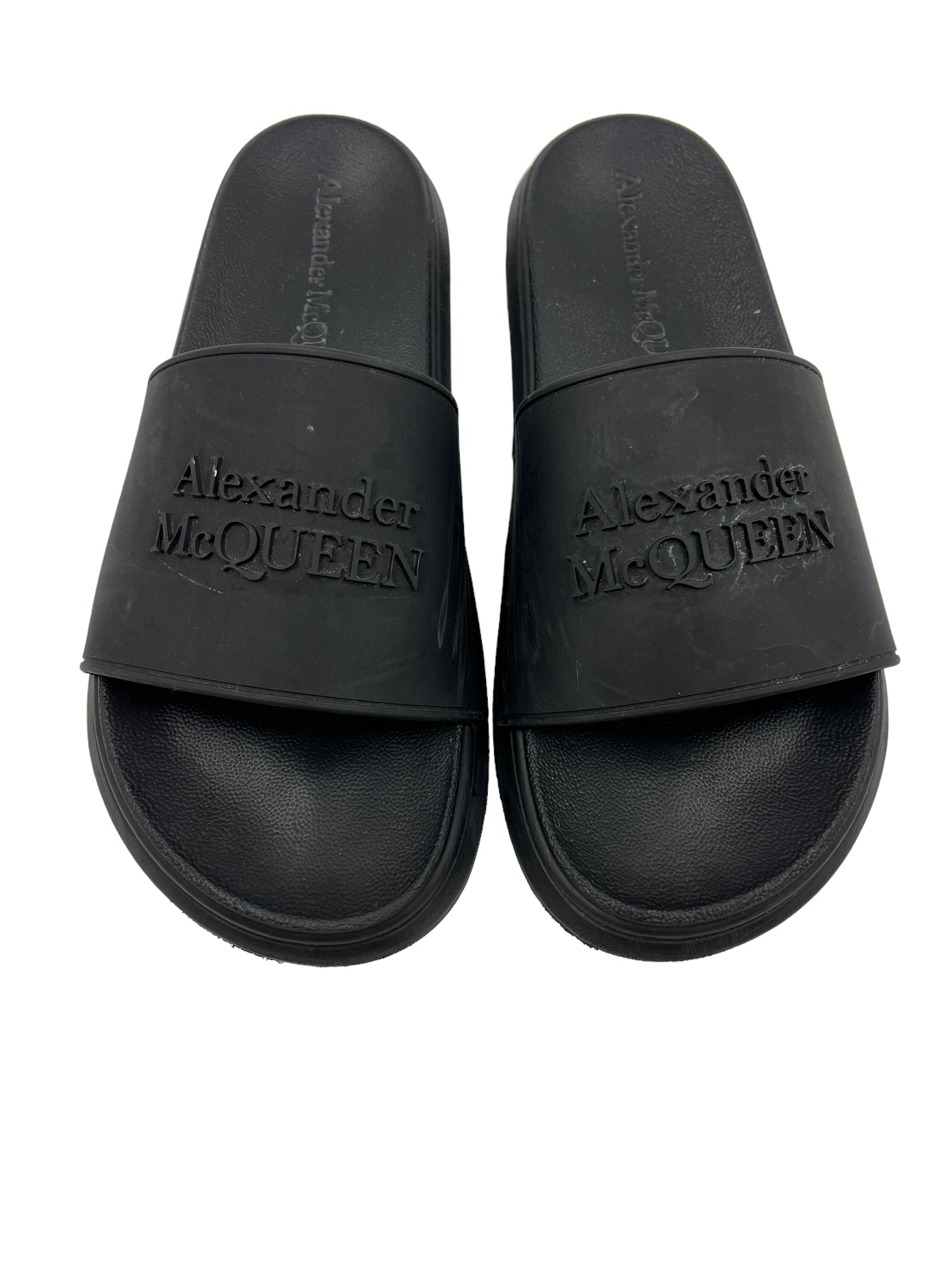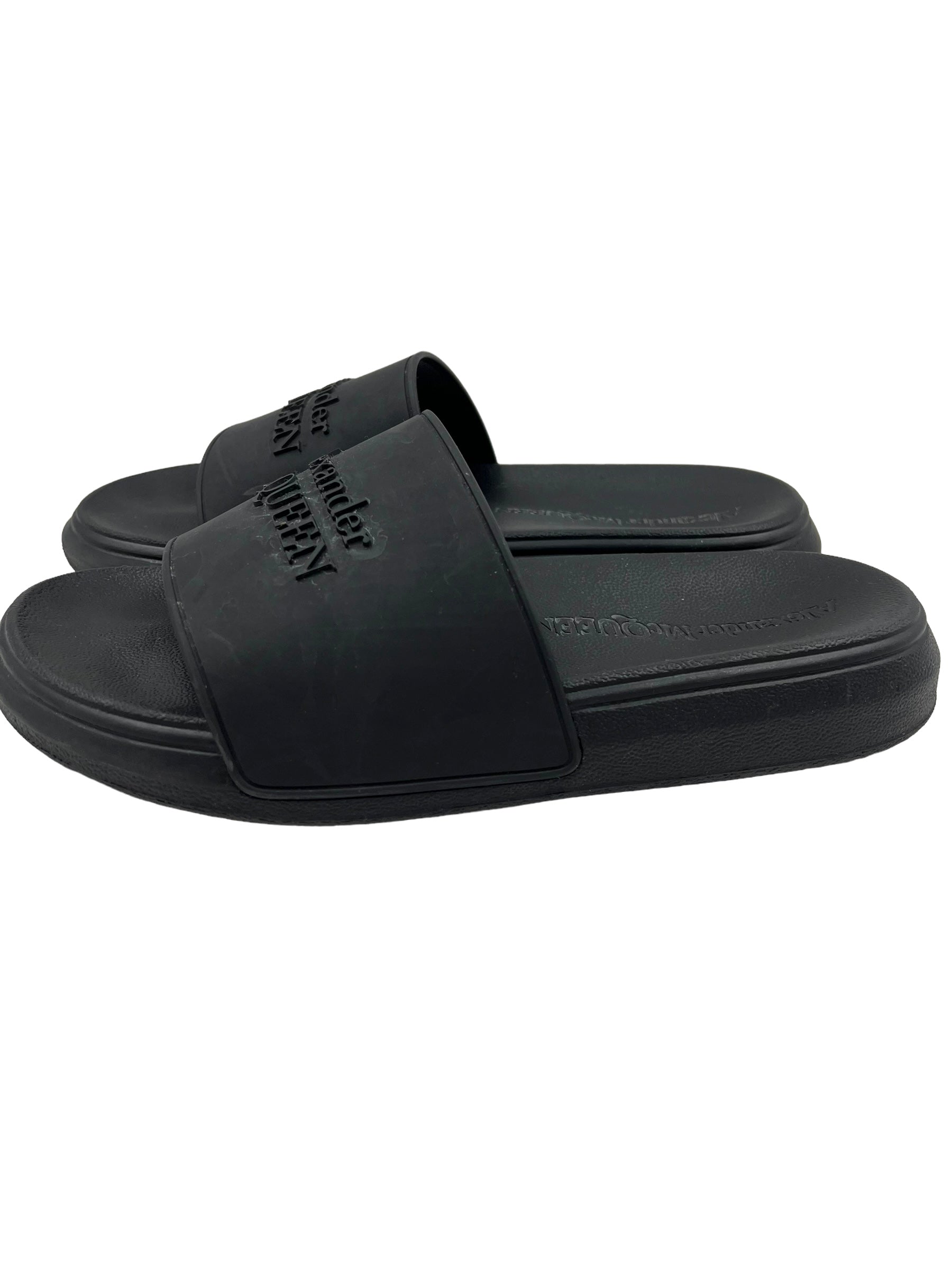 Alexander McQueen Size 40 Black Logo Pool Slides