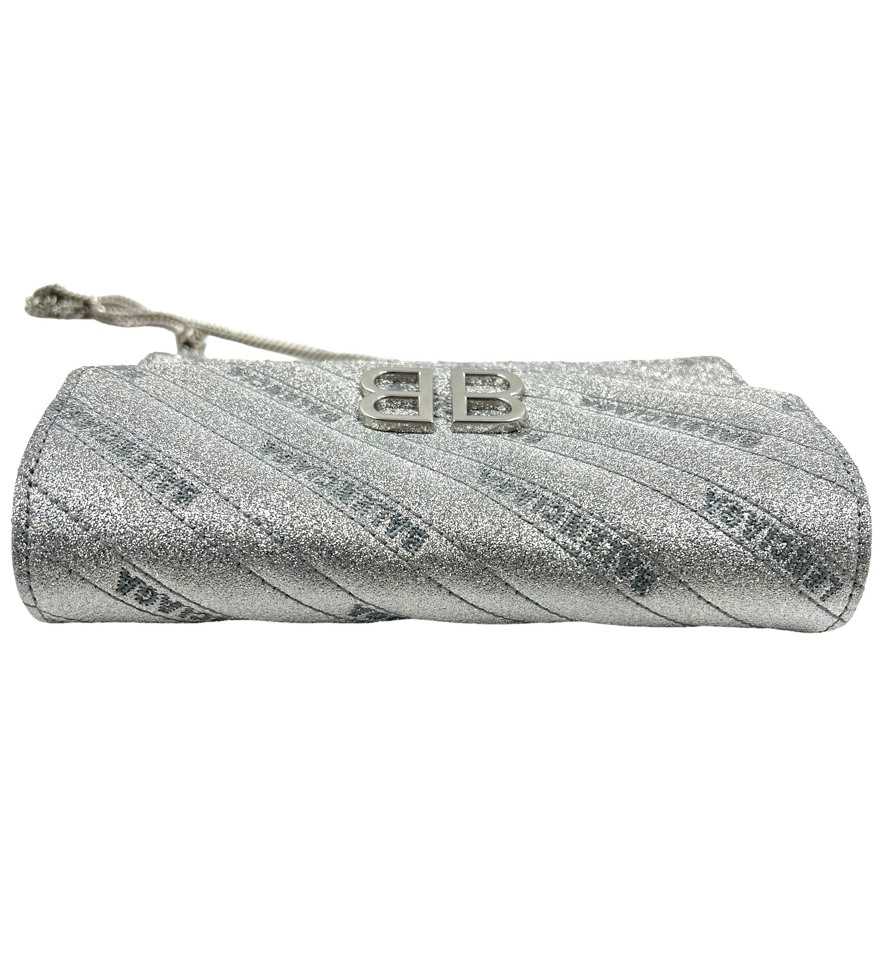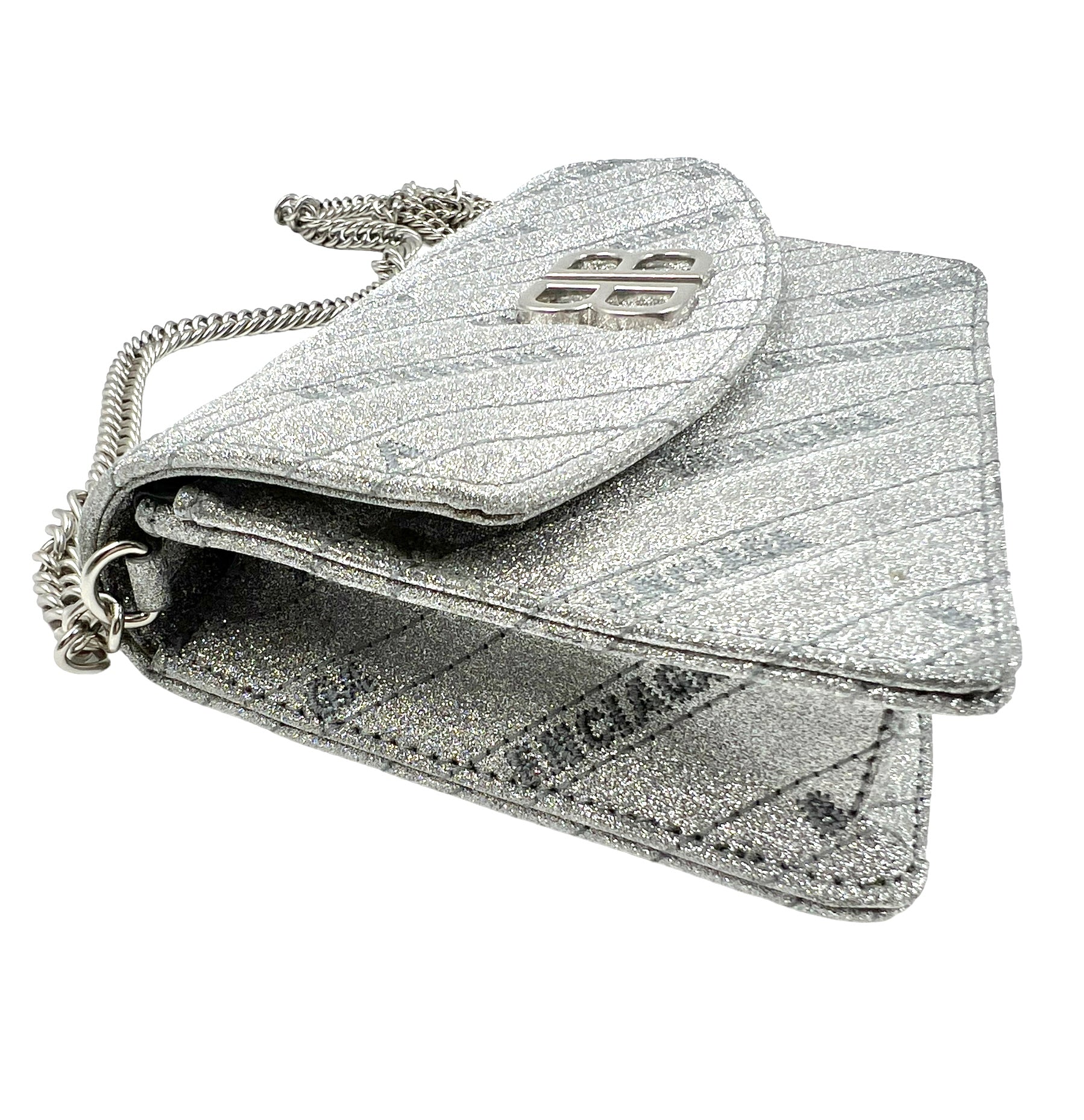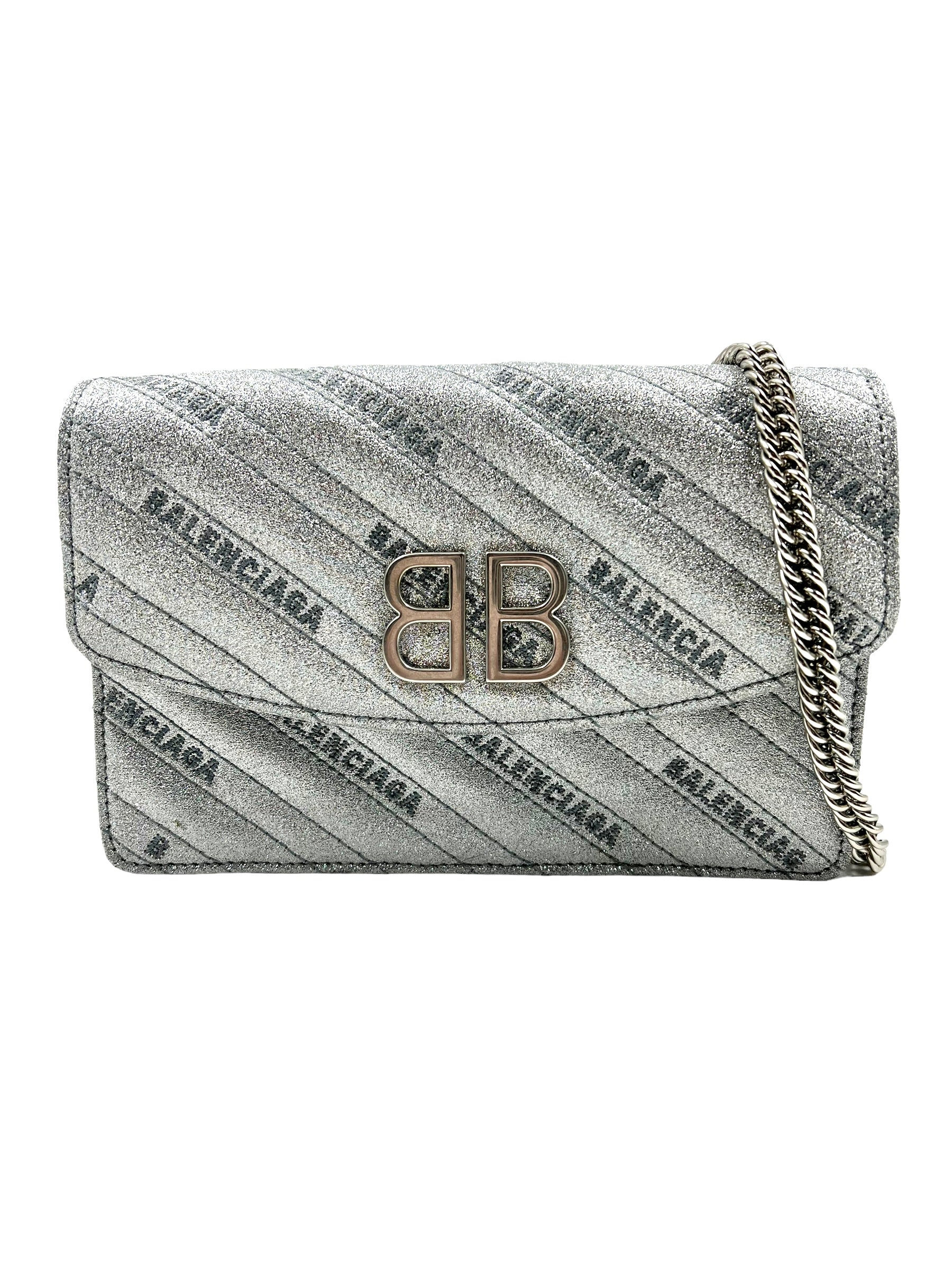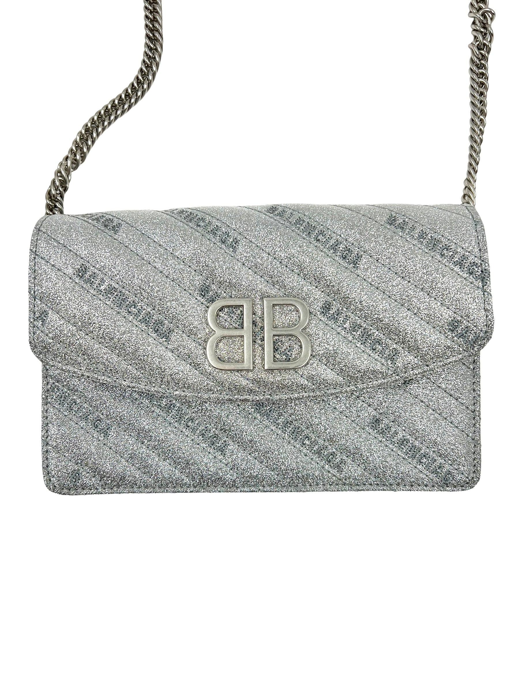 Balenciaga Silver Bb Chain Wallet Glitter Bag