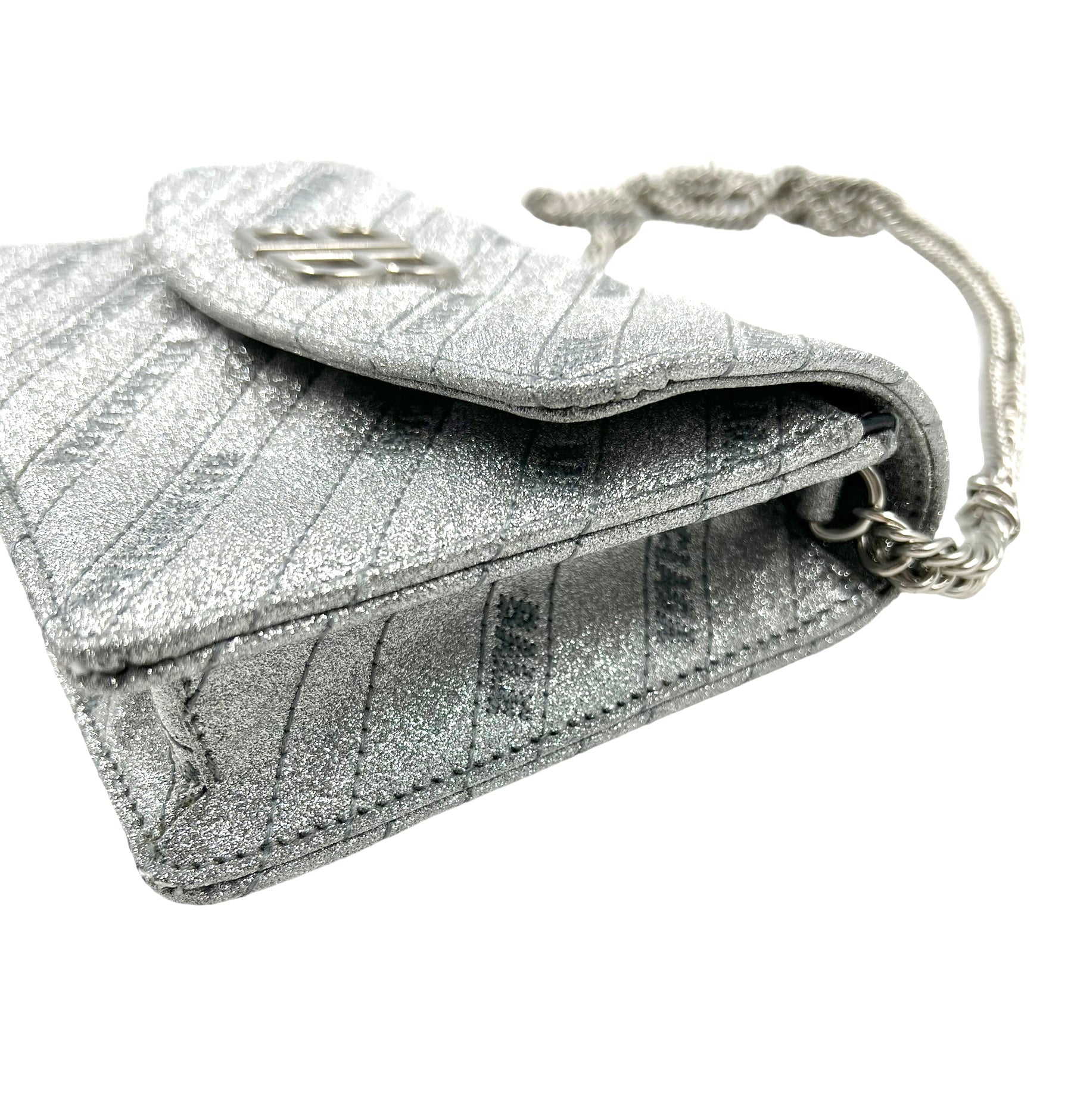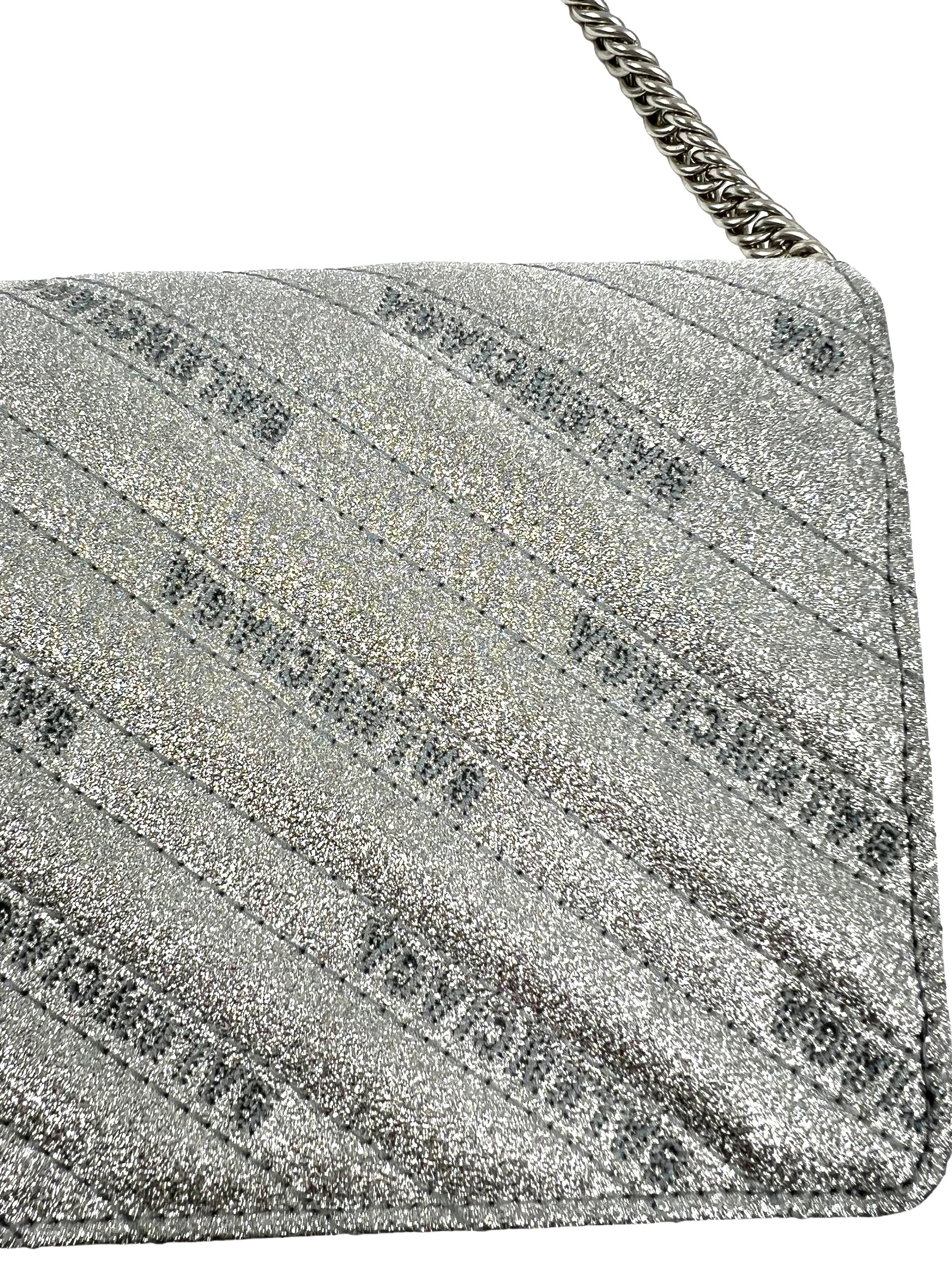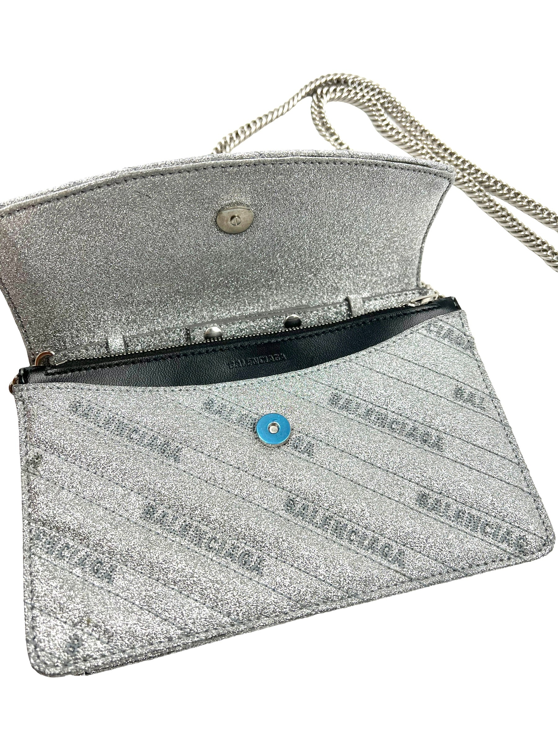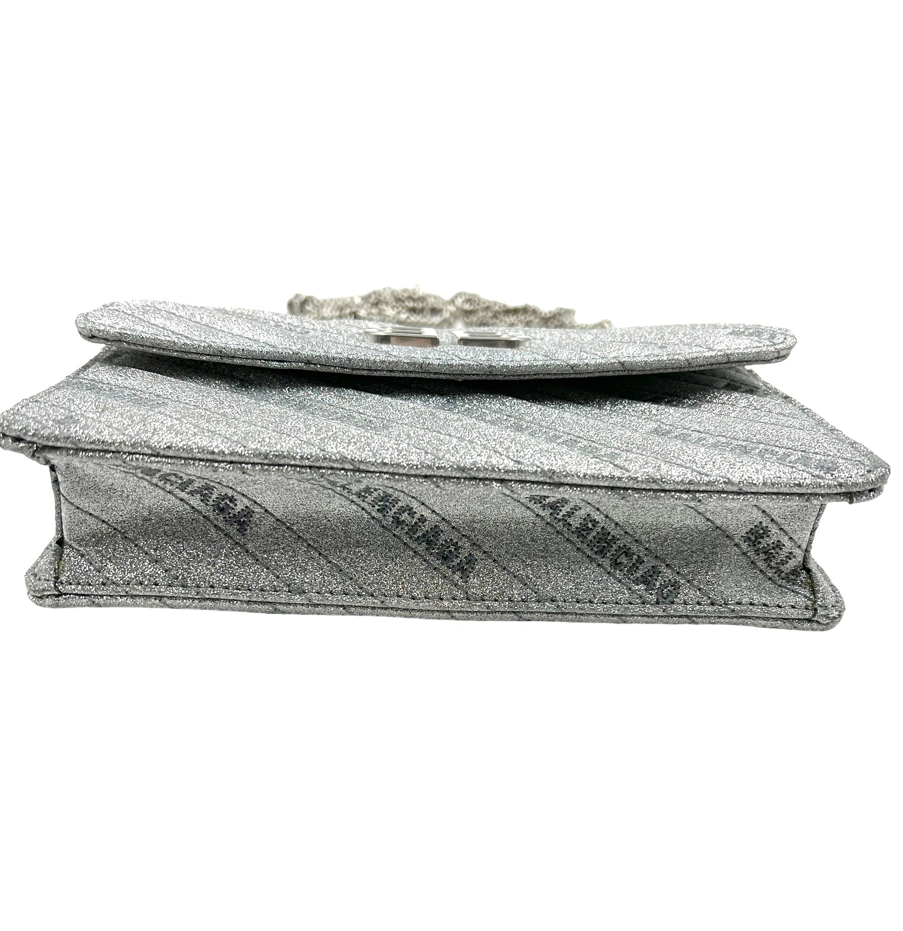 Balenciaga Silver Bb Chain Wallet Glitter Bag