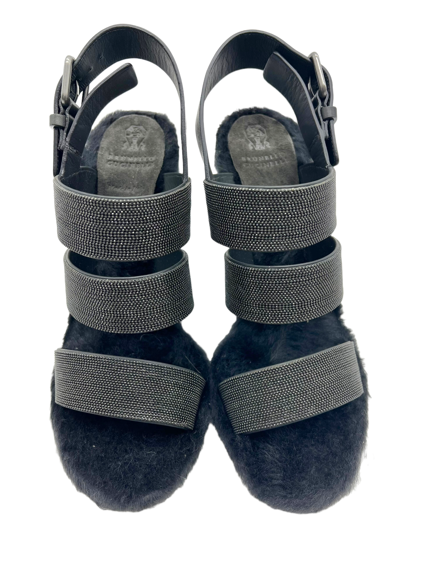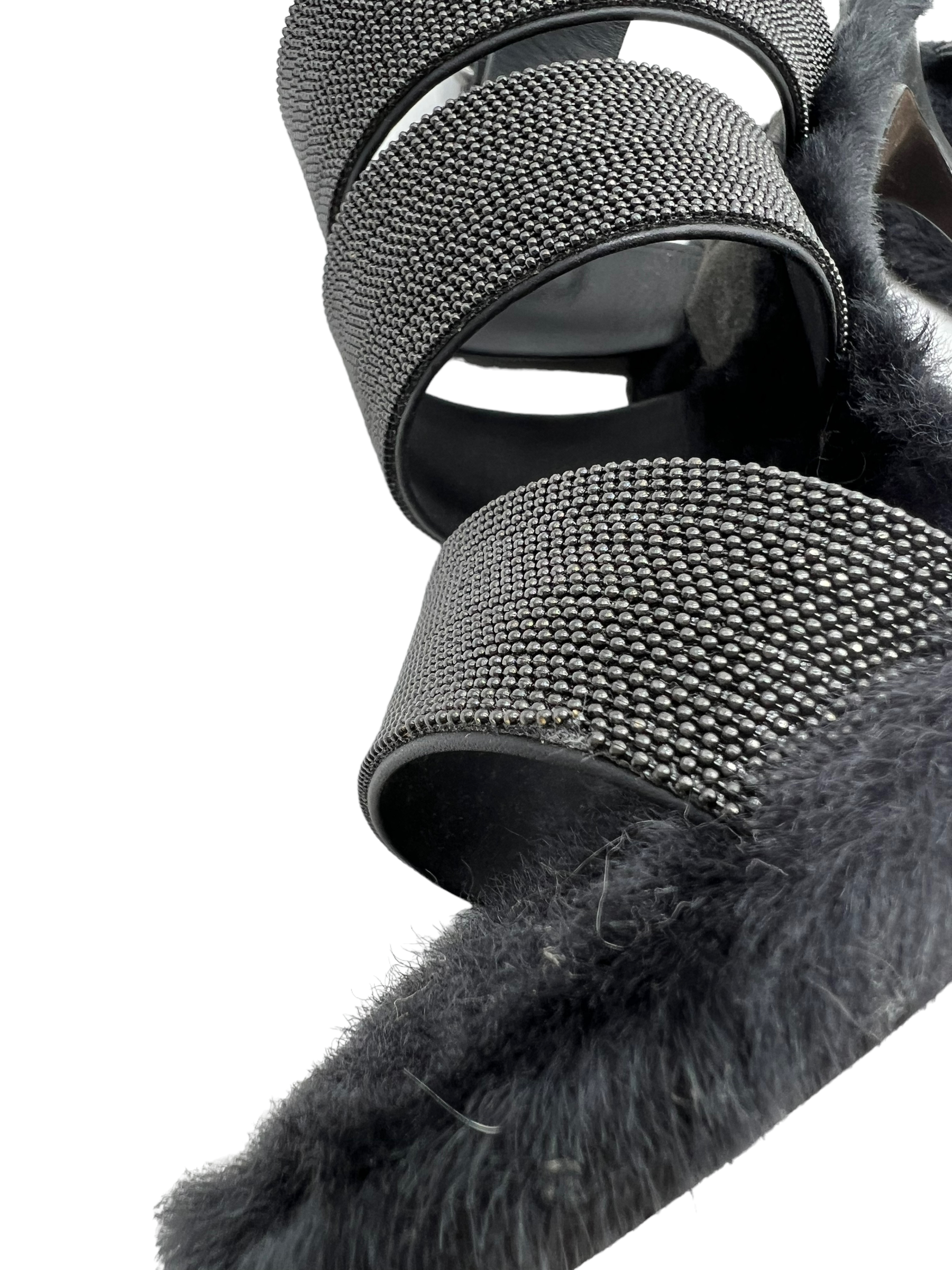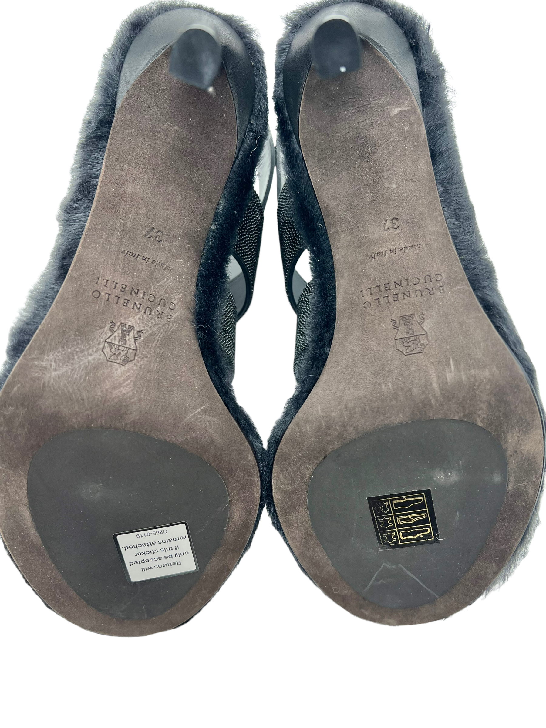 Brunello Cucinelli Black Beaded Fur Lined Size 37 Heels