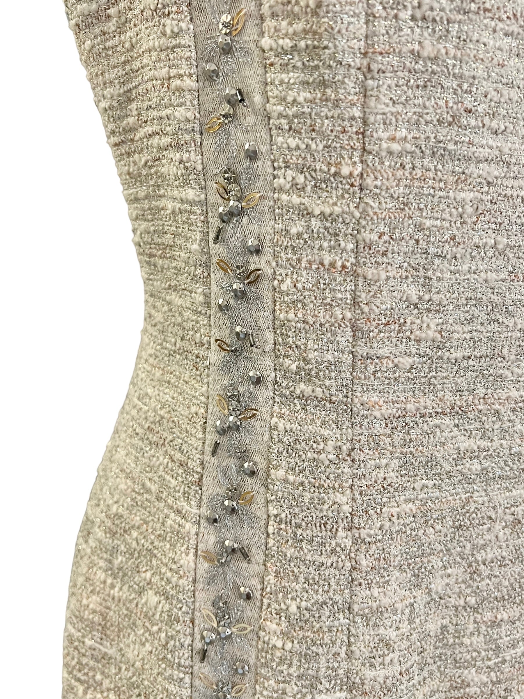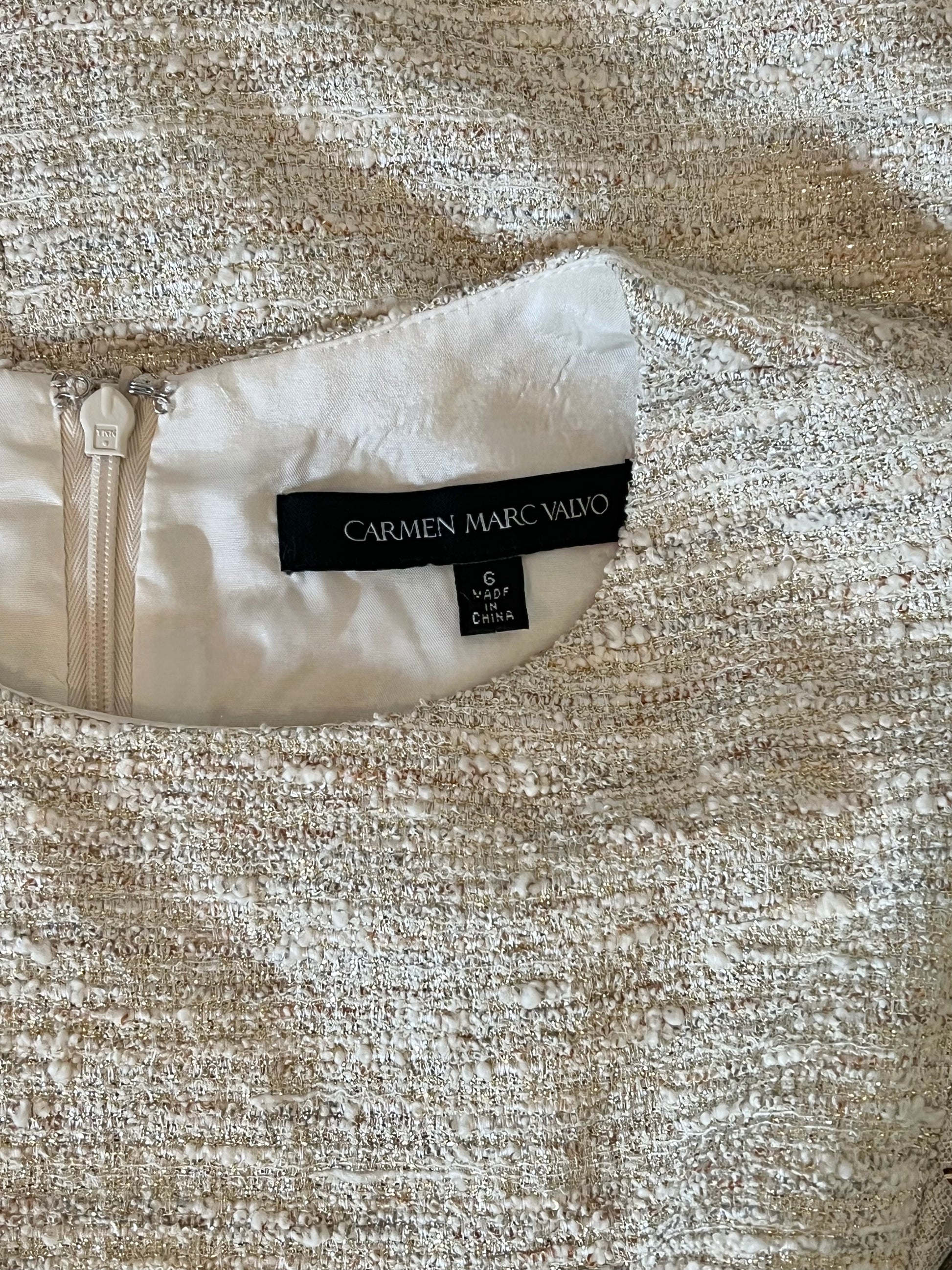 Carmen Marc Valvo Size 6 Cream Tweed Knit Dress