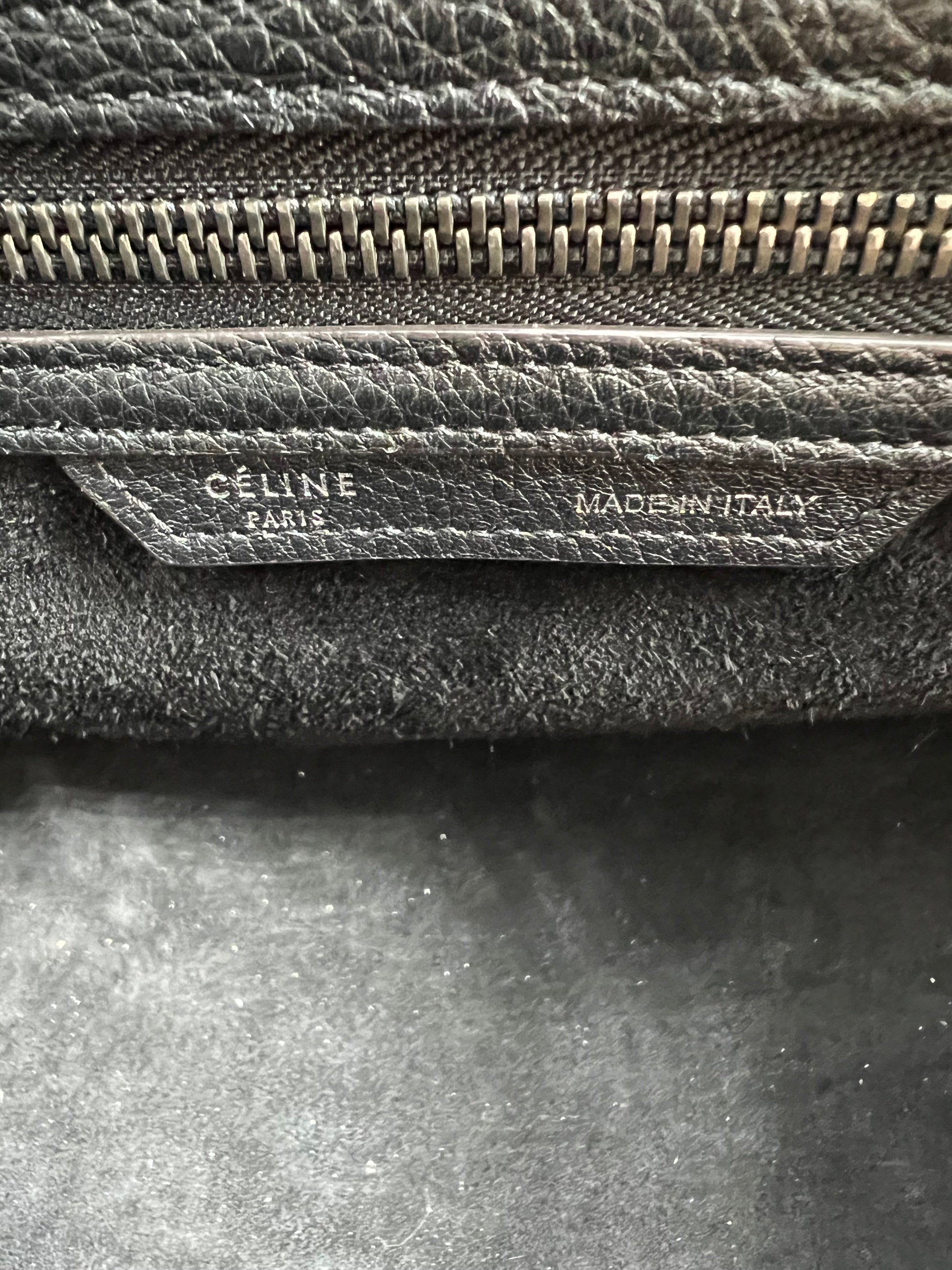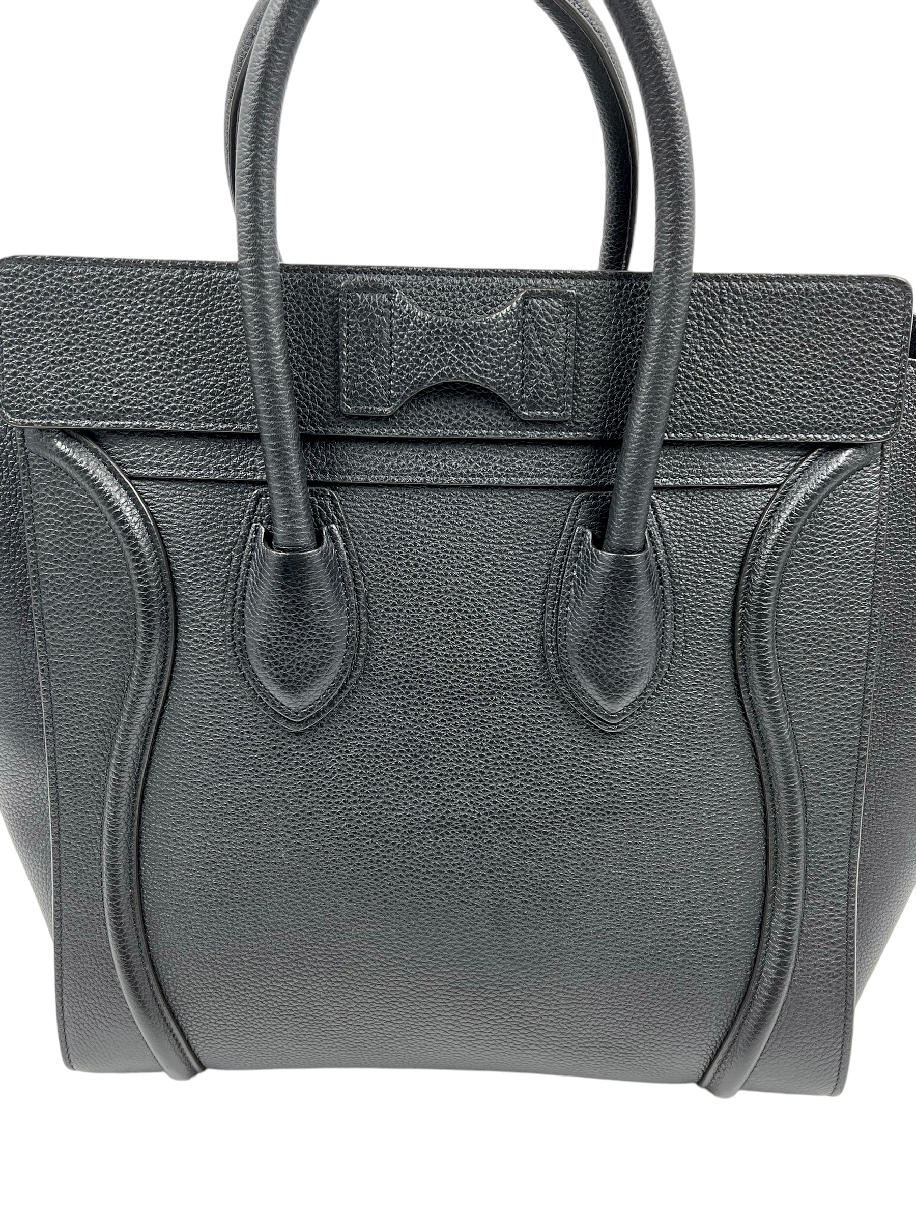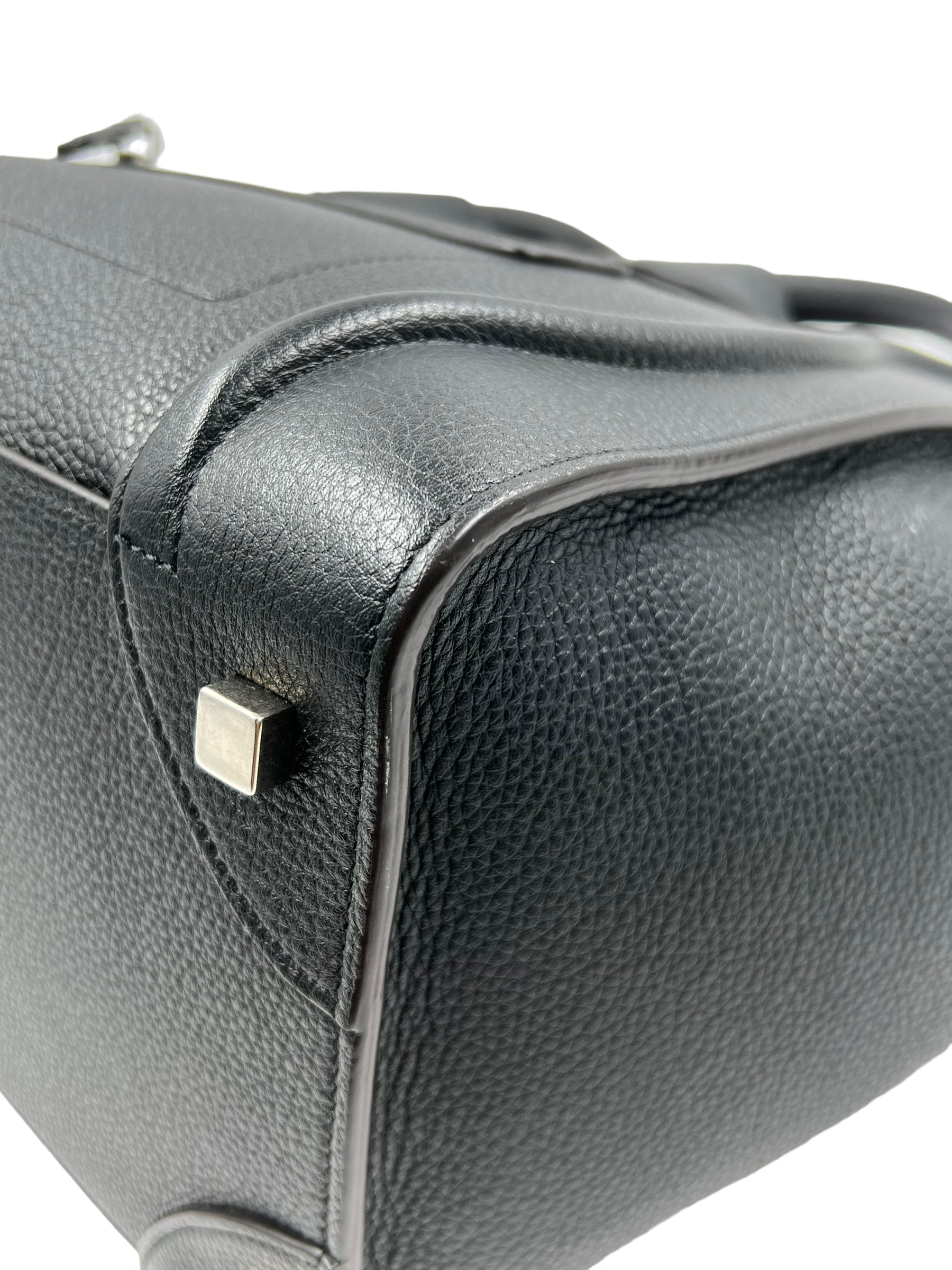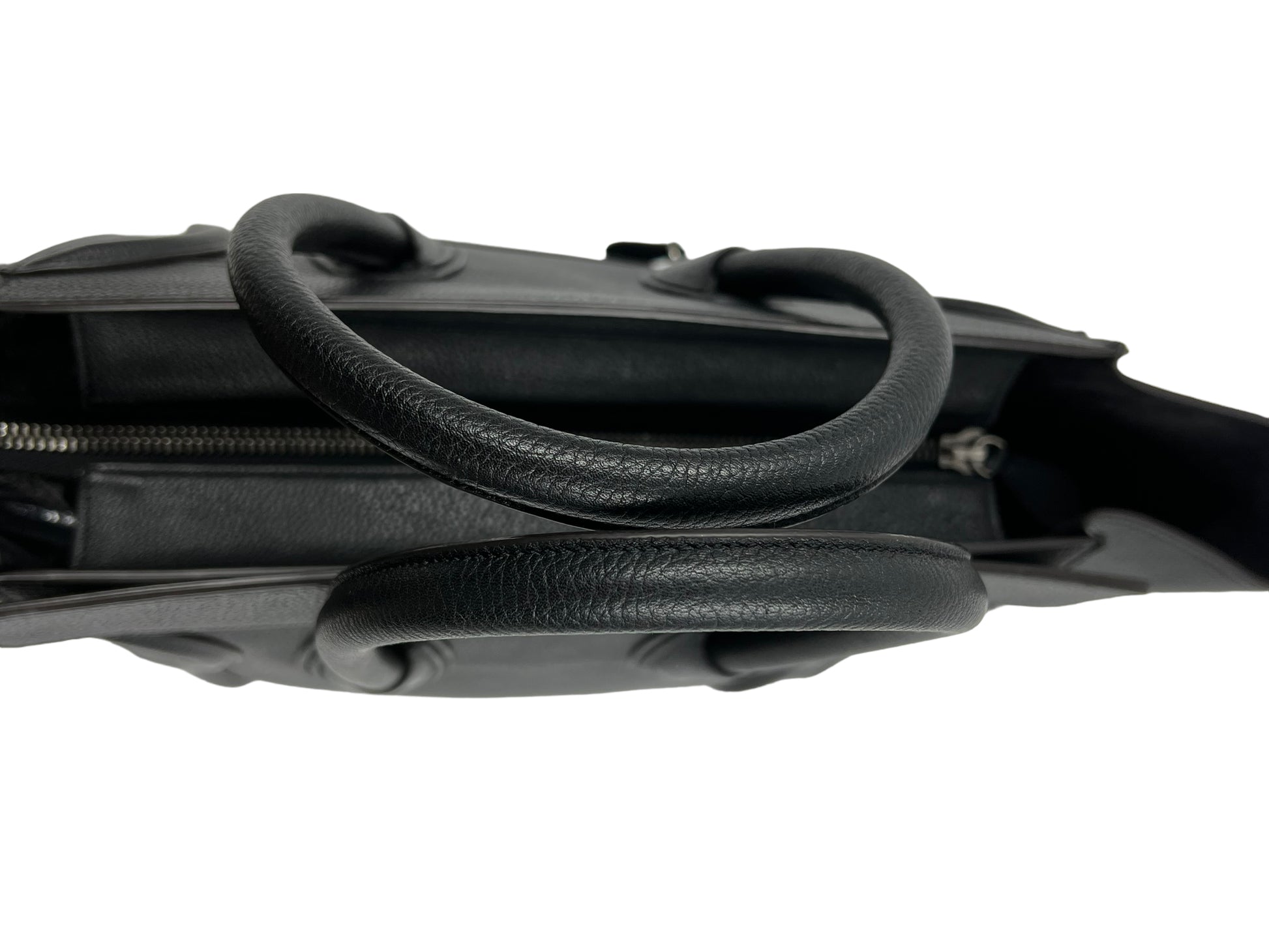 Black drummed leather expandable Mini Luggage tote with silver hardware. Comes with dust bag.