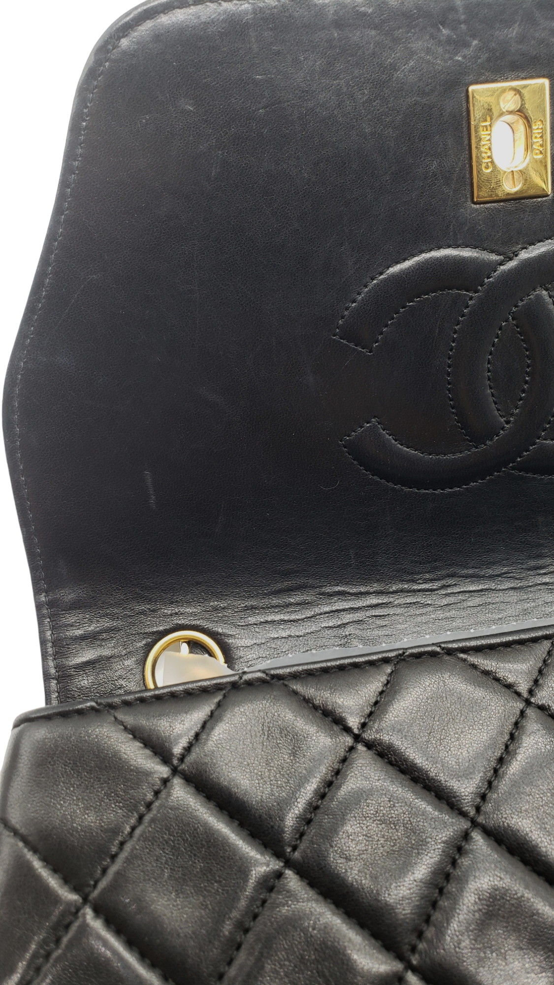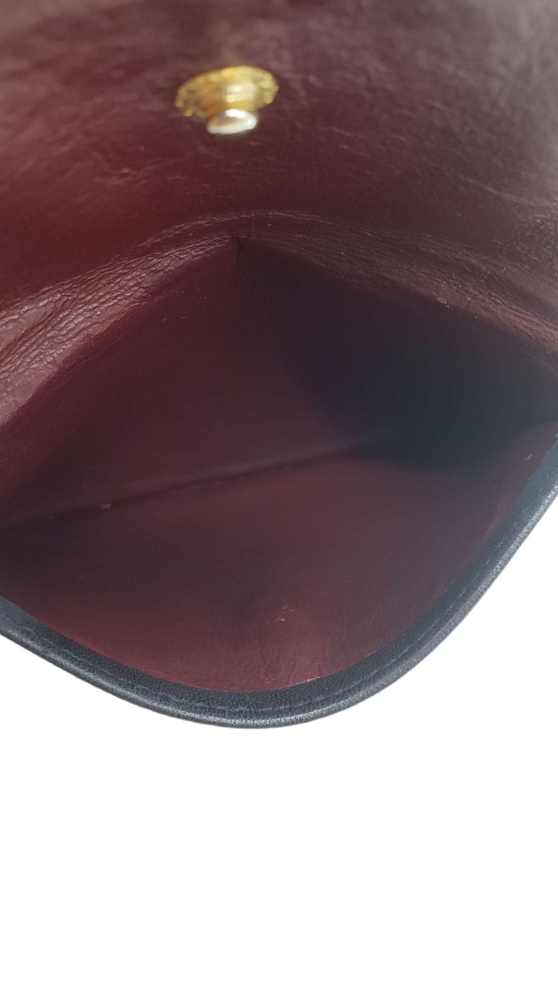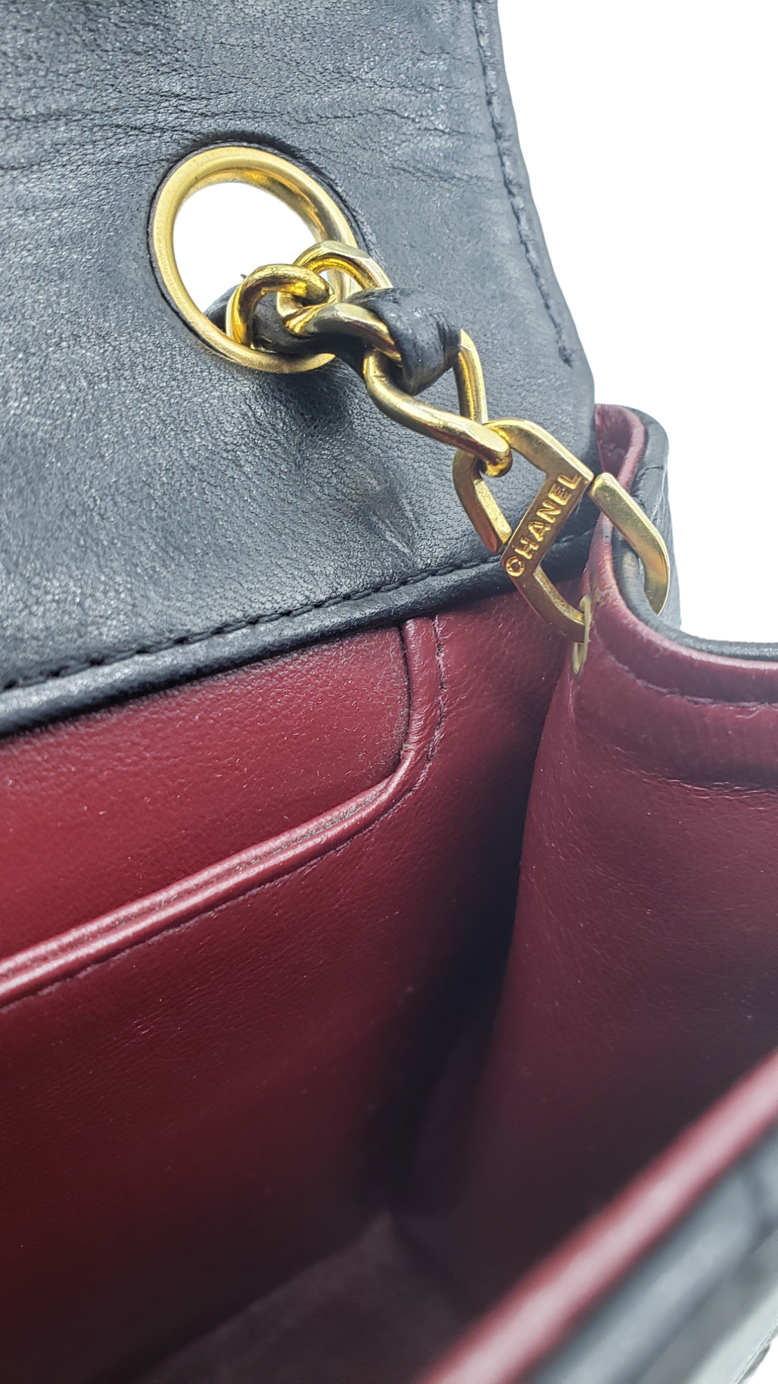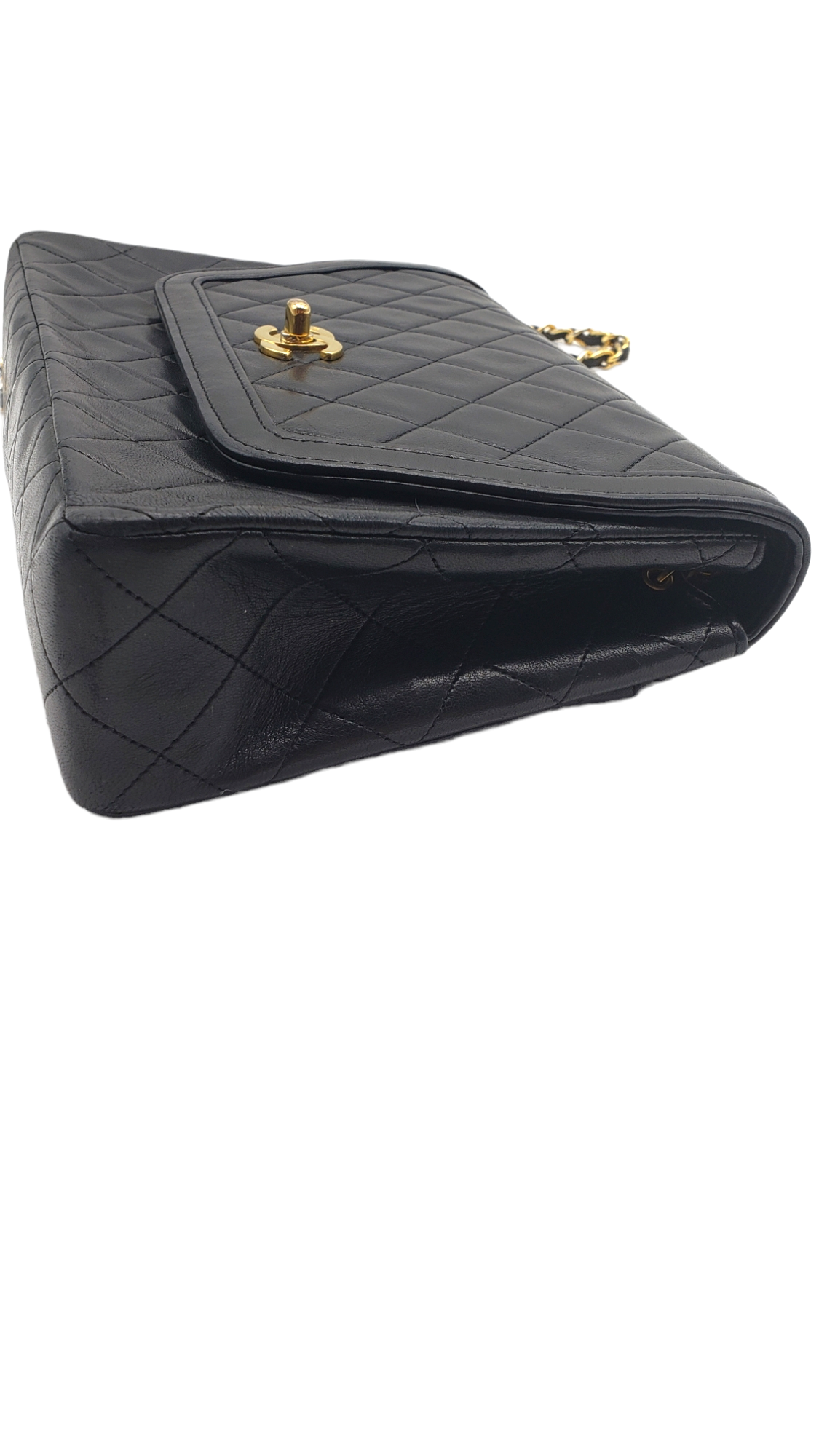 Black lambskin vintage 1989-1991 trapeze shoulder bag with gold hardware. Comes with cardholder. Does not come with dust bag or box