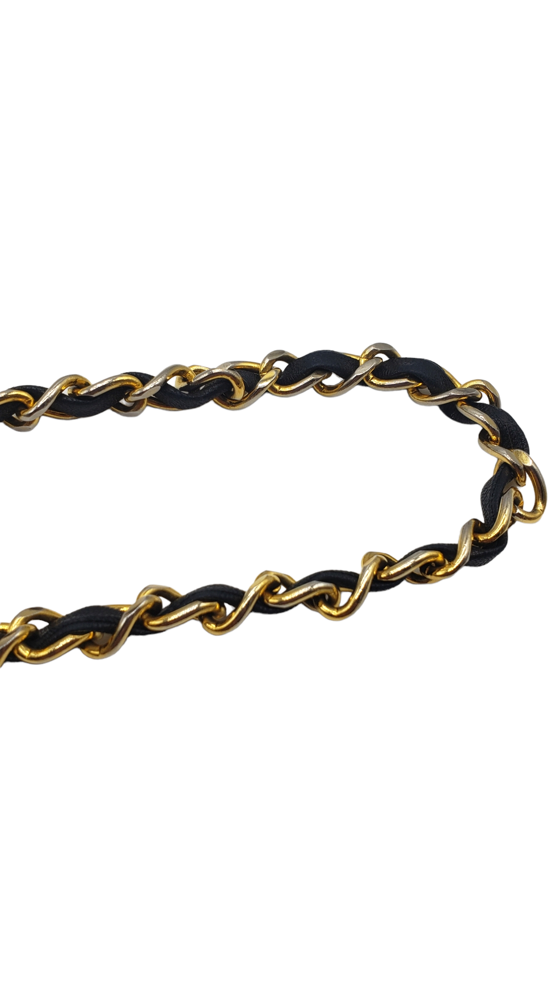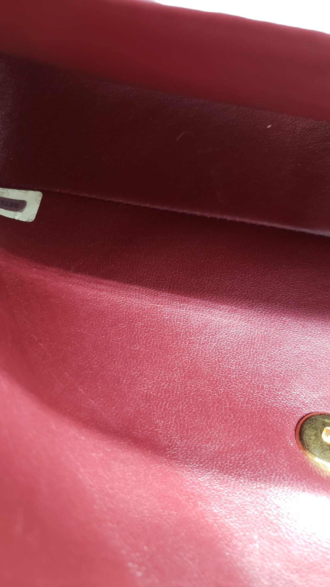 C-Good pre-owned condition with tarnishing on front hardware and chain. Has light wear on exterior leather and trim/corners. Interior shows gentle signs of wear