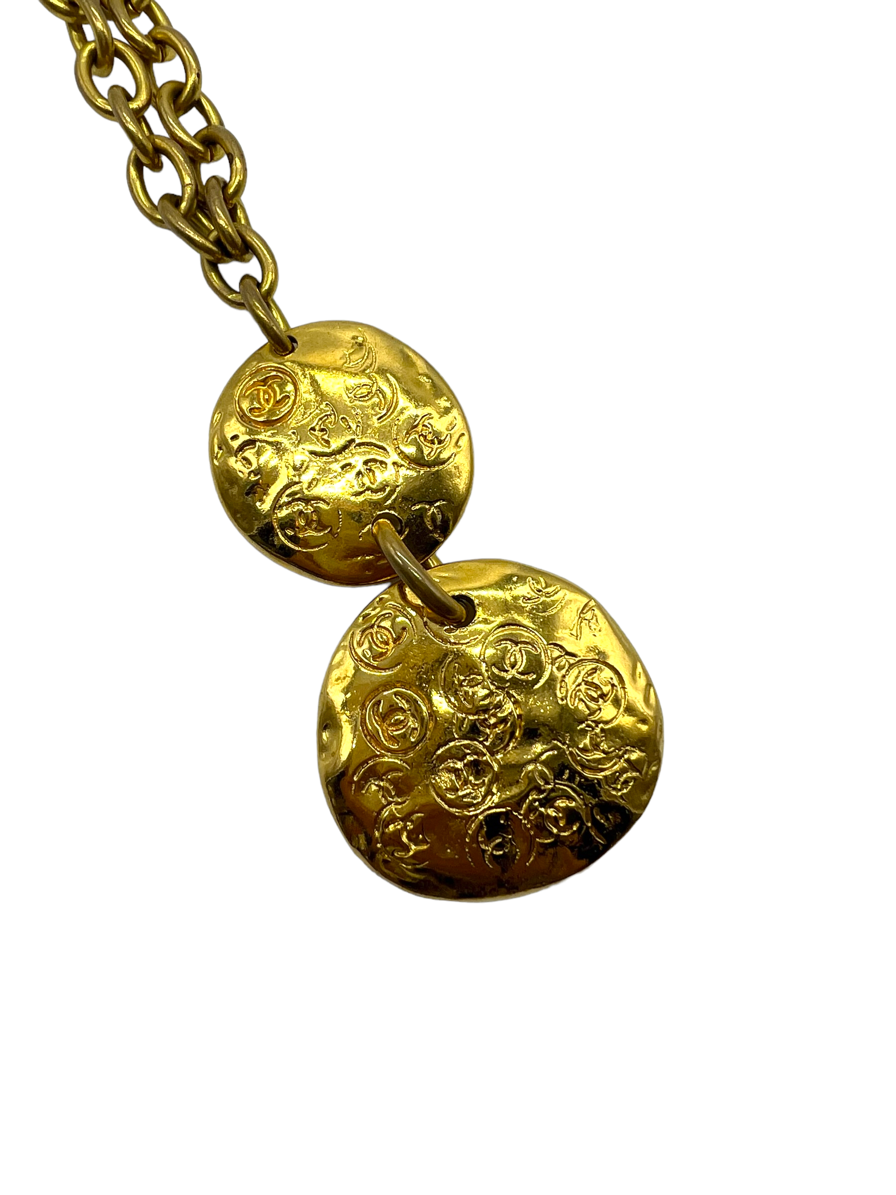 Chanel Gold Vintage 1993 CC Stamped Double Disk Necklace