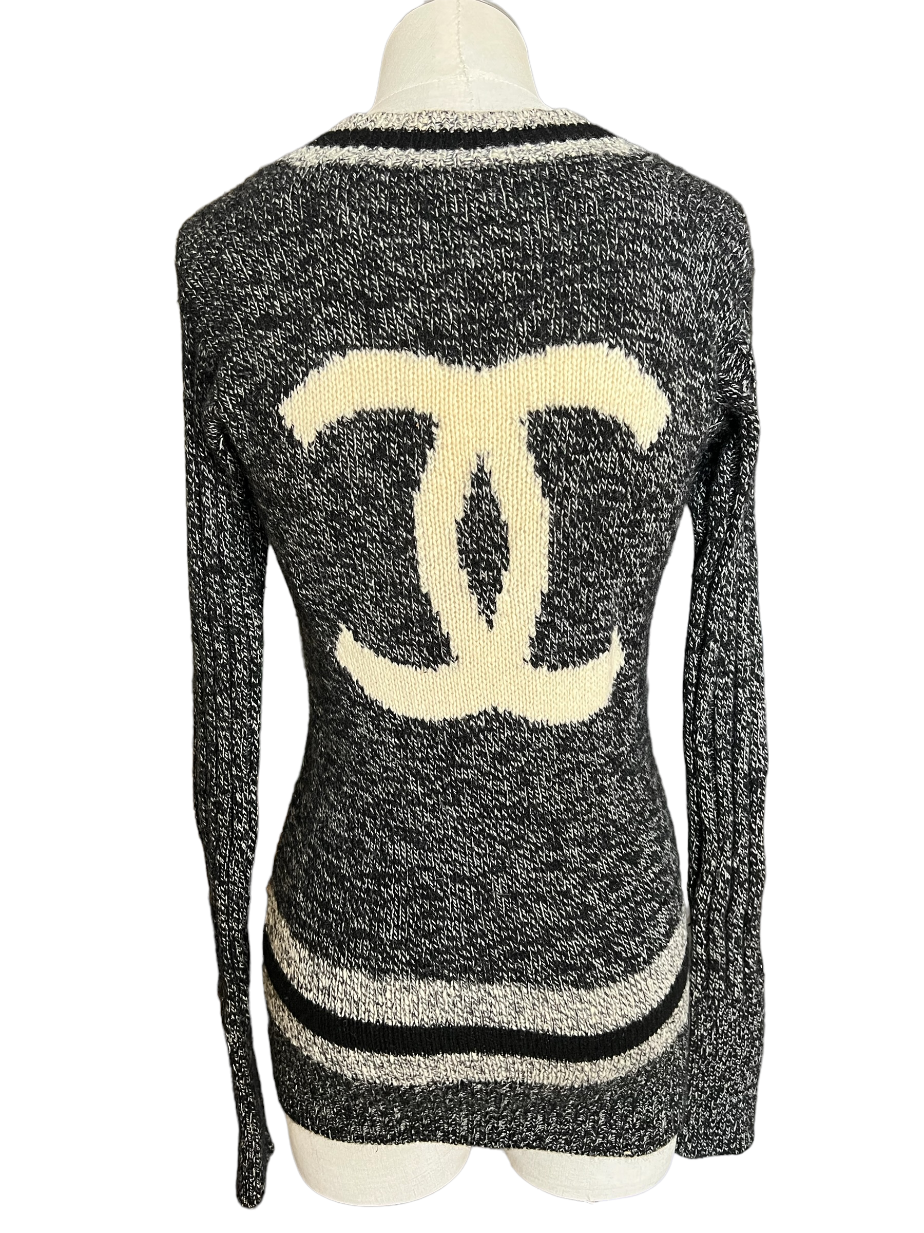 Chanel Gray Charcoal 96A Cashmere CC Logo Sweater