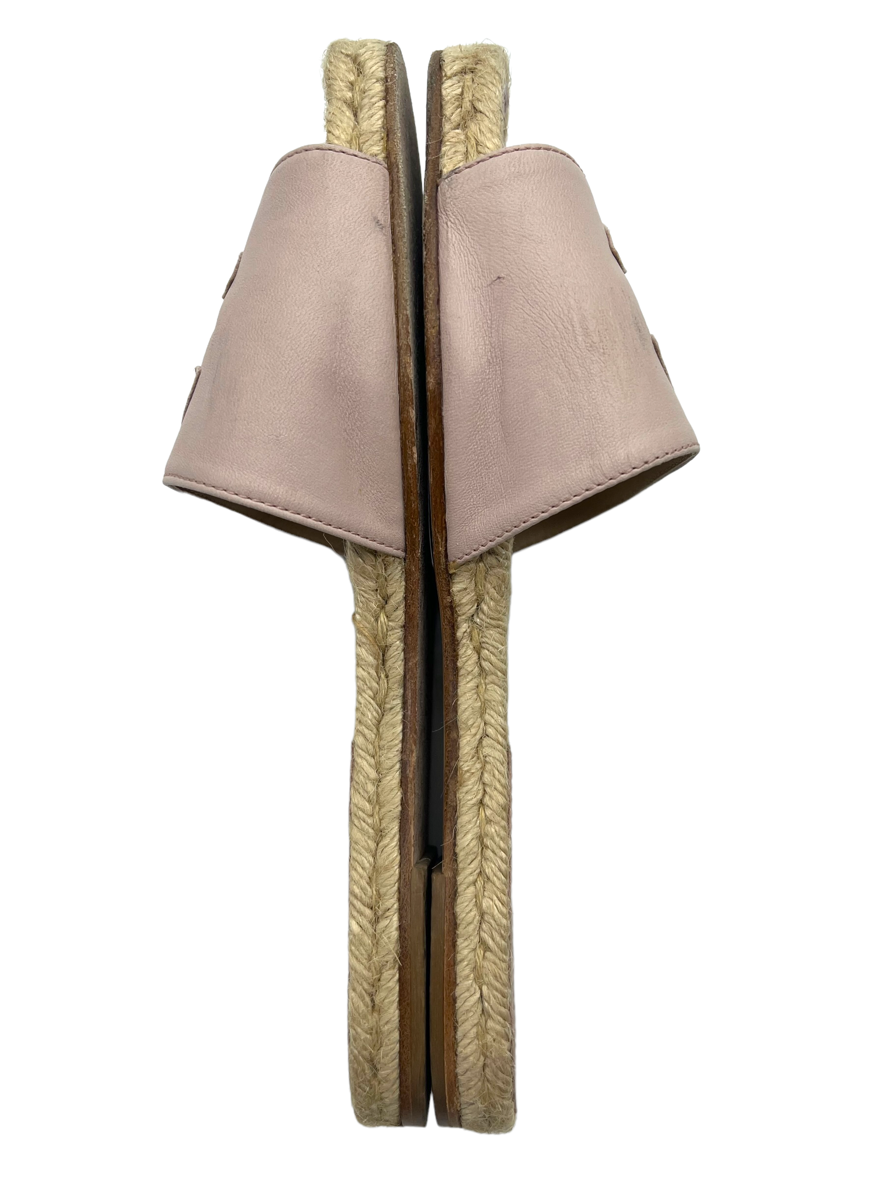 Chanel Pale Pink Lambskin CC Logo Size 39 Espadrille Slides