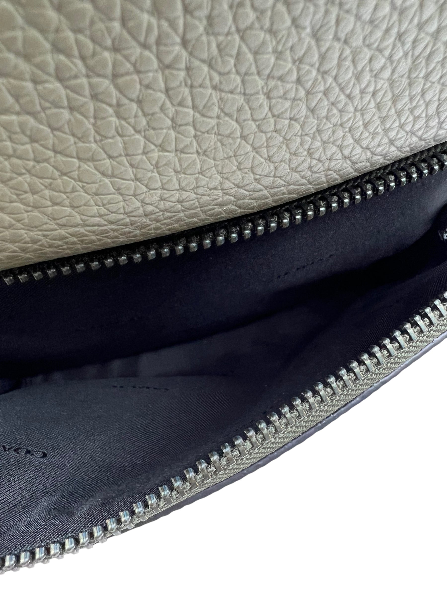 B-Excellent pre-owned condition, gently used. Dog tag bag charm has heat stamped initials.