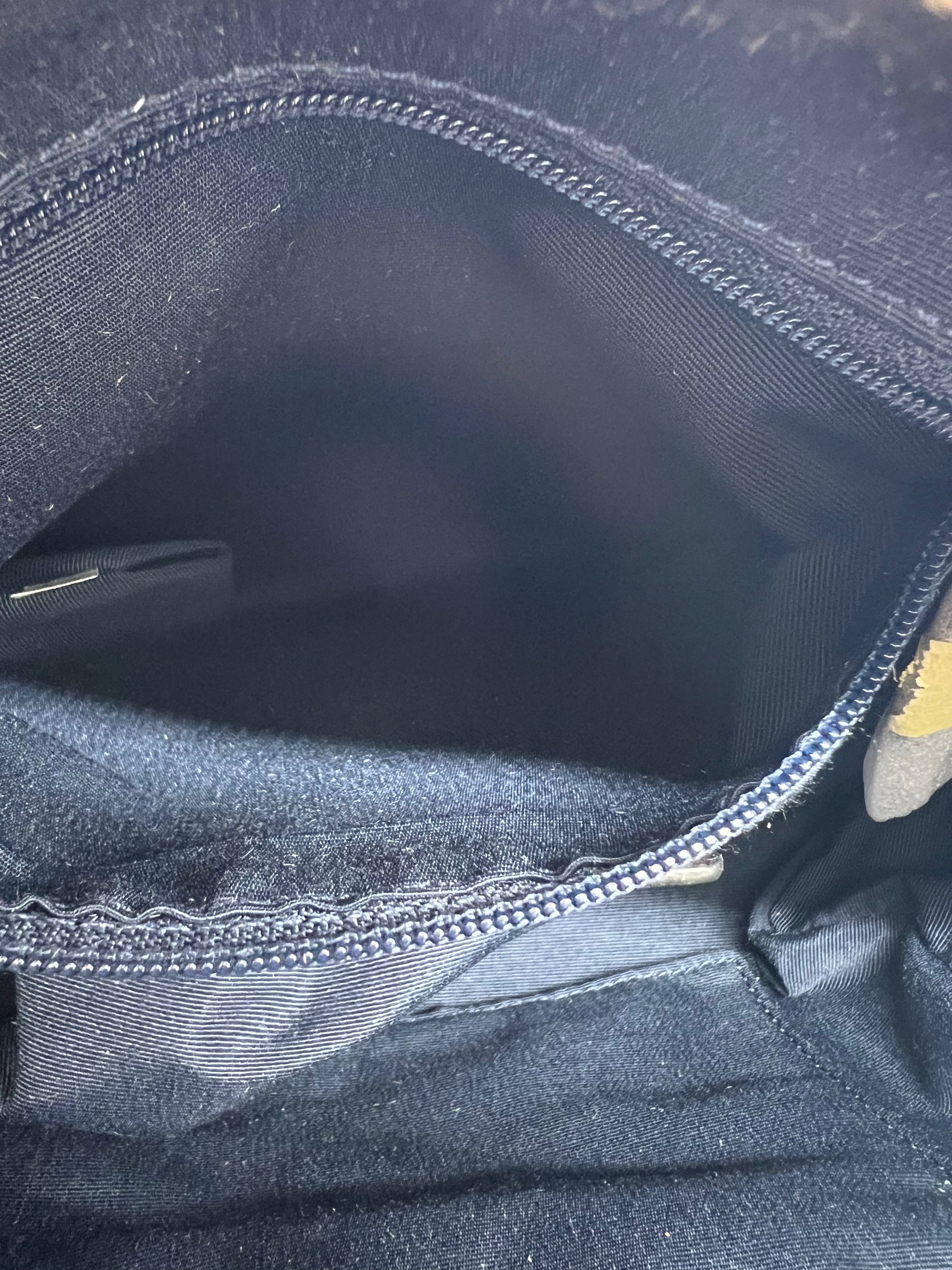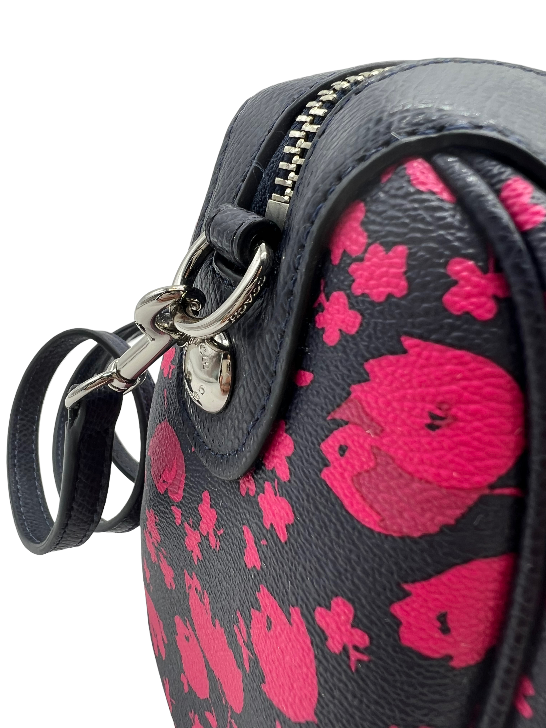 Navy and fushia coated canvas flower print Mini Bennett bag with silver hardware. Comes with detachable adjustable long strap and original tags. Comes with unbranded dust bag.
