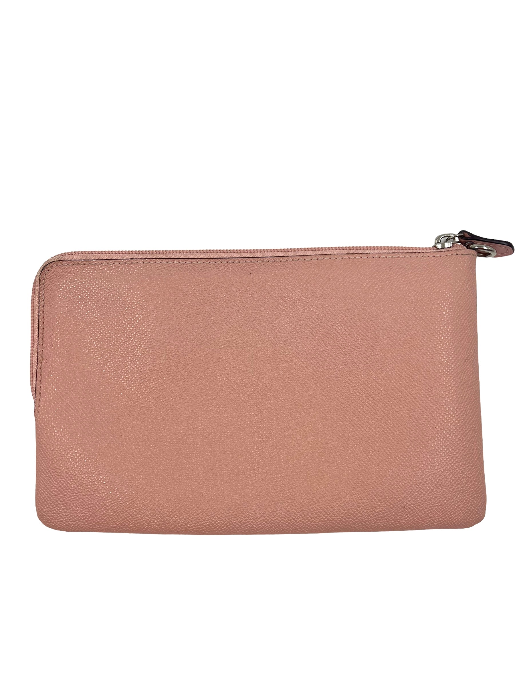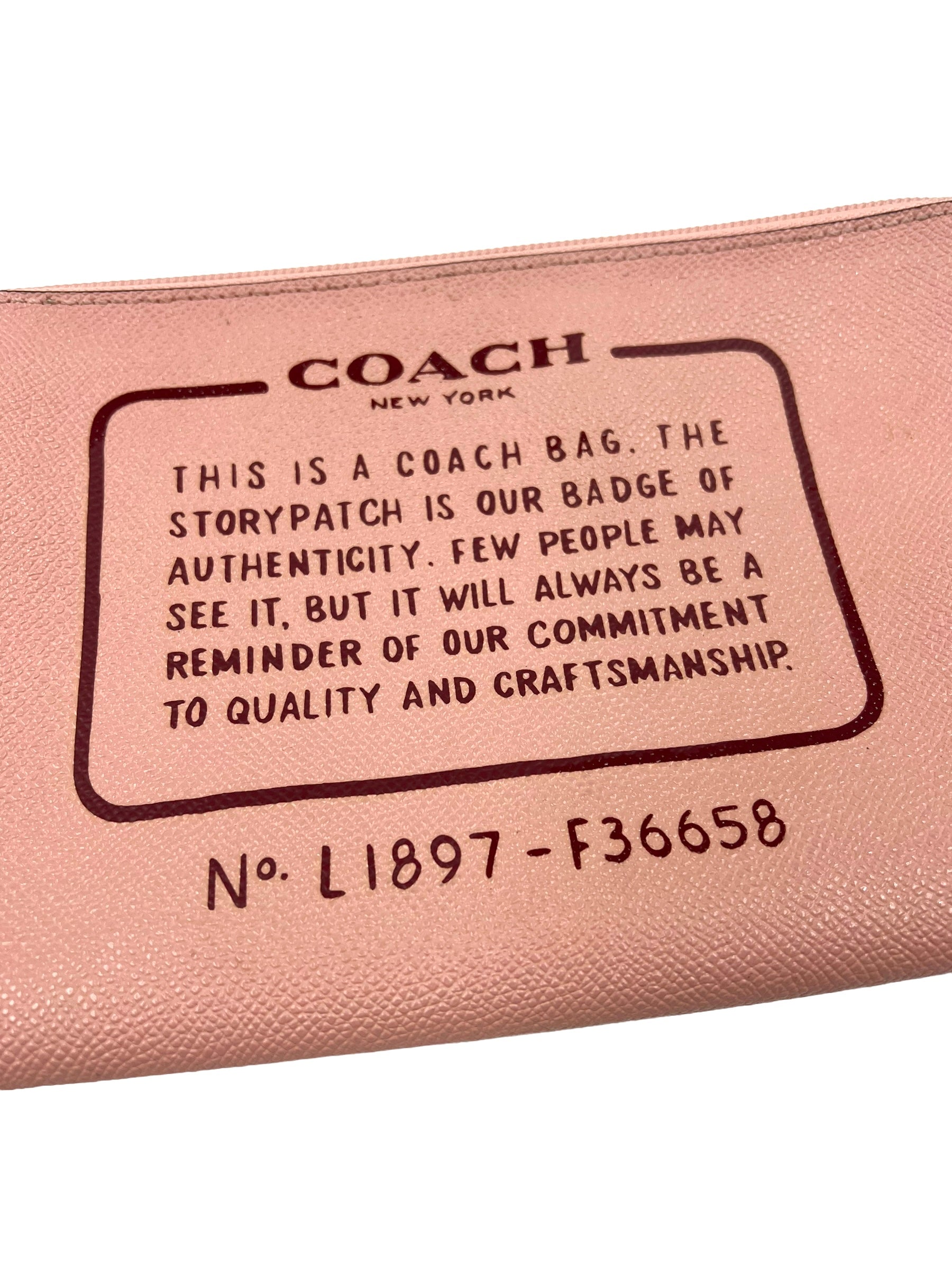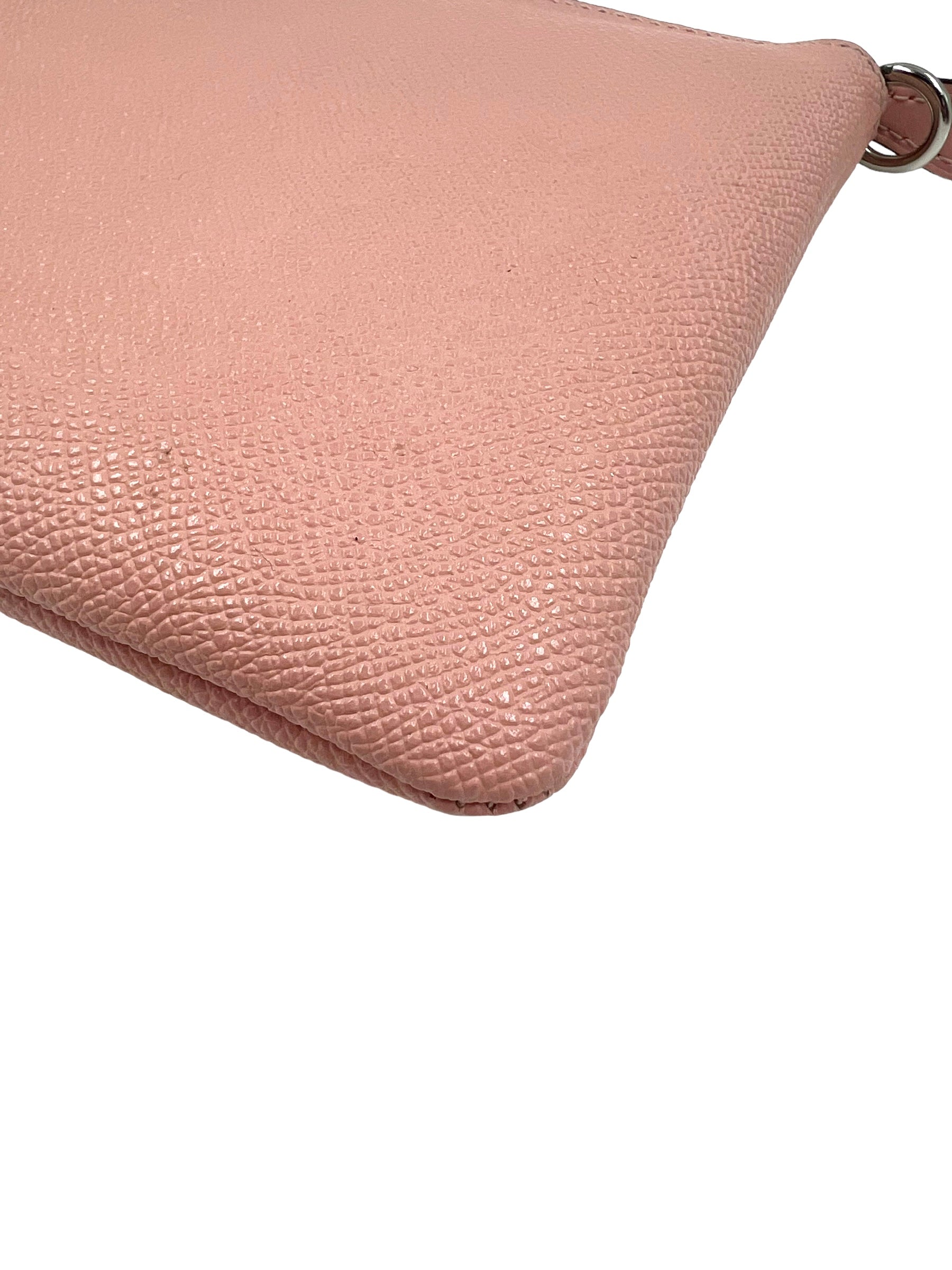 Pink grained leather large Storypatch corner zip pouch with silver hardware. Does not come with dust bag or box.