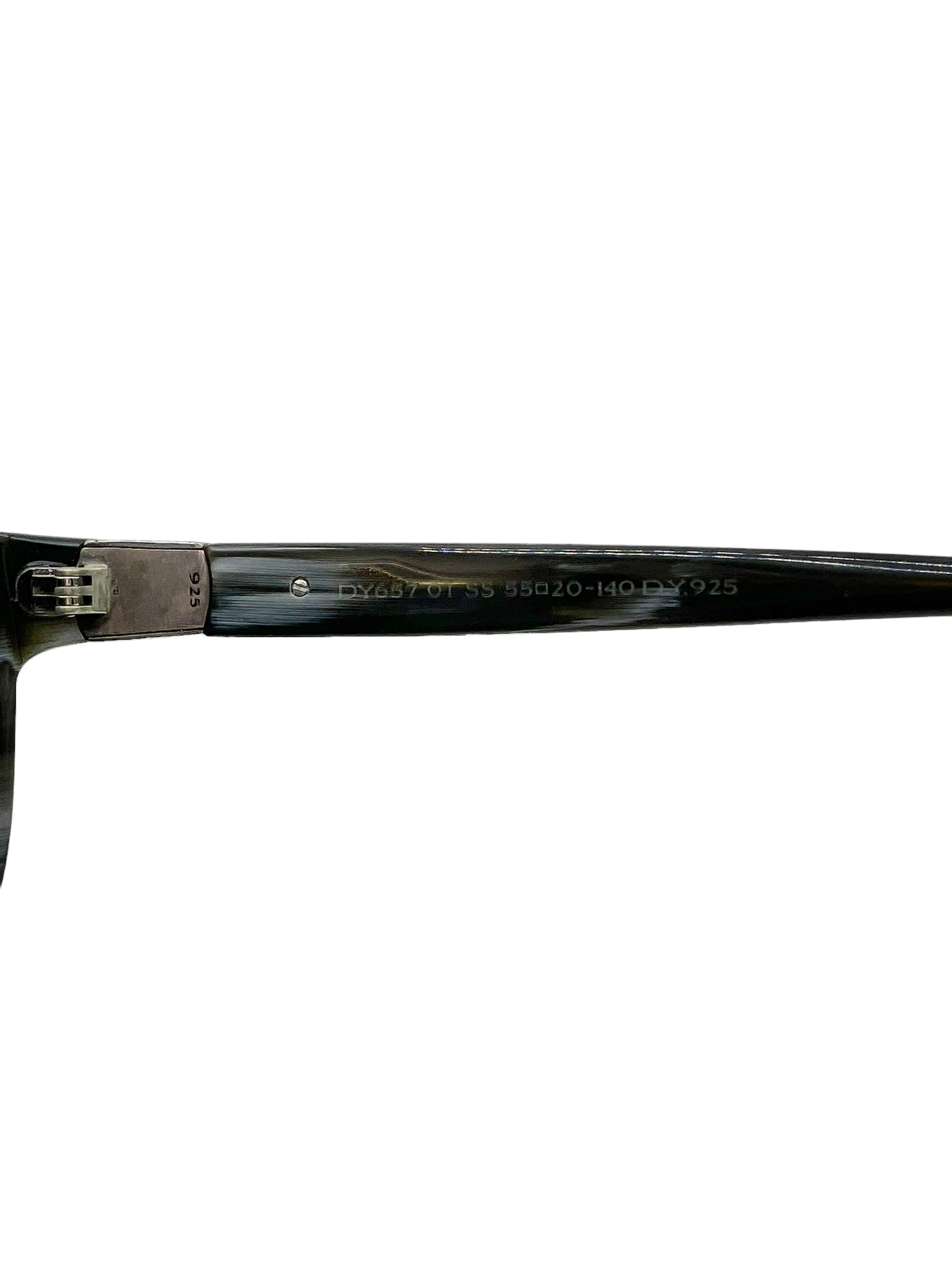 Black and gray horn Maritime Wayfarer DY657 sunglasses with sterling silver hinge detail. Comes with case.