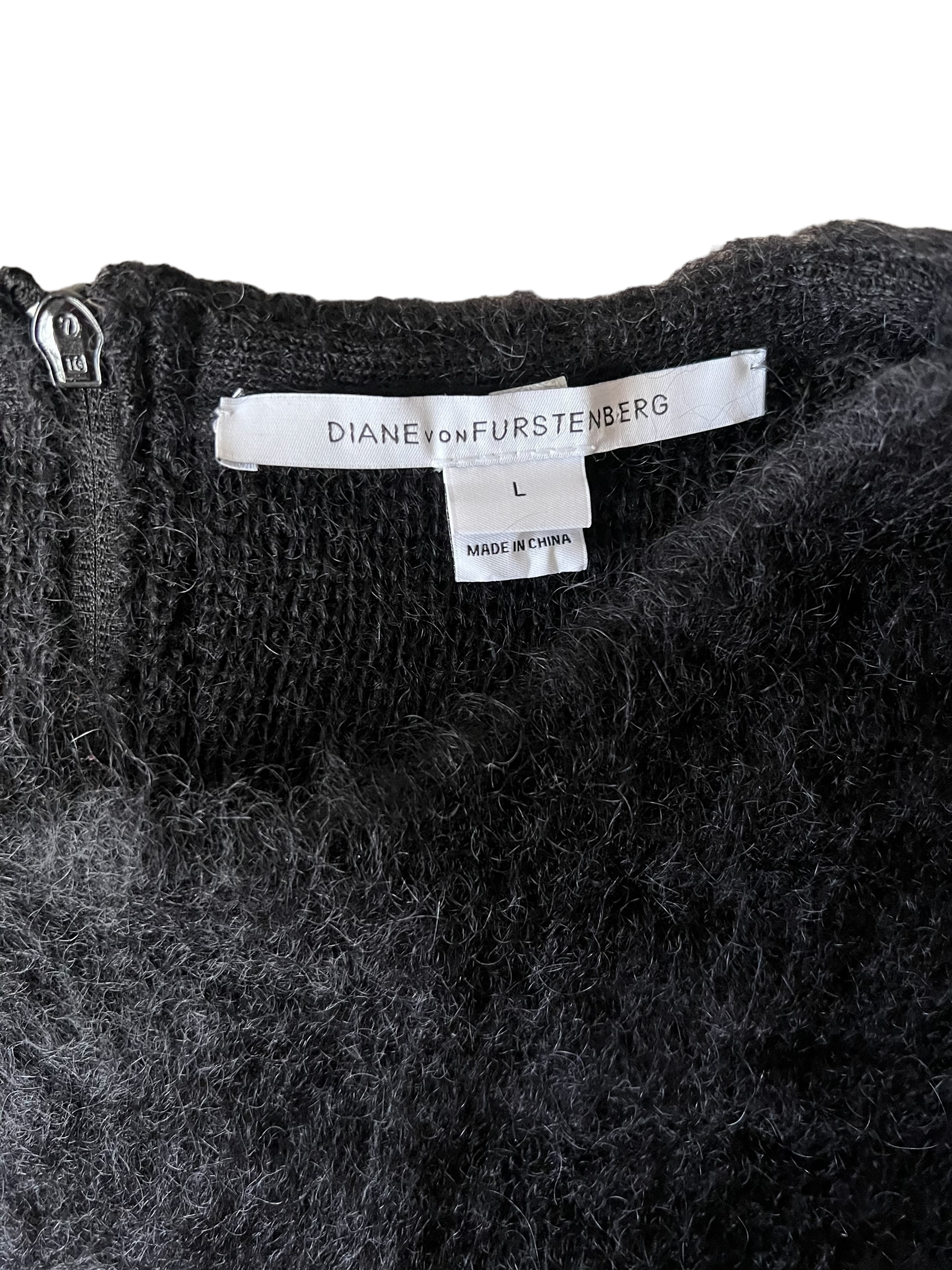 Diane Von Furstenberg DVF Black Wool Leather Size L Dress