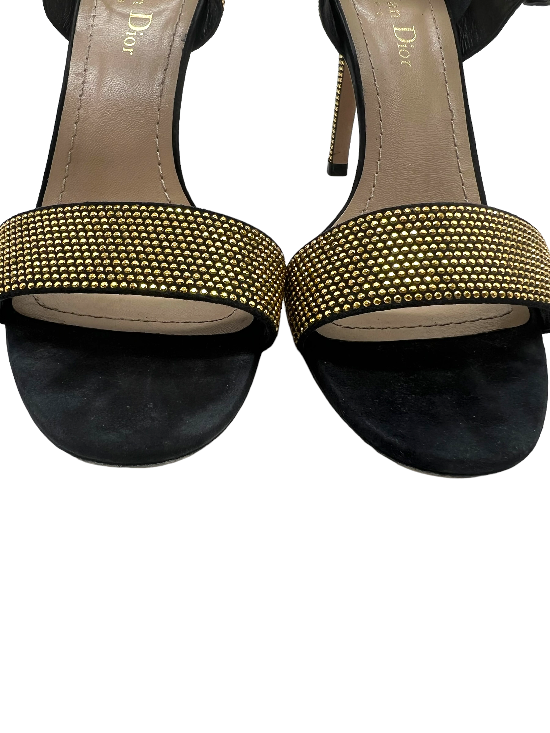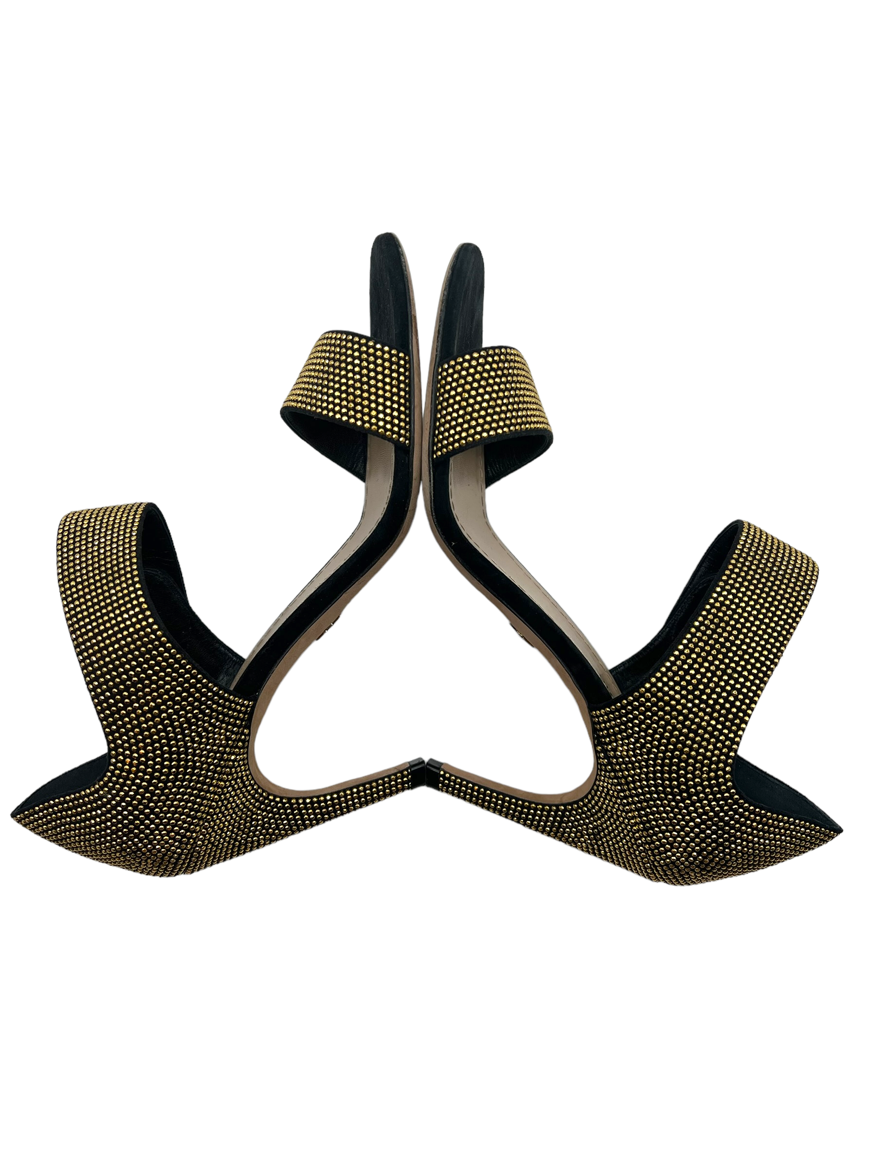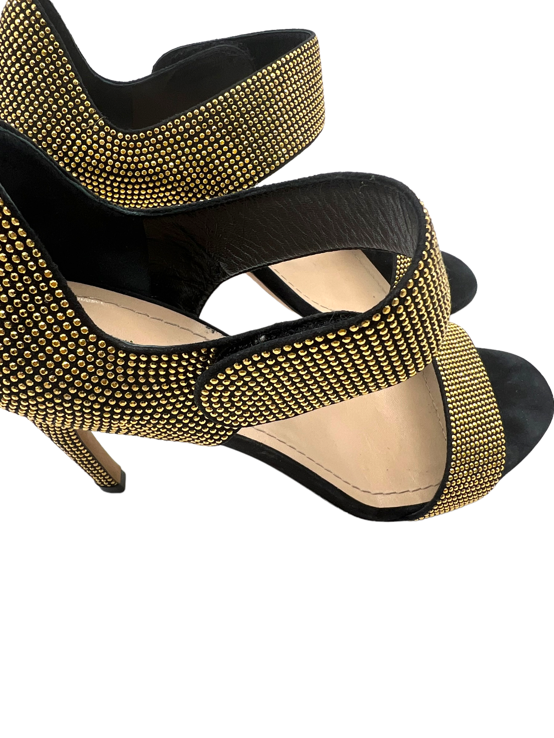 Gold studded open toe heels with velcro straps. Do not come with dust bag or box