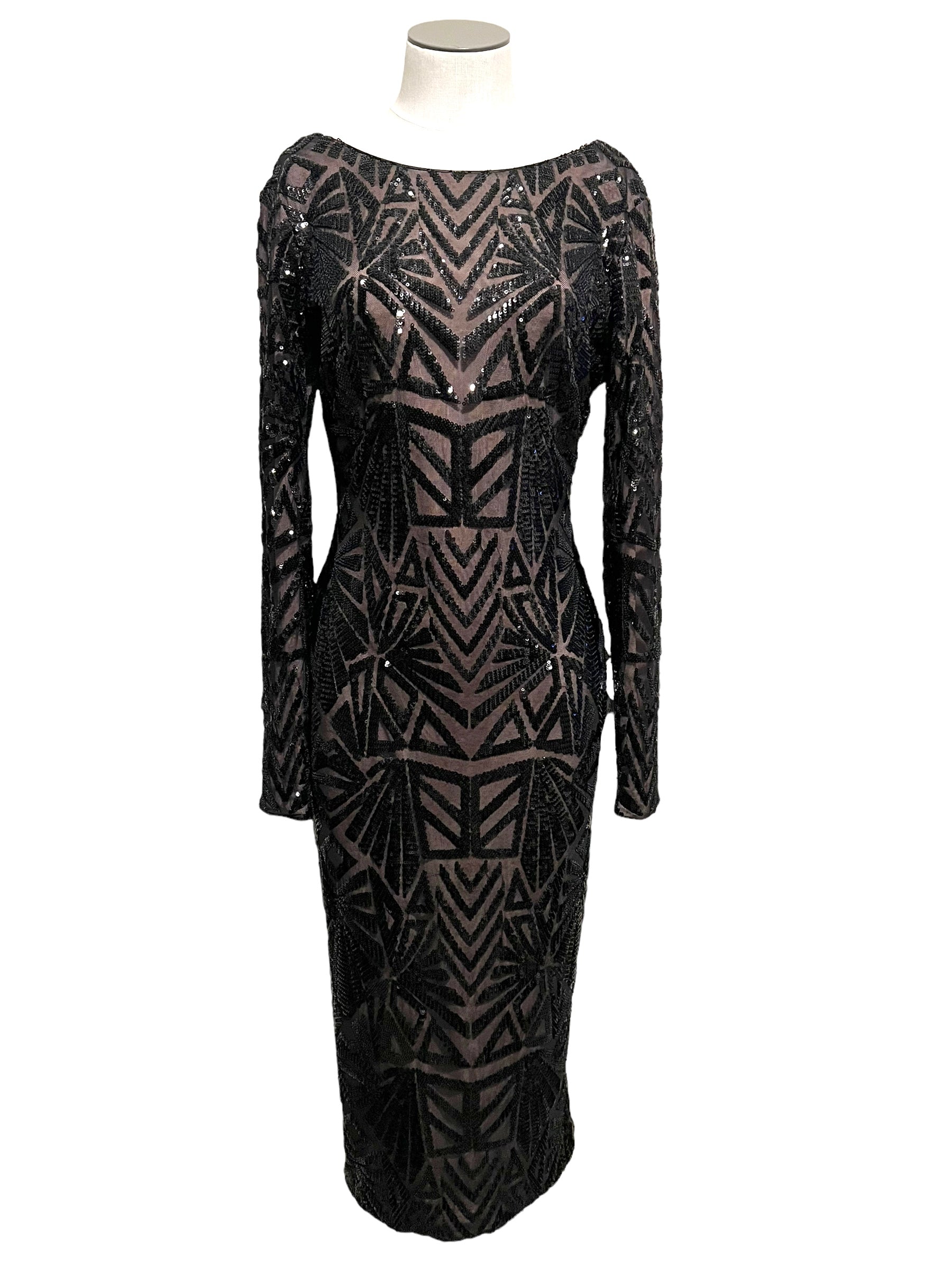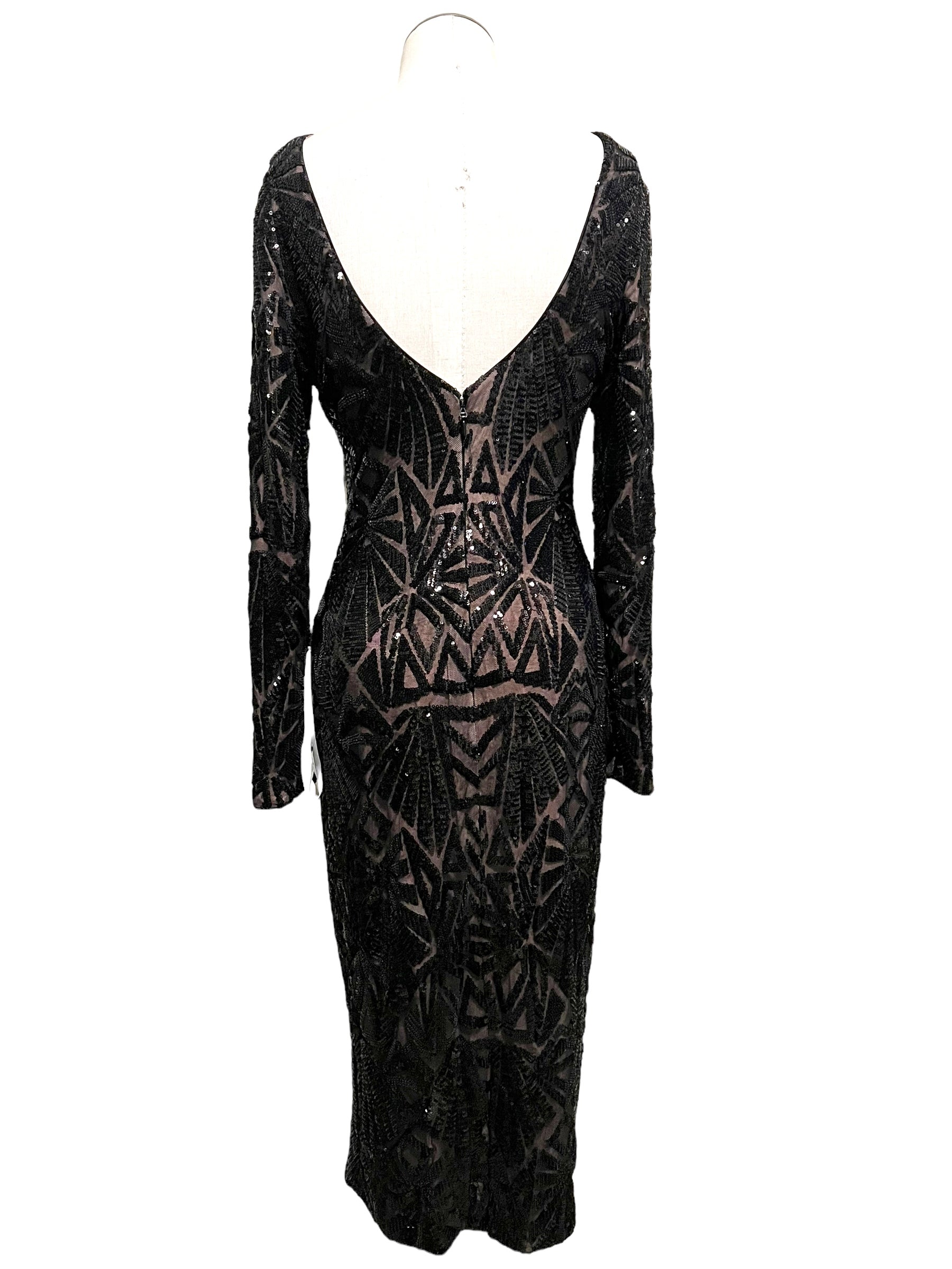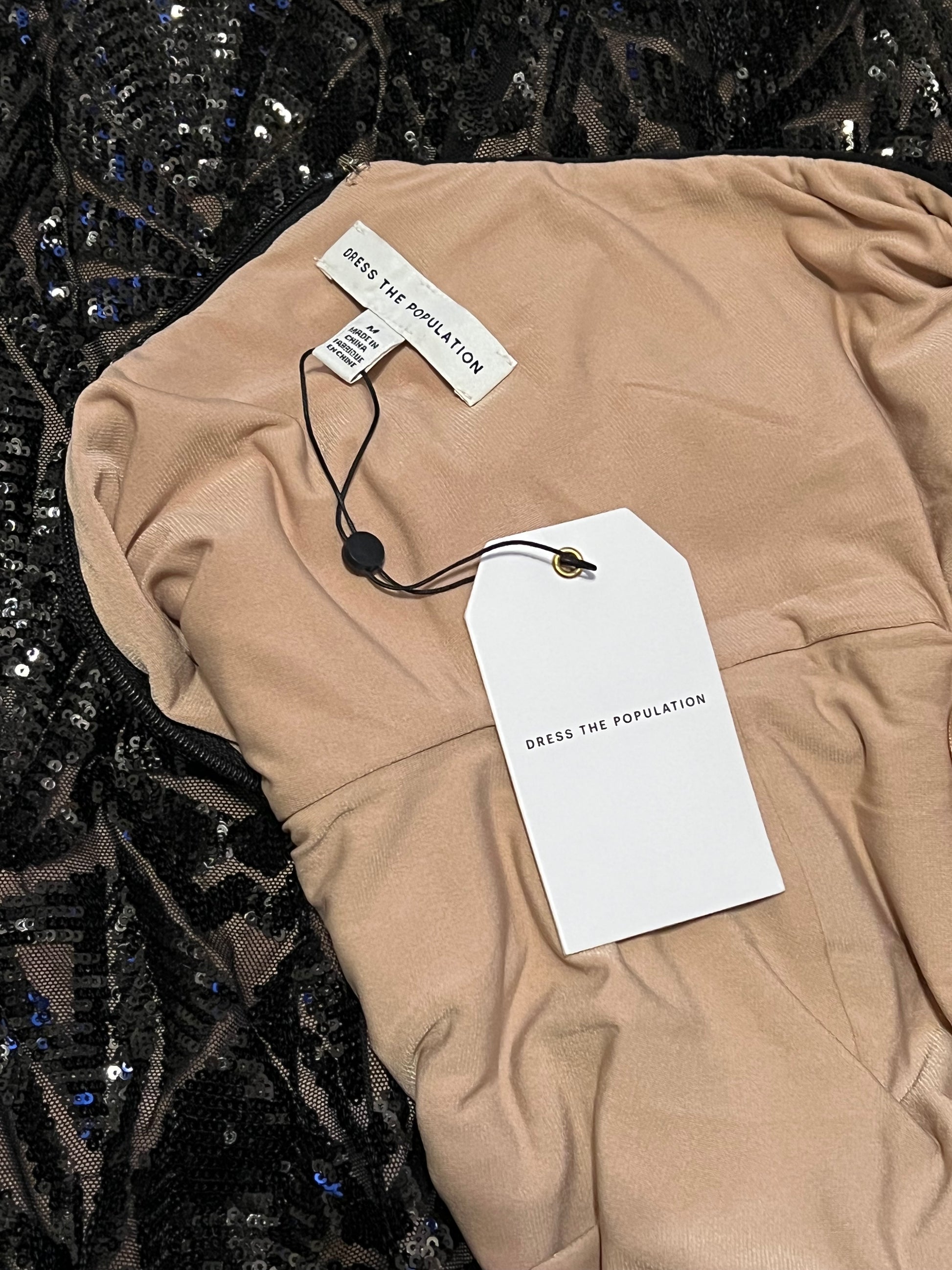 Black sequin Emery dress with nude underlay/lining and back zip closure. Comes with tags.