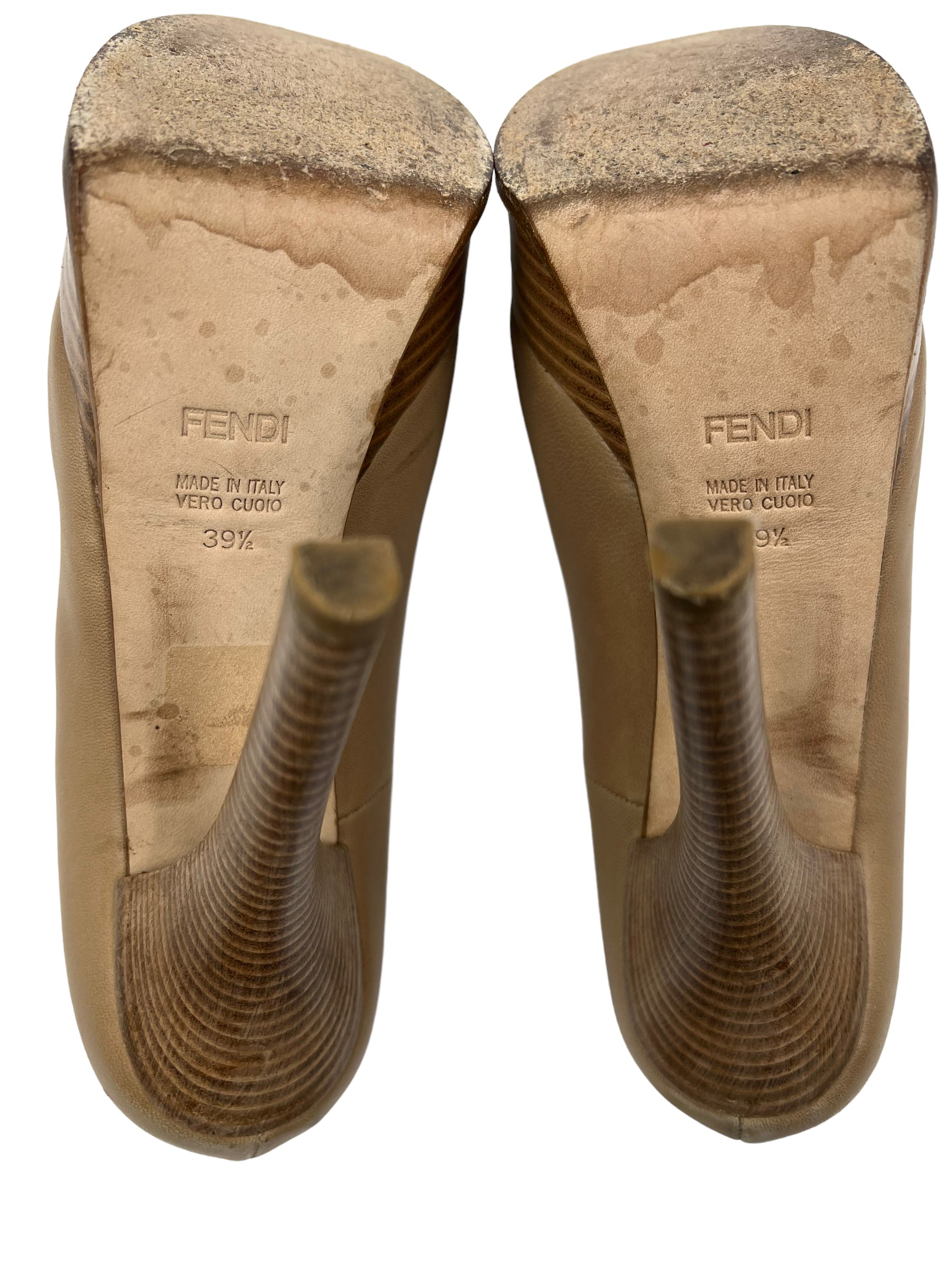 Fendi Size 39.5 Nude Leather 'Fendista' Platform Heels