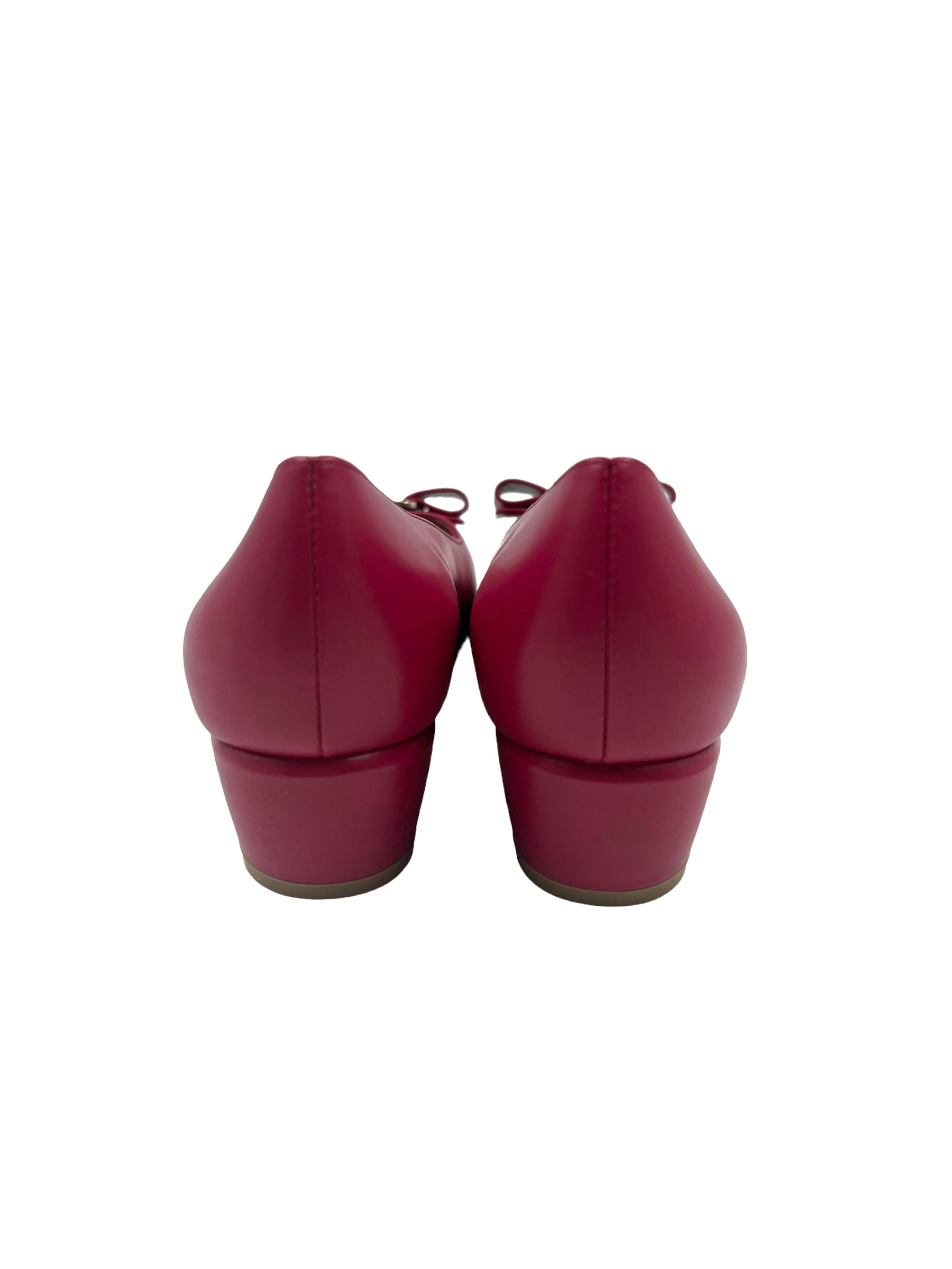 Ferragamo Size 7.5 Red Leather Vara Bow Flats