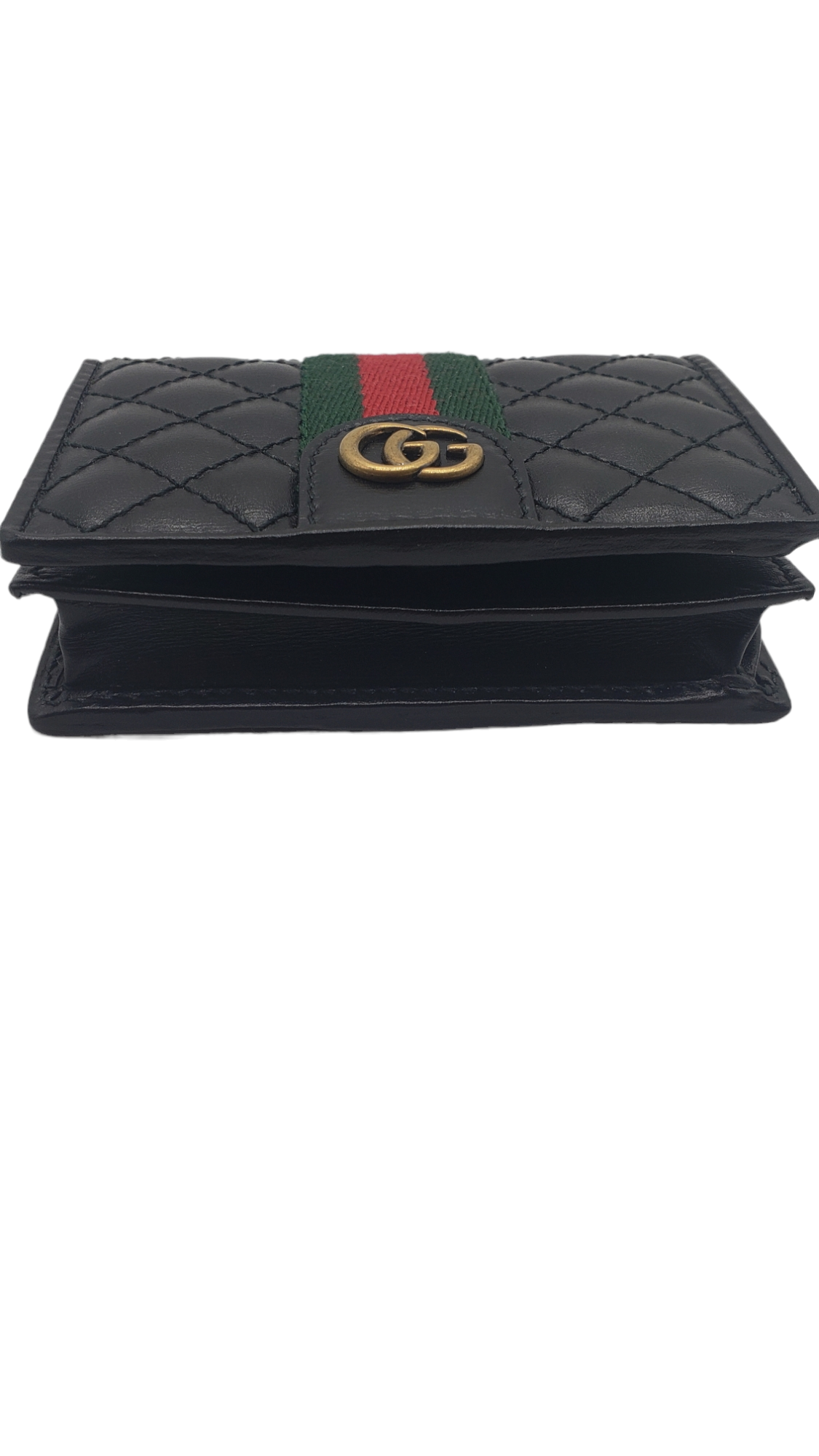 Gucci Black Leather Quilted Trapuntata Web Stripe Card Case