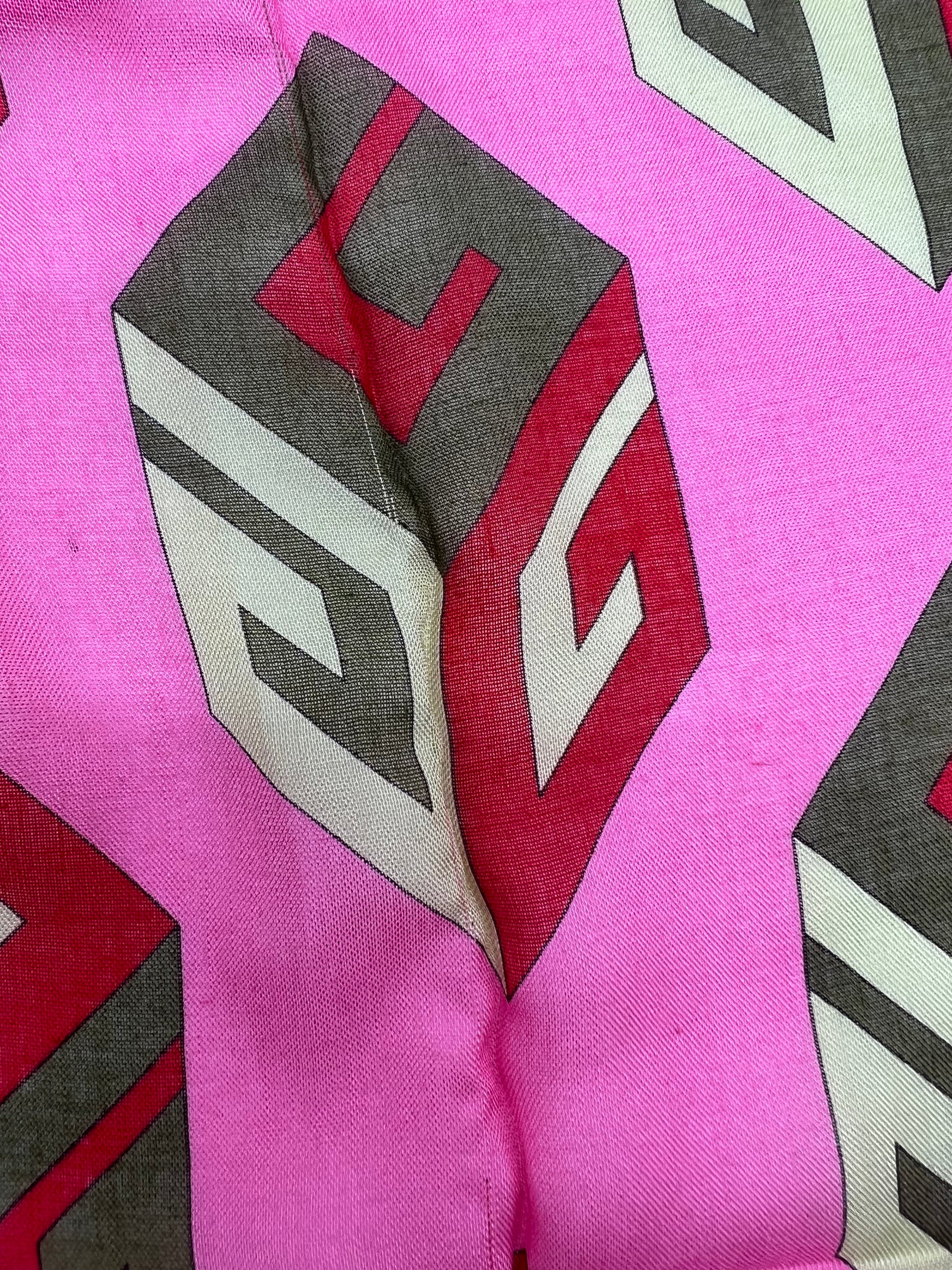 Pink multi color silk blend Cubo block logo scarf. Comes with non-branded dust bag and original tags