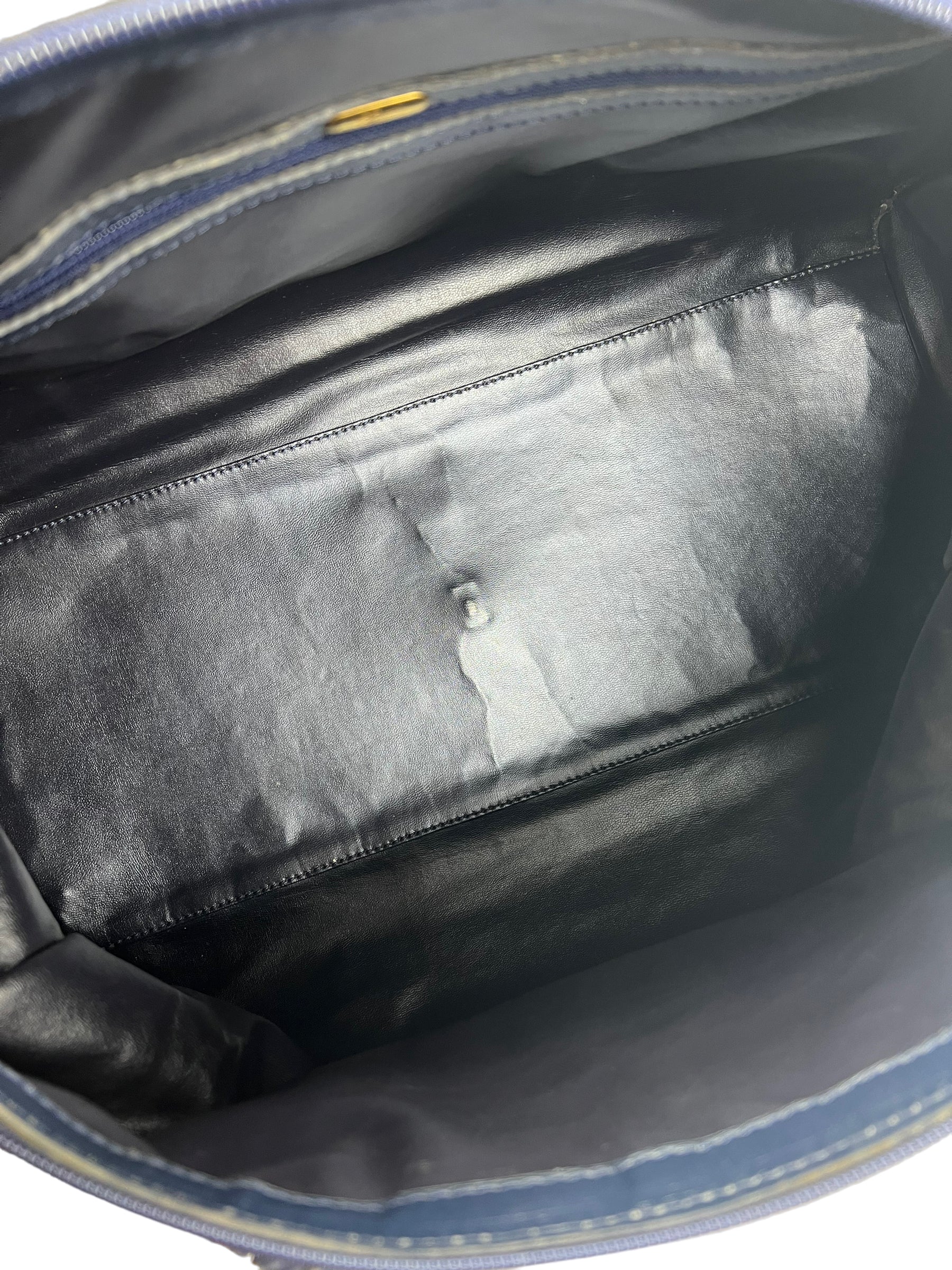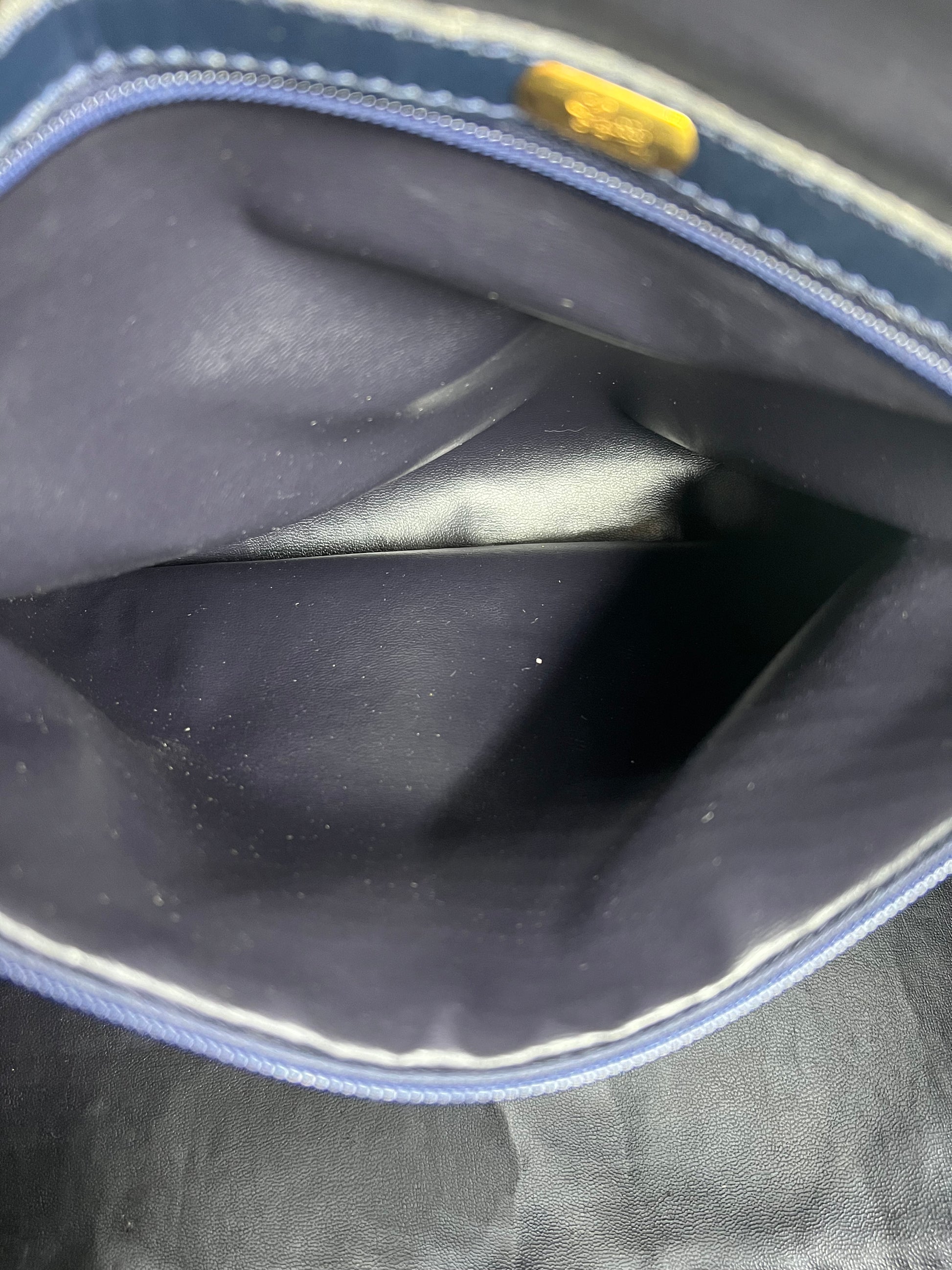 C-Good pre-owned vintage condition with some light staining/wear on exterior canvas and leather trim/strap. Hardware shows signs of wear. Interior shows some wear, in particular along the seams.