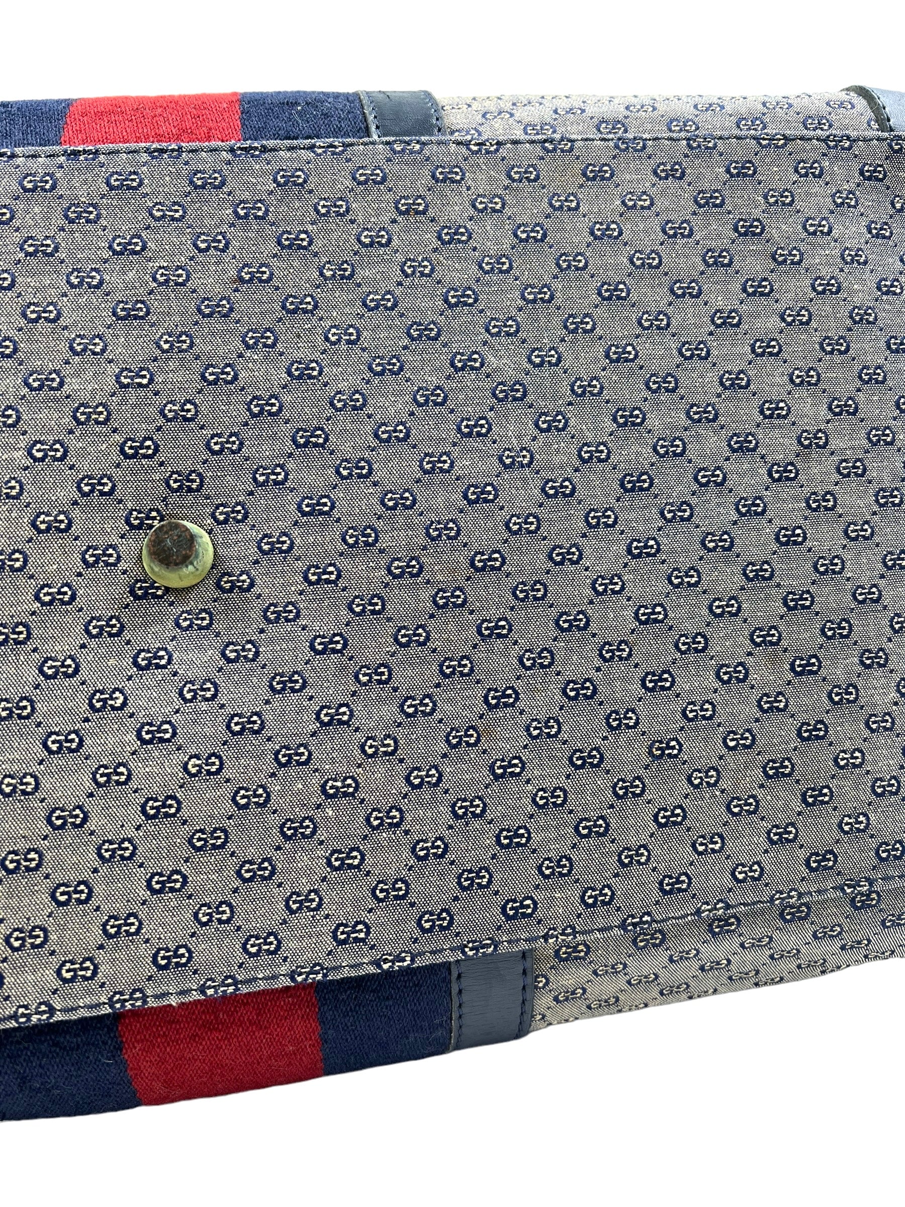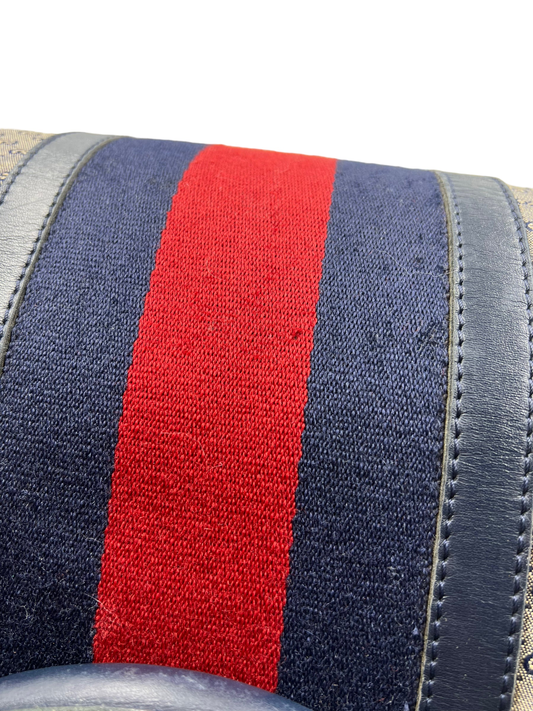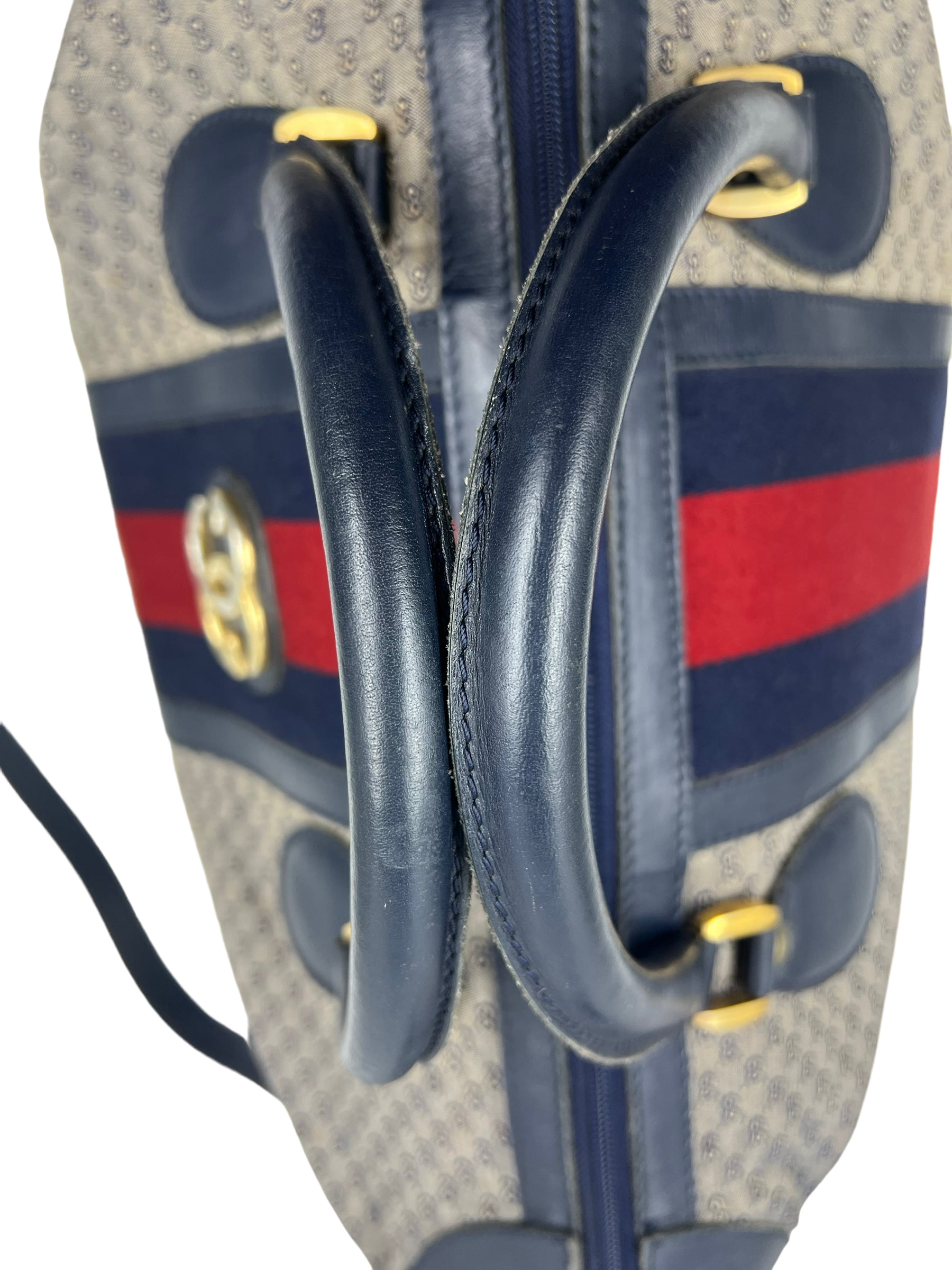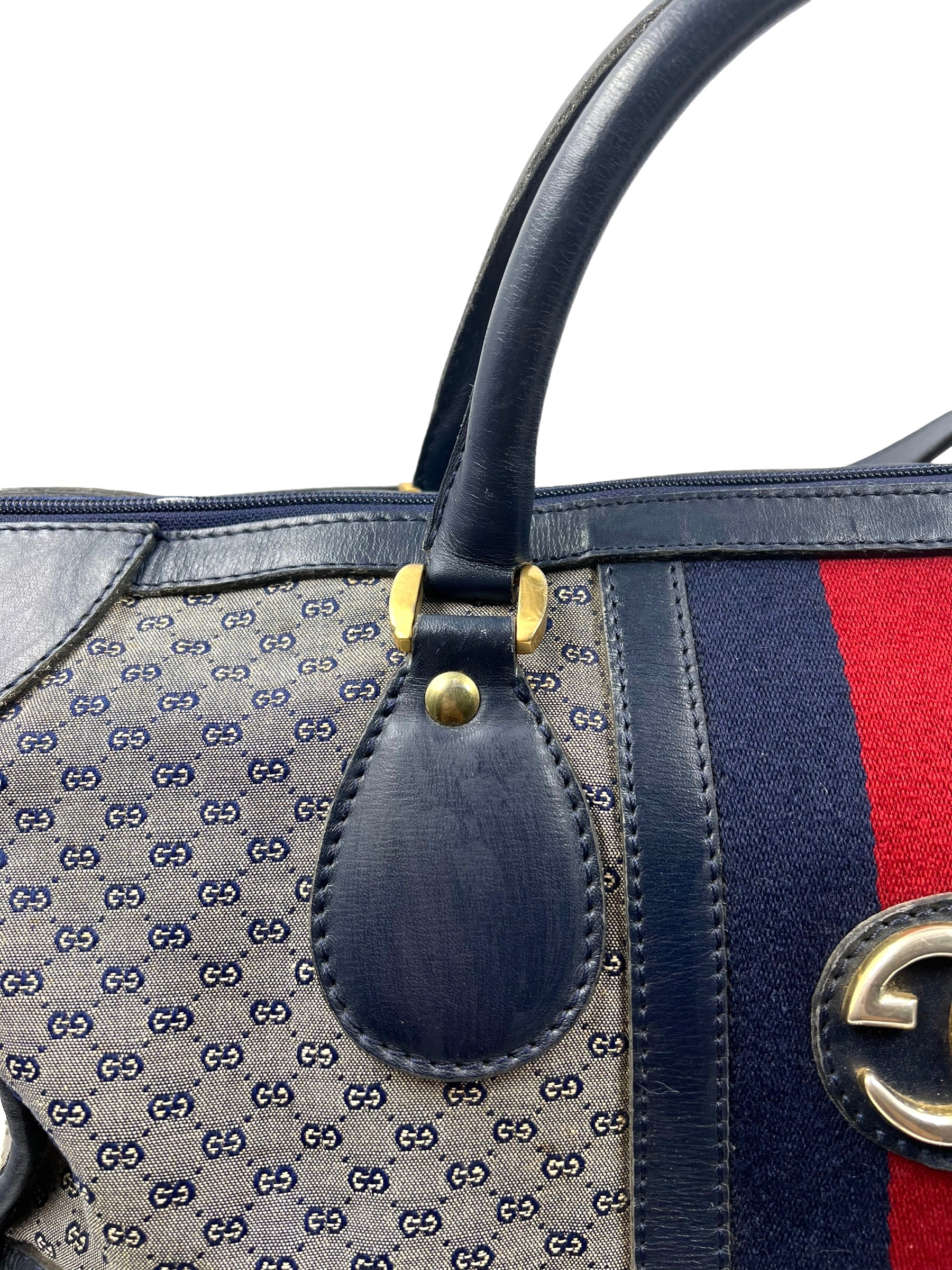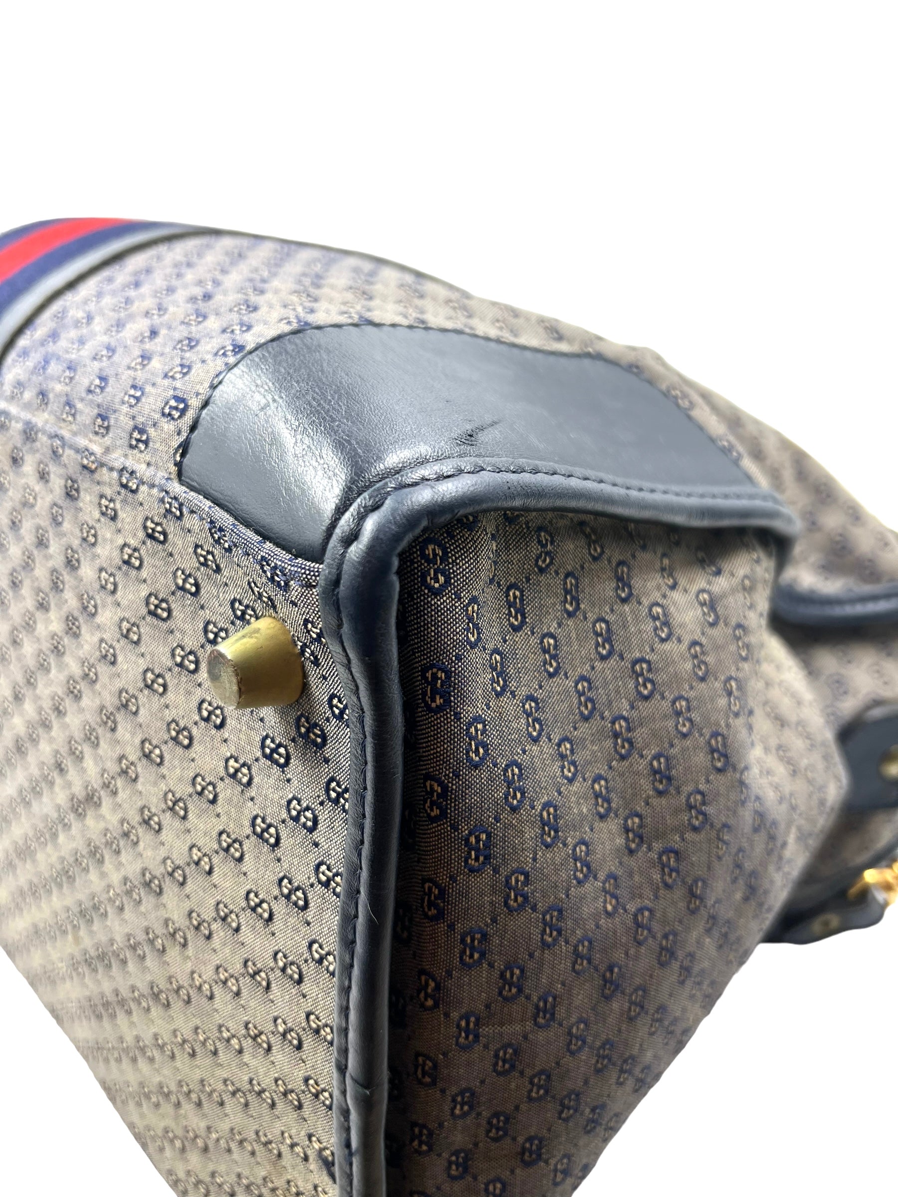 Gucci Vintage 1966 Navy Micro GG 2-Way Large Boston Carryall Duffle