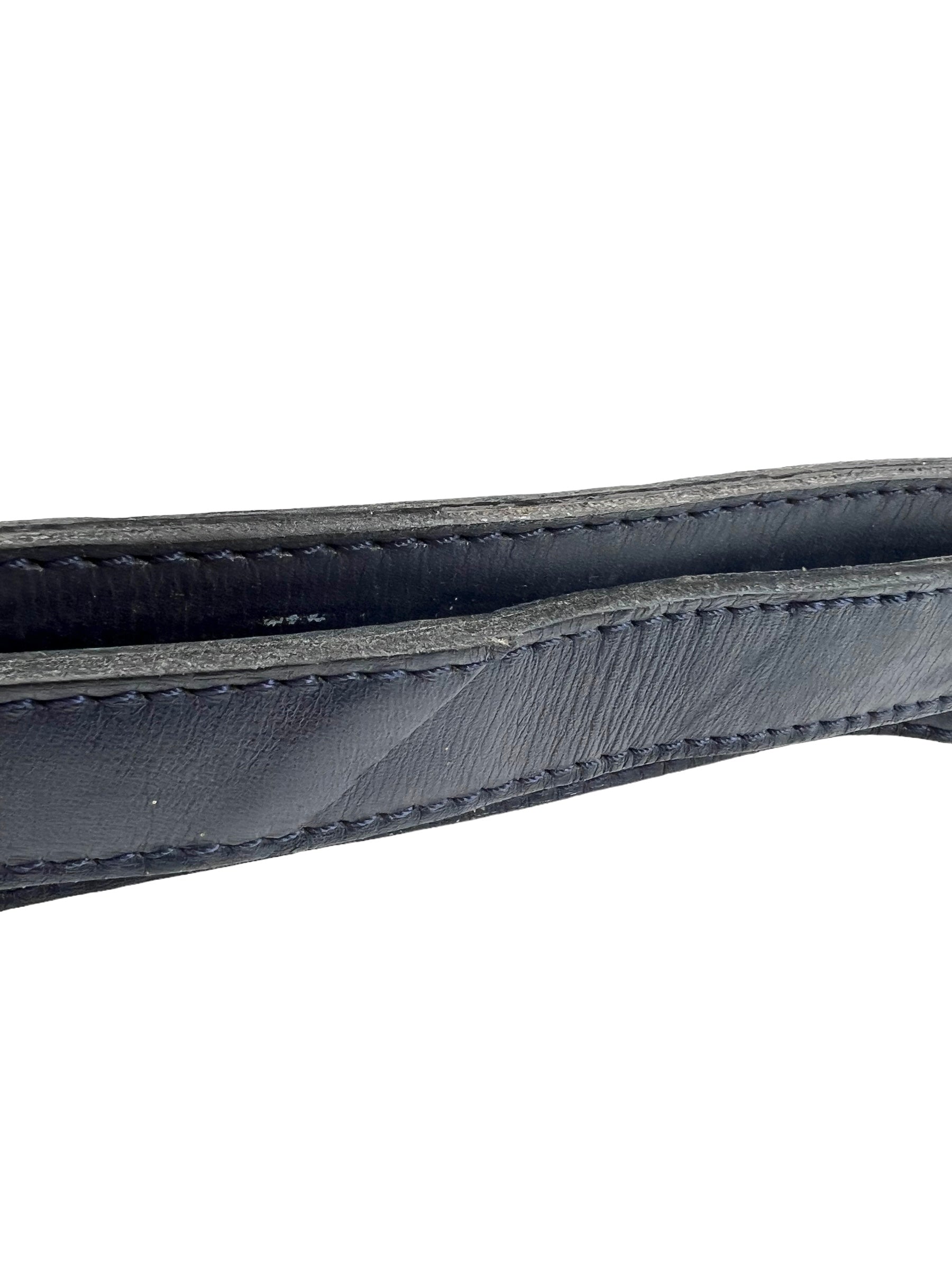 Vintage navy Micro GG print 2-Way large Boston bag with gold hardware. Comes with detachable long strap and certificate of authenticity. Does not come with dust bag.