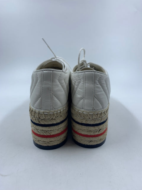 Gucci White Leather Quilted Platform Size 37.5 Espadrilles