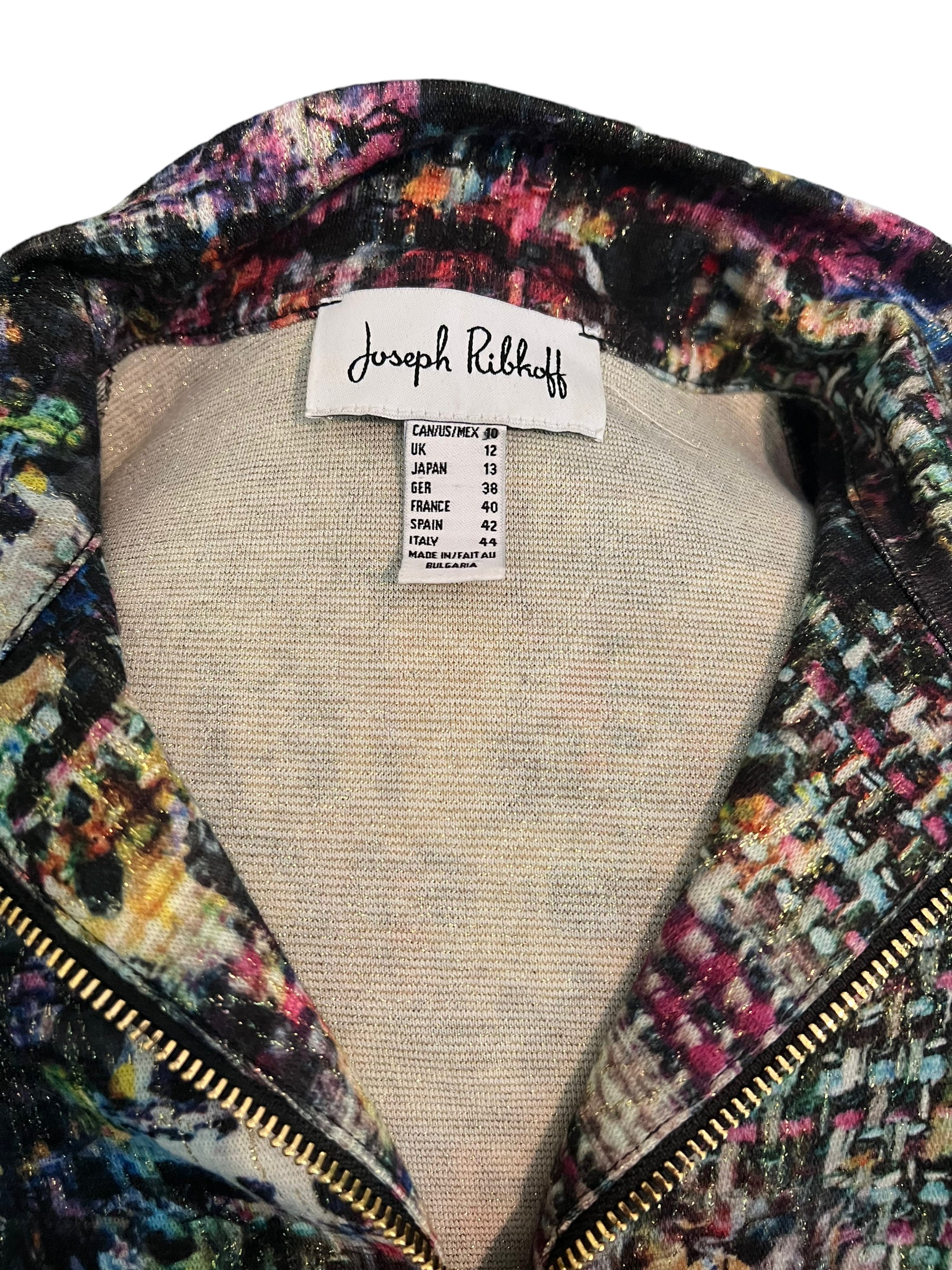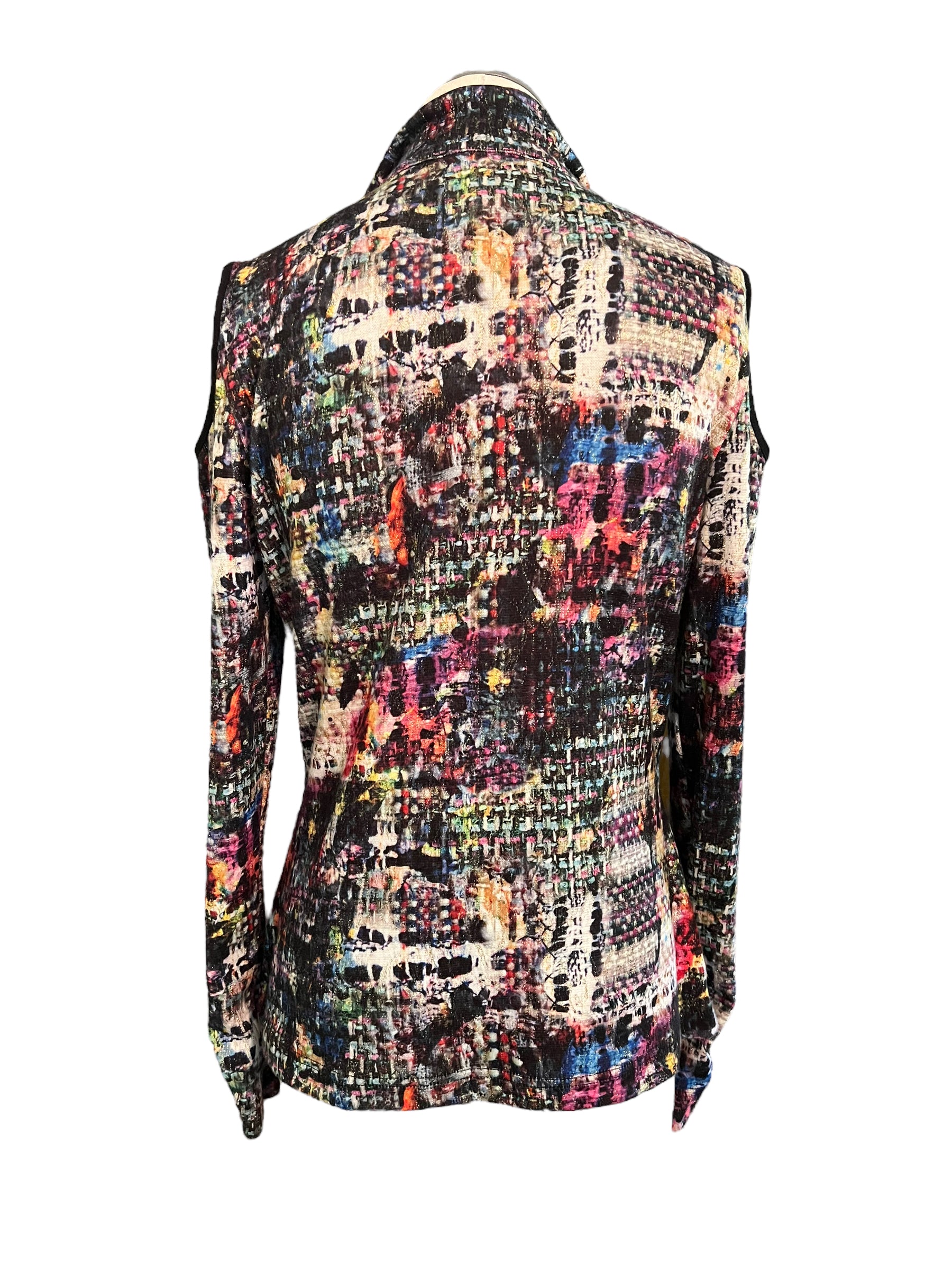 Joseph Ribkoff Size 10 Multicolor Zip Cold Shoulder Top