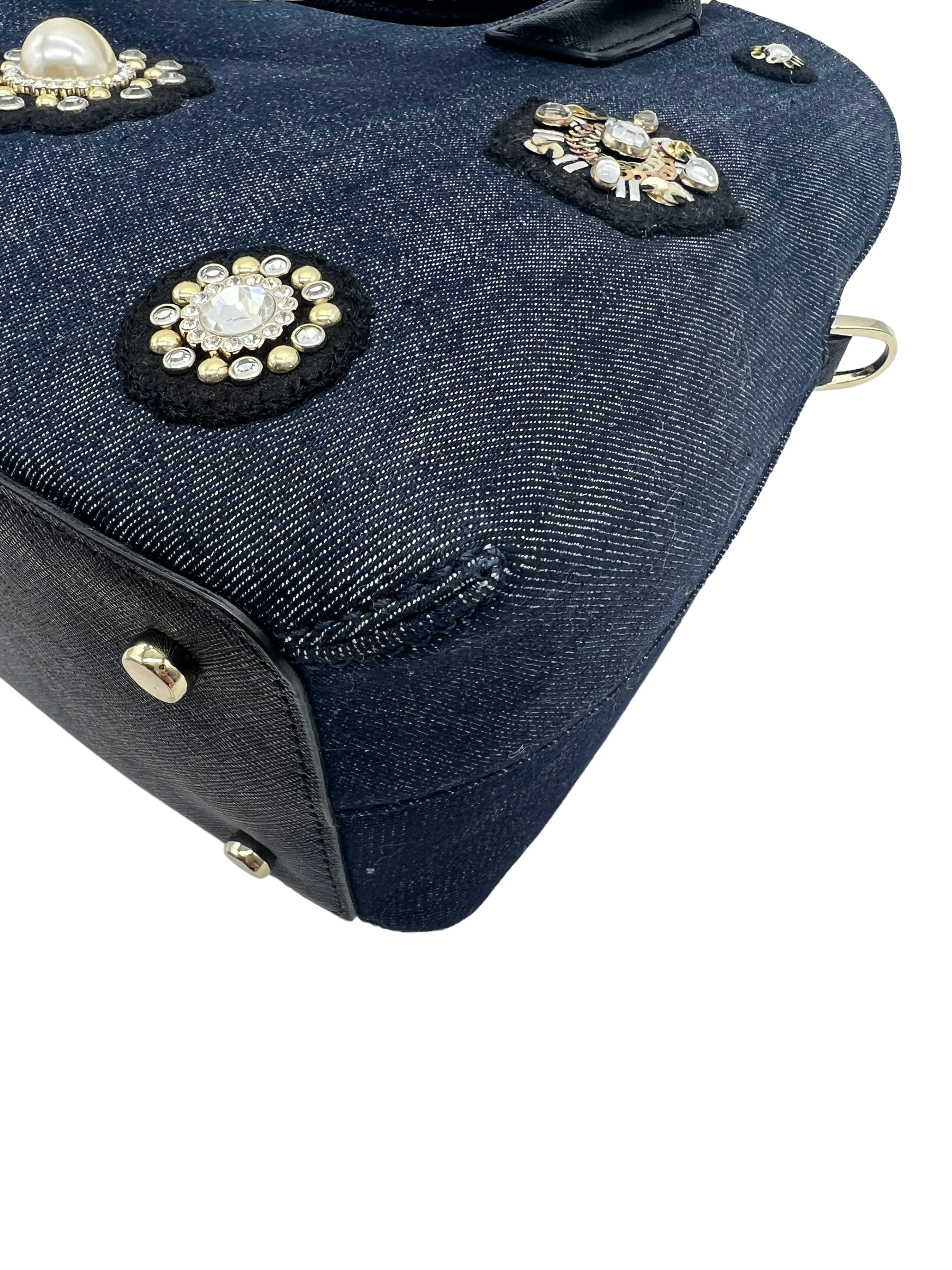 Denim Cameron Street 'Lottie' satchel with faux pearl, rhinestone and sequin embellishments. Comes with original tags, detachable long strap and non-branded dust bag.