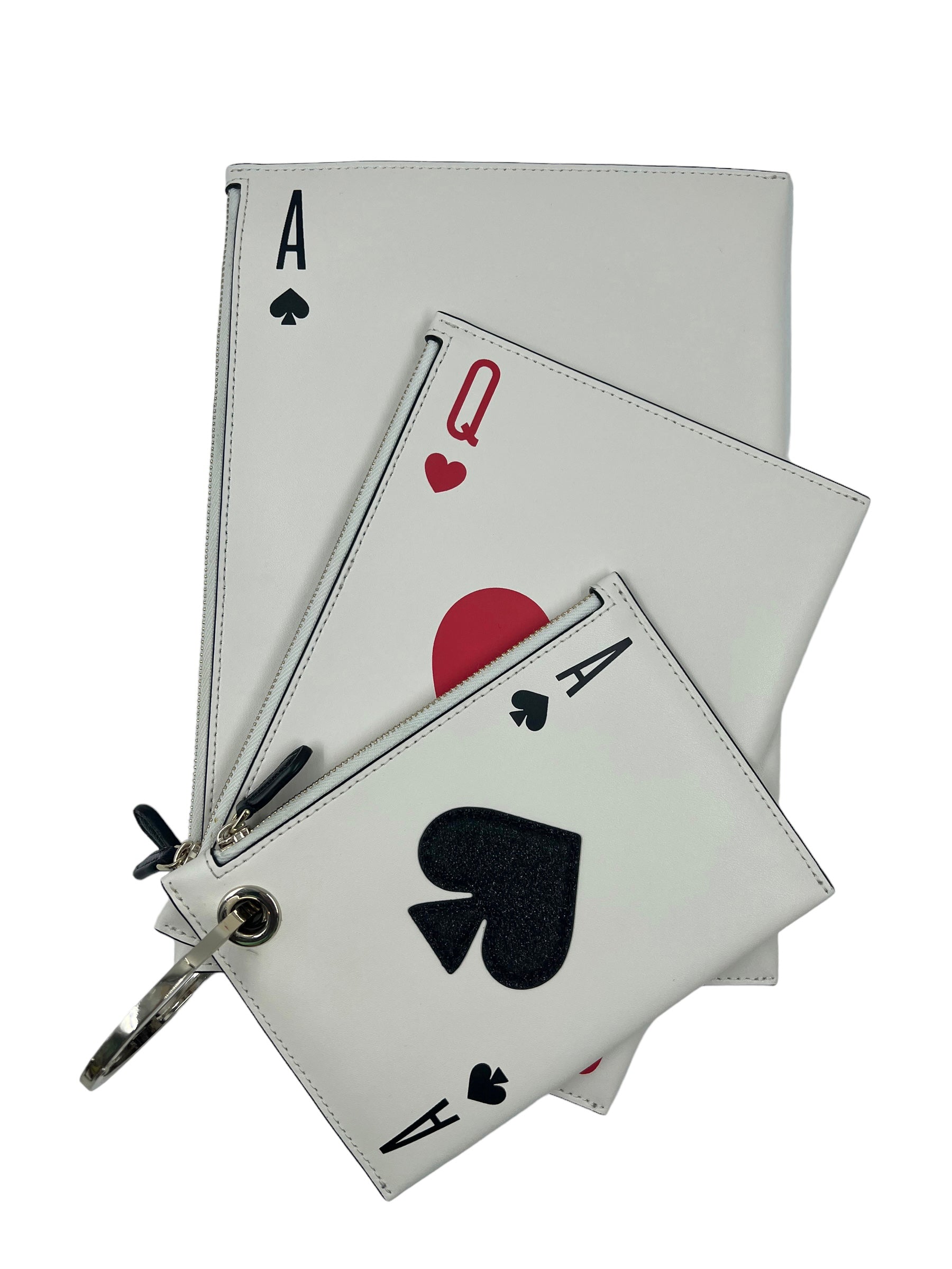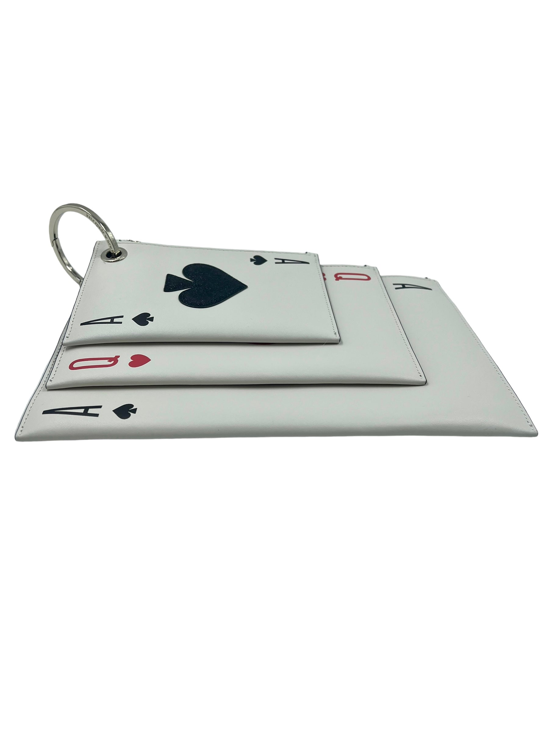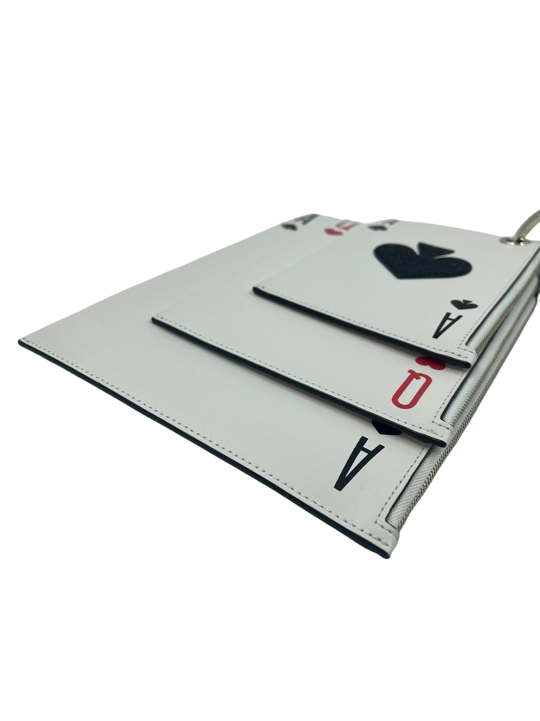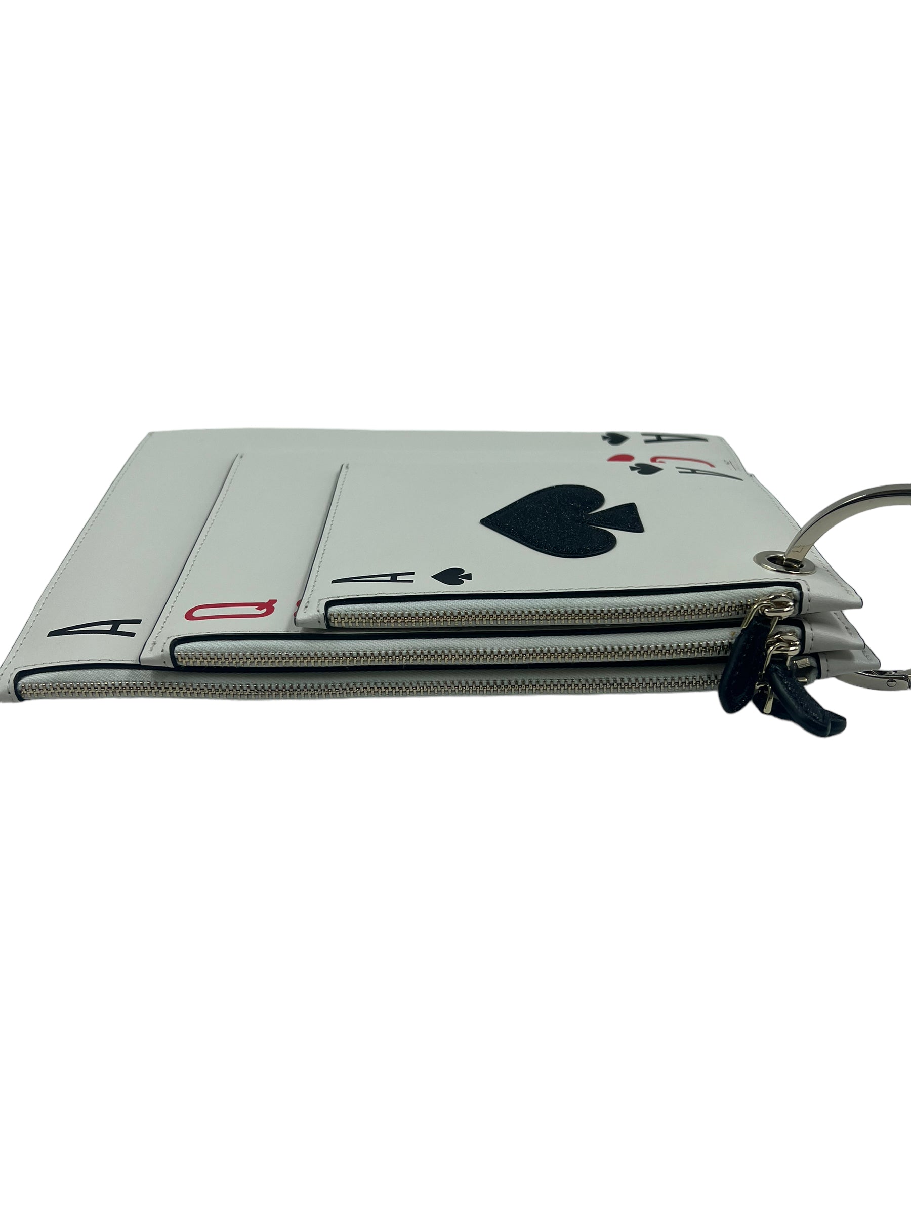 Off white removable leather Lucky Draw Pouch set with metallic lurex detail and gold hardware. Does not come with dust bag or box.