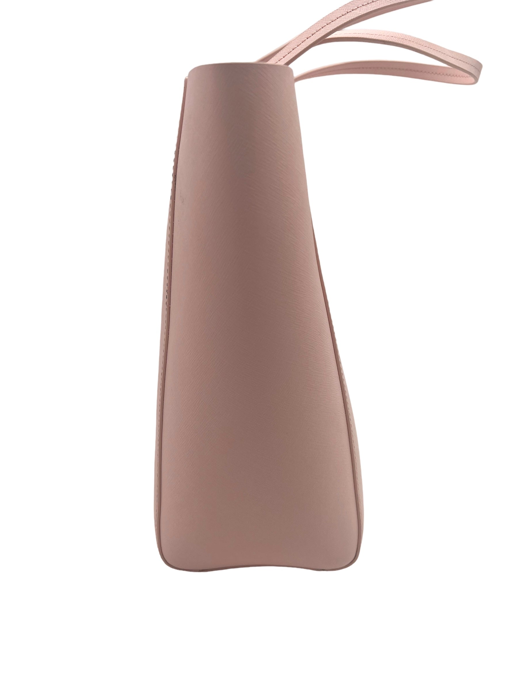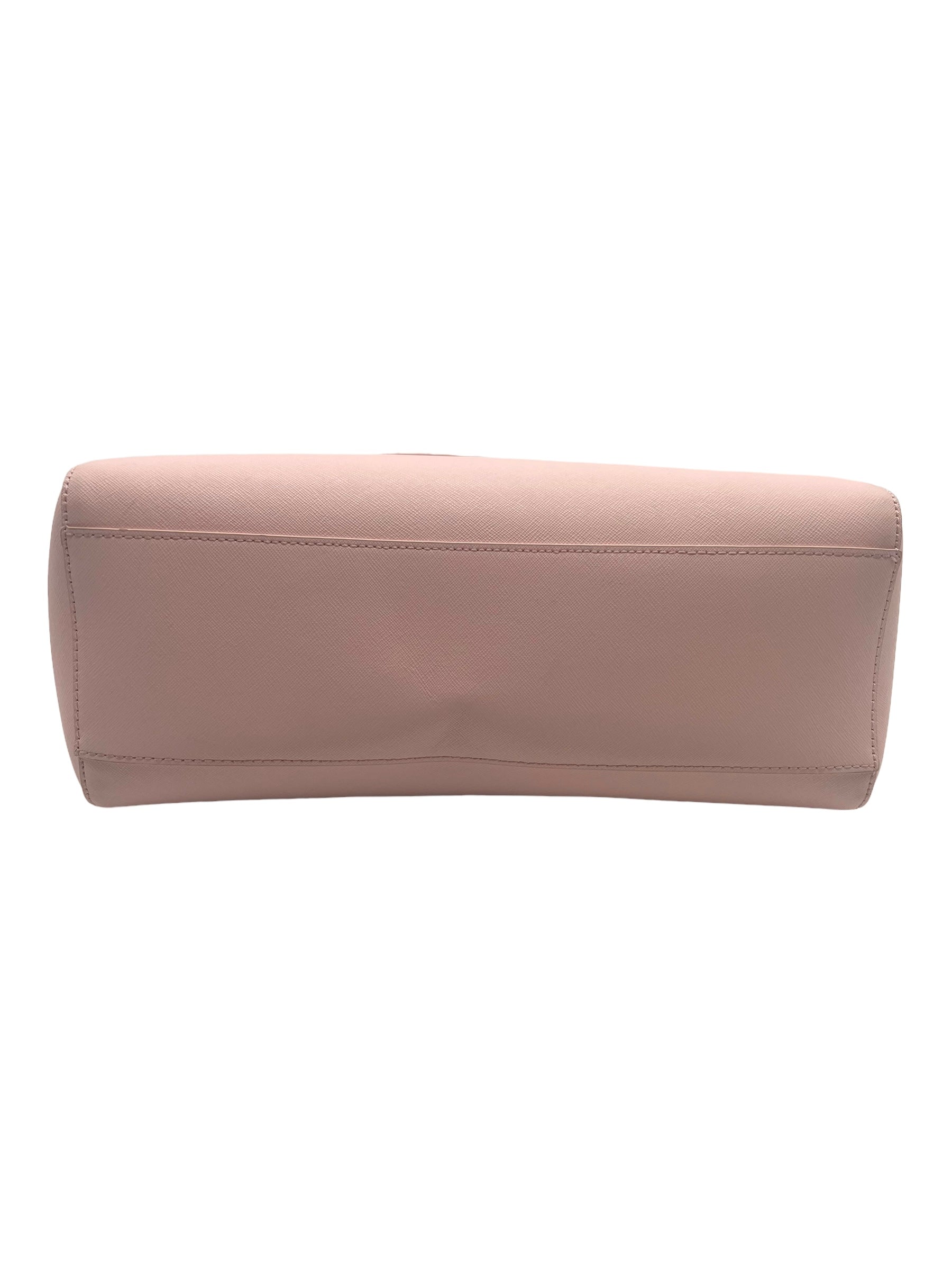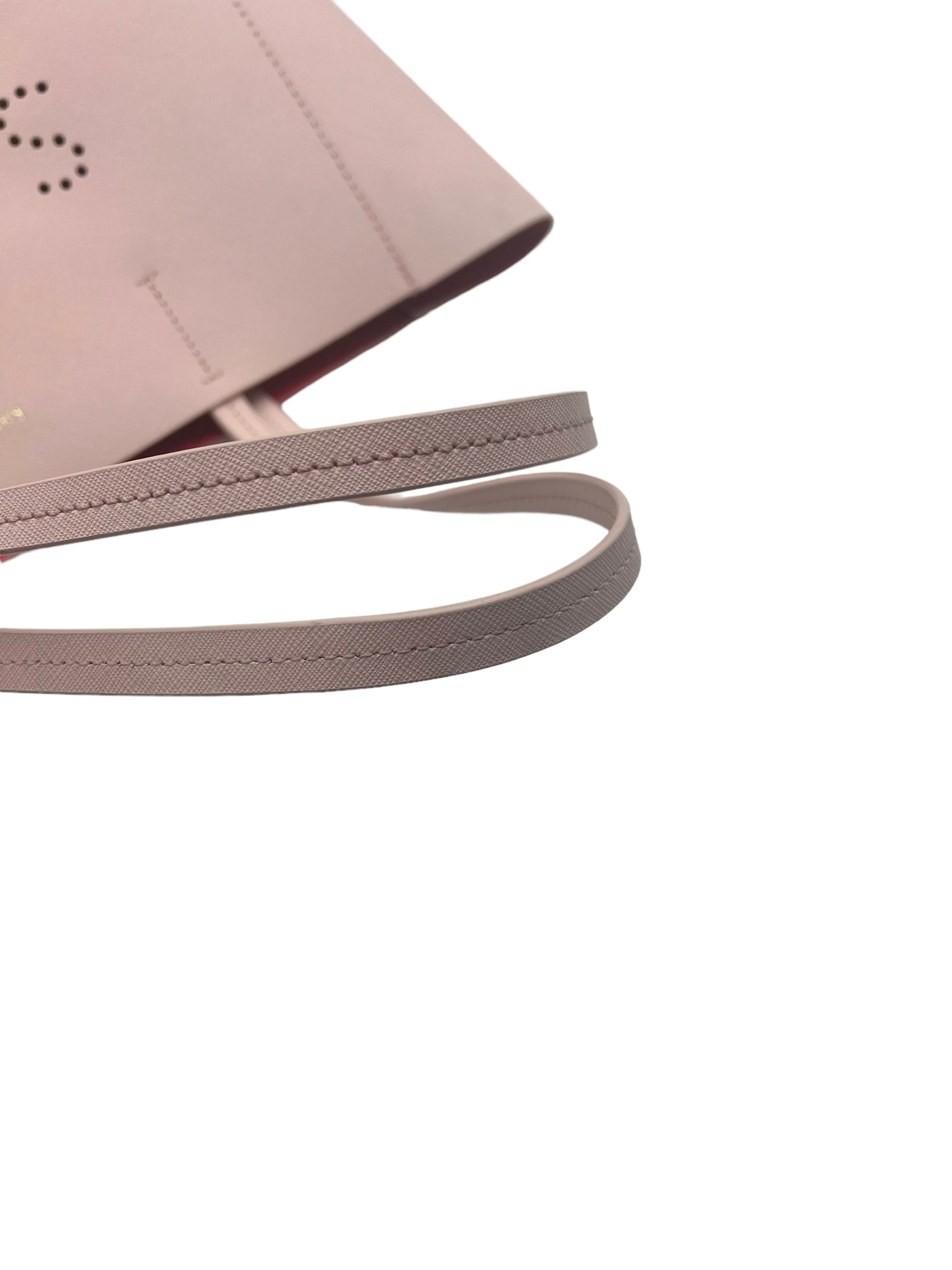 Pink saffiano leather Hallie perforated tote with gold hardware. Does not come with dust bag.