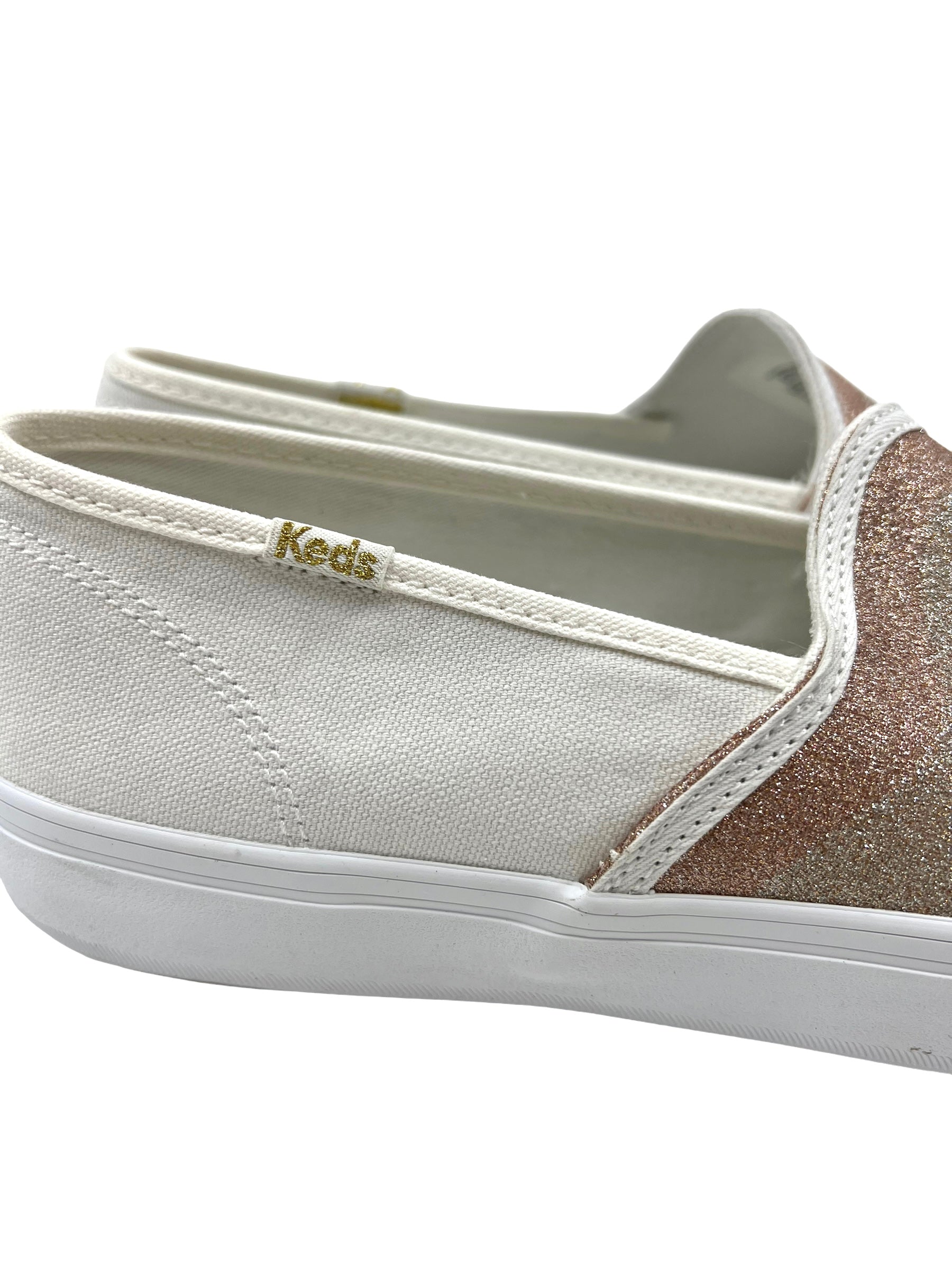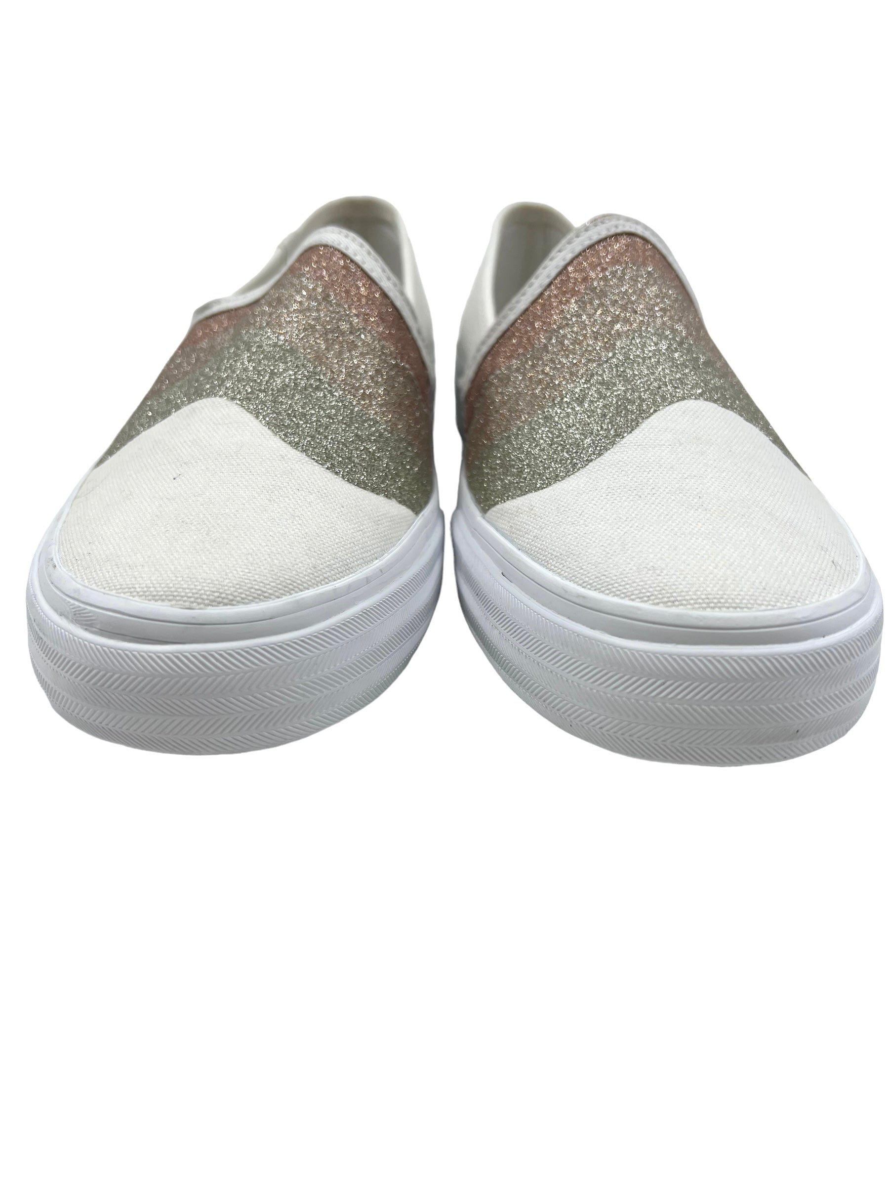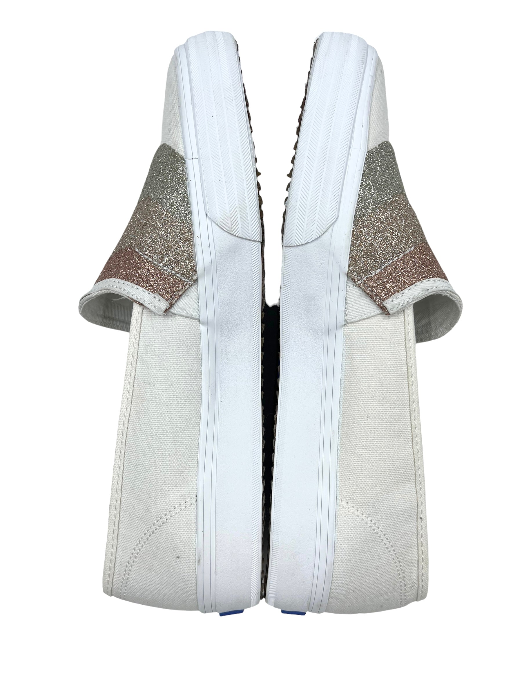 Off white canvas Double Decker Wave slip on sneakers with glitter detail. Does not come with box.