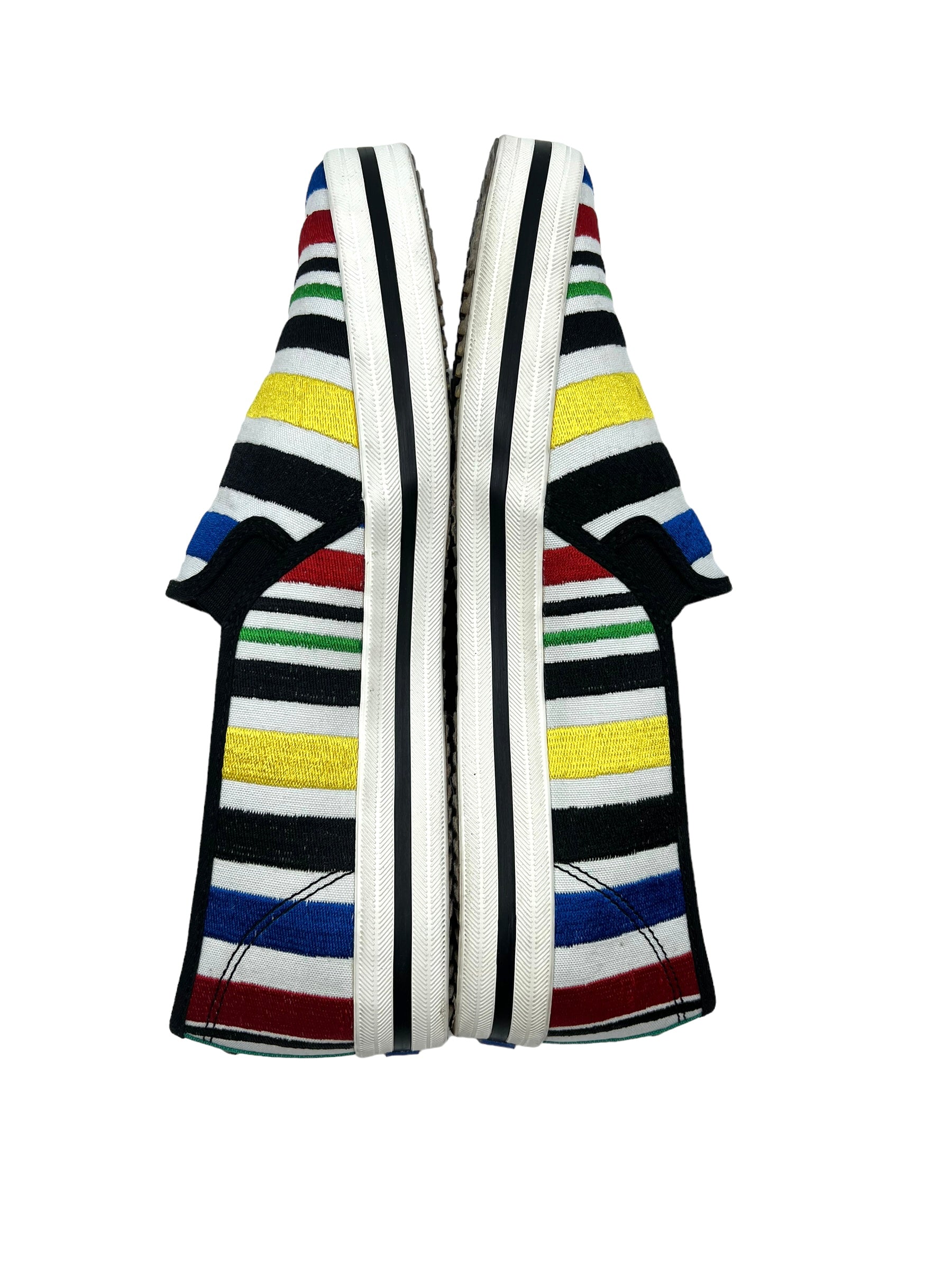 Multicolor stripe slip on sneakers. Shoes do not come with dust bag or box.