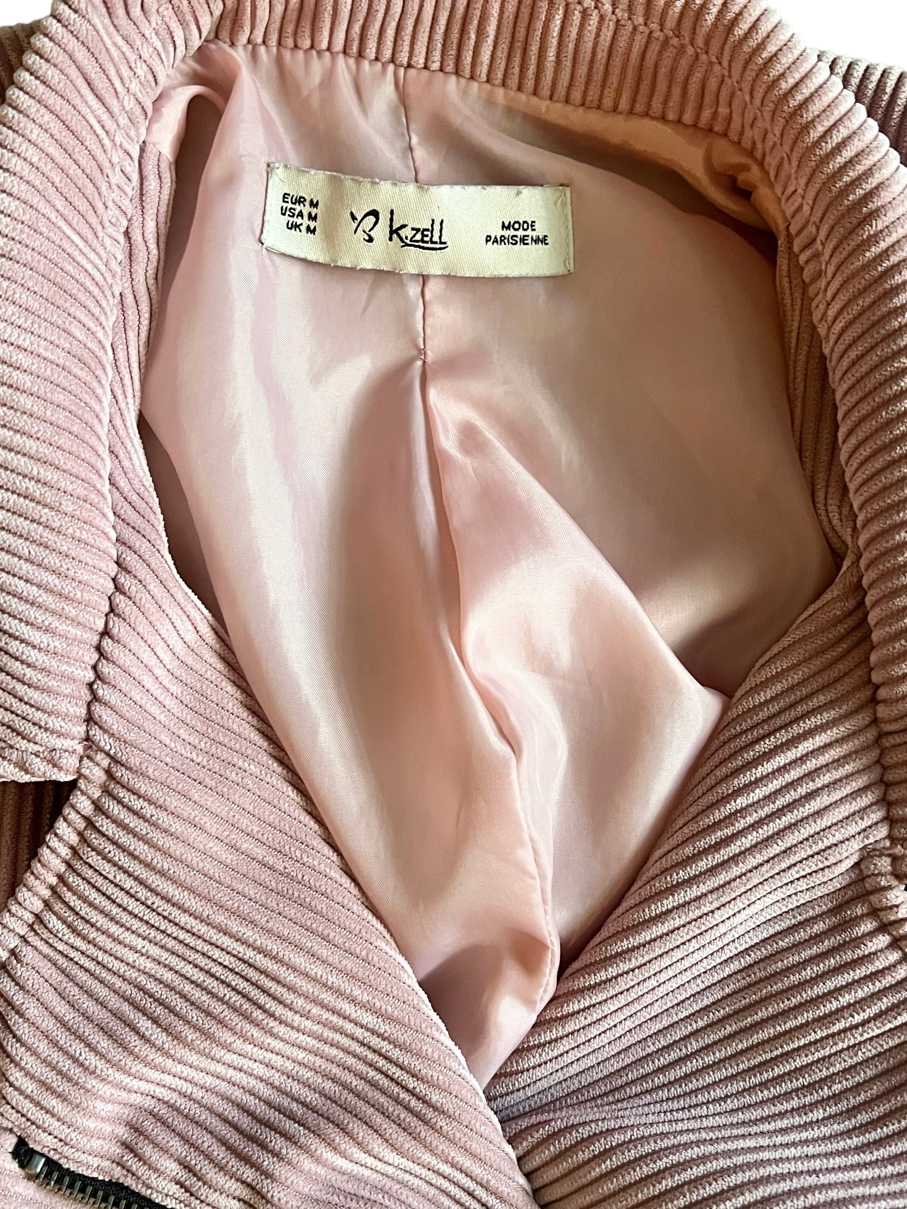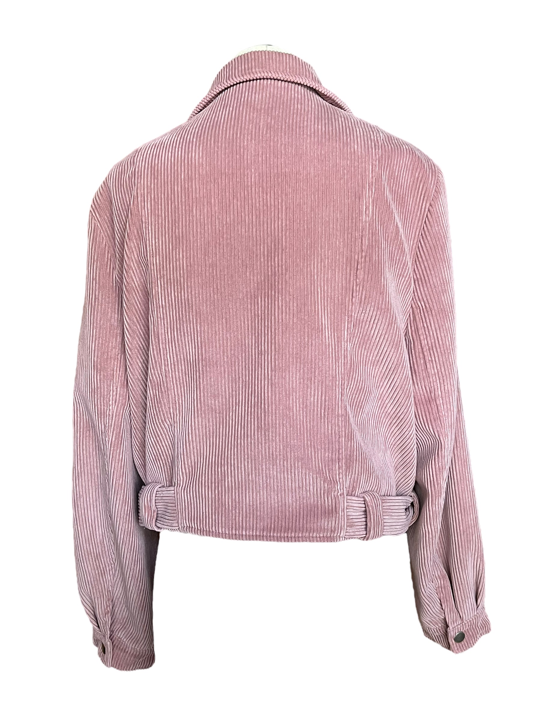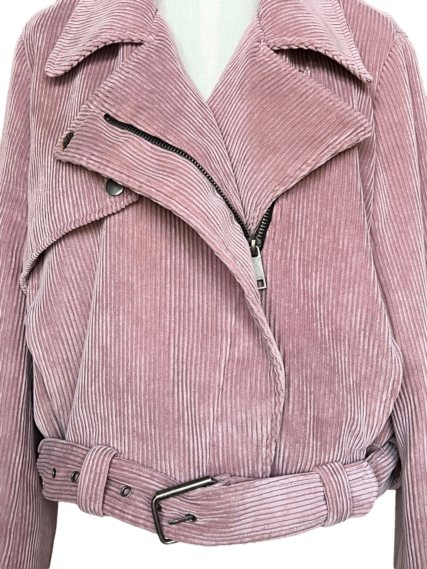 KZell Paris Size M Pink Corduroy Belted Crop Moto Jacket